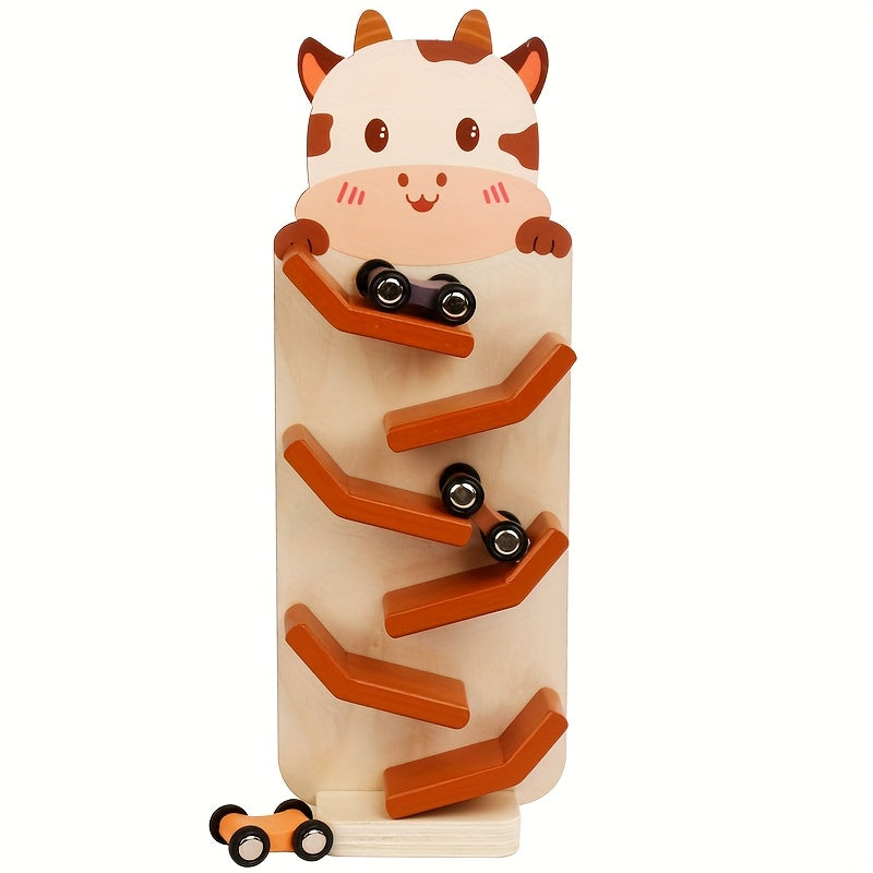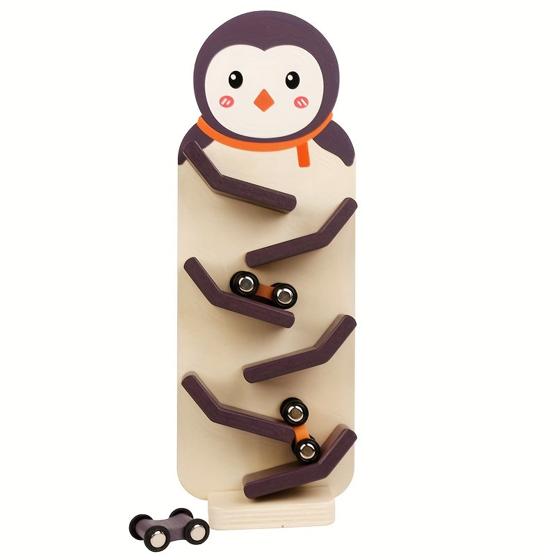 VPHQWG Wooden Animal Slide Train Set - 6-Tier Quick-Slide Track with Cute Lion, Penguin, and Tiger - Educational Toy for Visual Tracking, Ideal for Boys and Girls' Birthday, Back-to-School, or Christmas Gifts, Development Toy|Playful Design|Intricate Tra