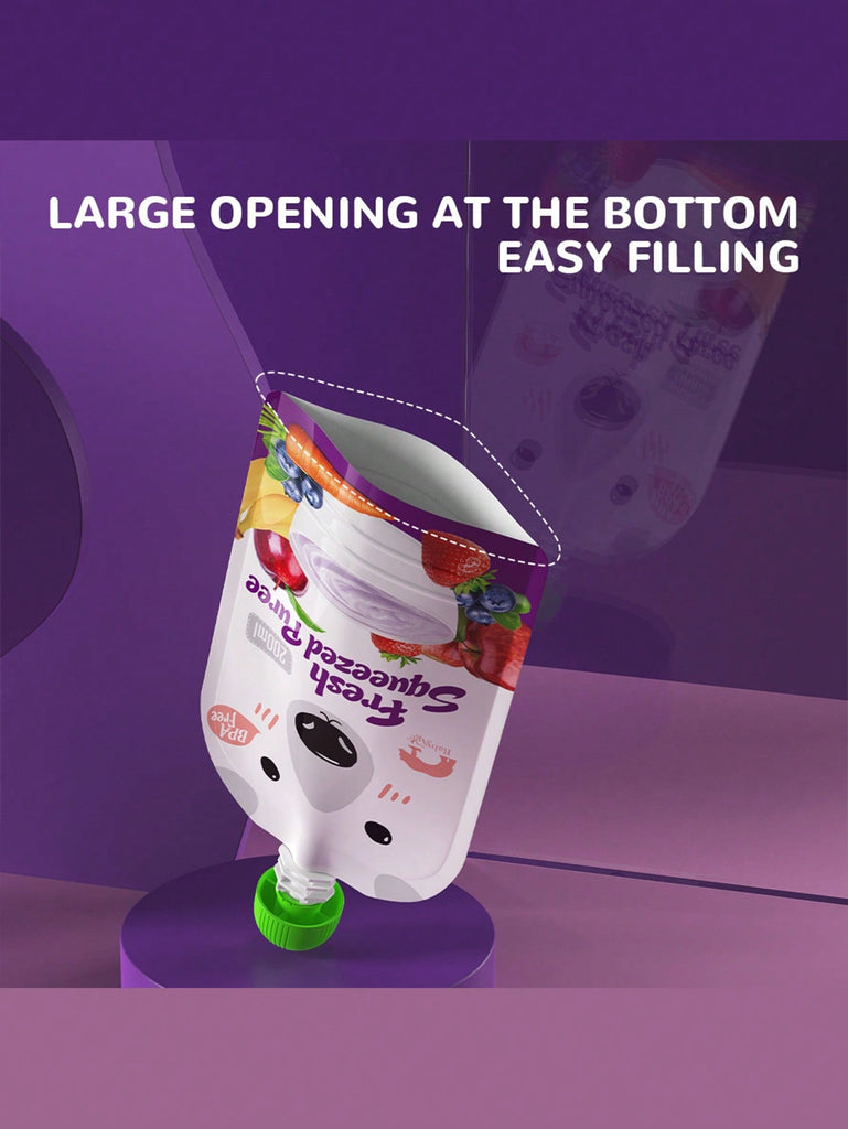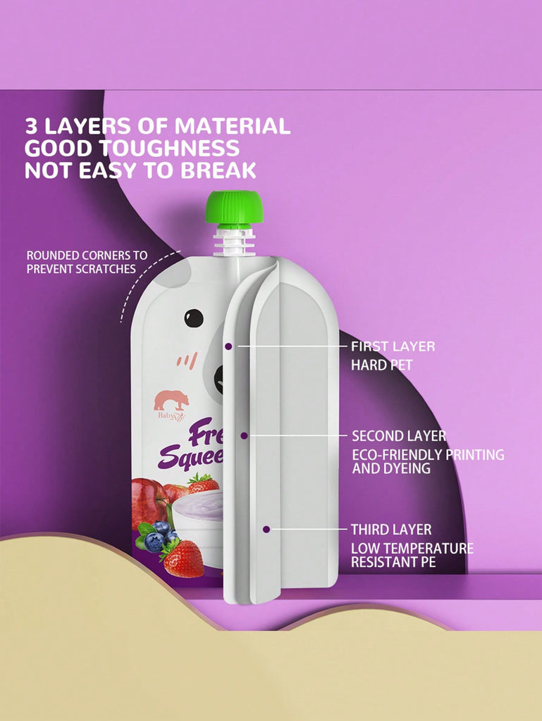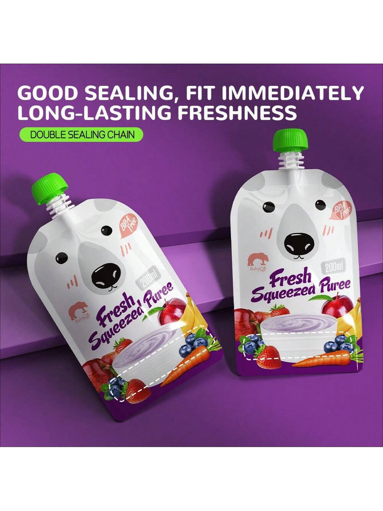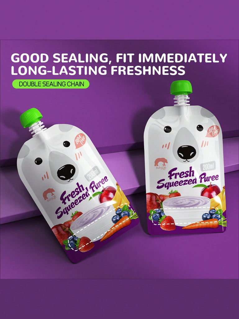 10pcs Cartoon Style PET Double Seal Baby Bear Bite Toy Fruit Food Pouches, Baby Fruit & Vegetable Puree Reusable Feeding Bags