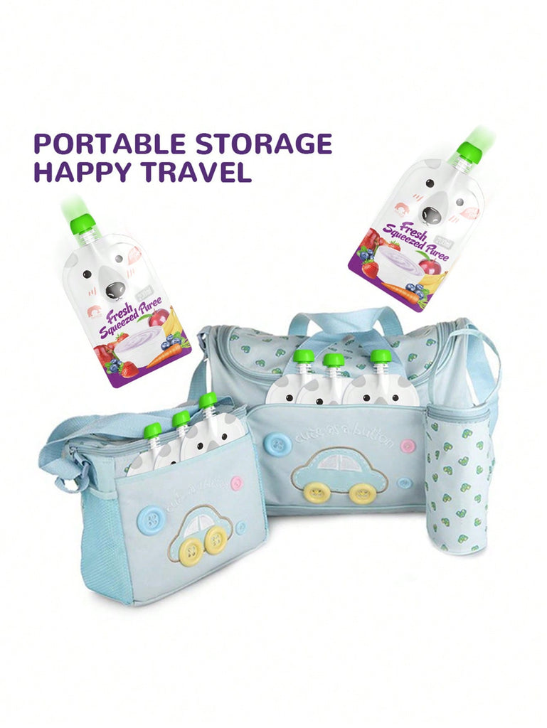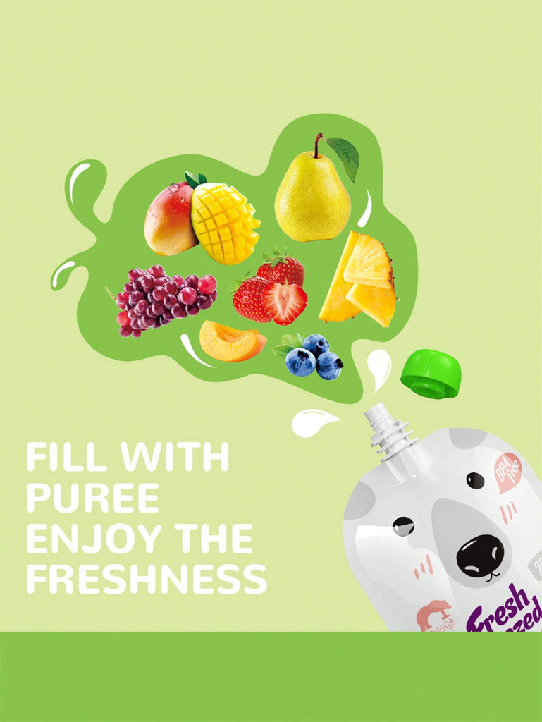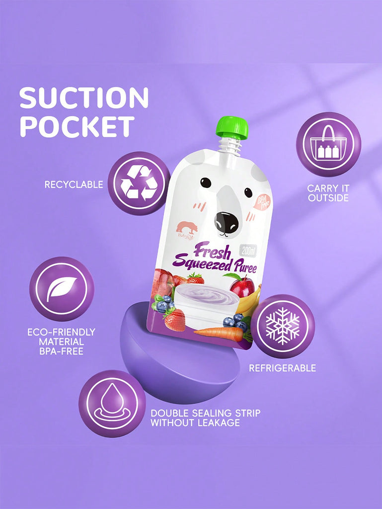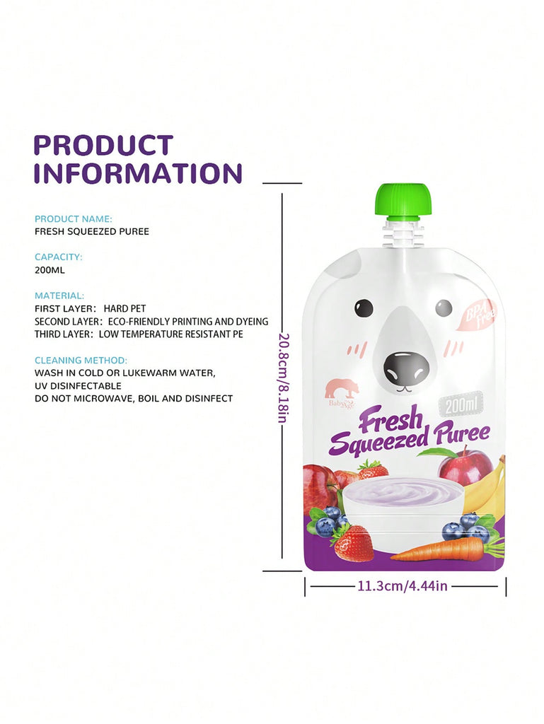 10pcs Cartoon Style PET Double Seal Baby Bear Bite Toy Fruit Food Pouches, Baby Fruit & Vegetable Puree Reusable Feeding Bags