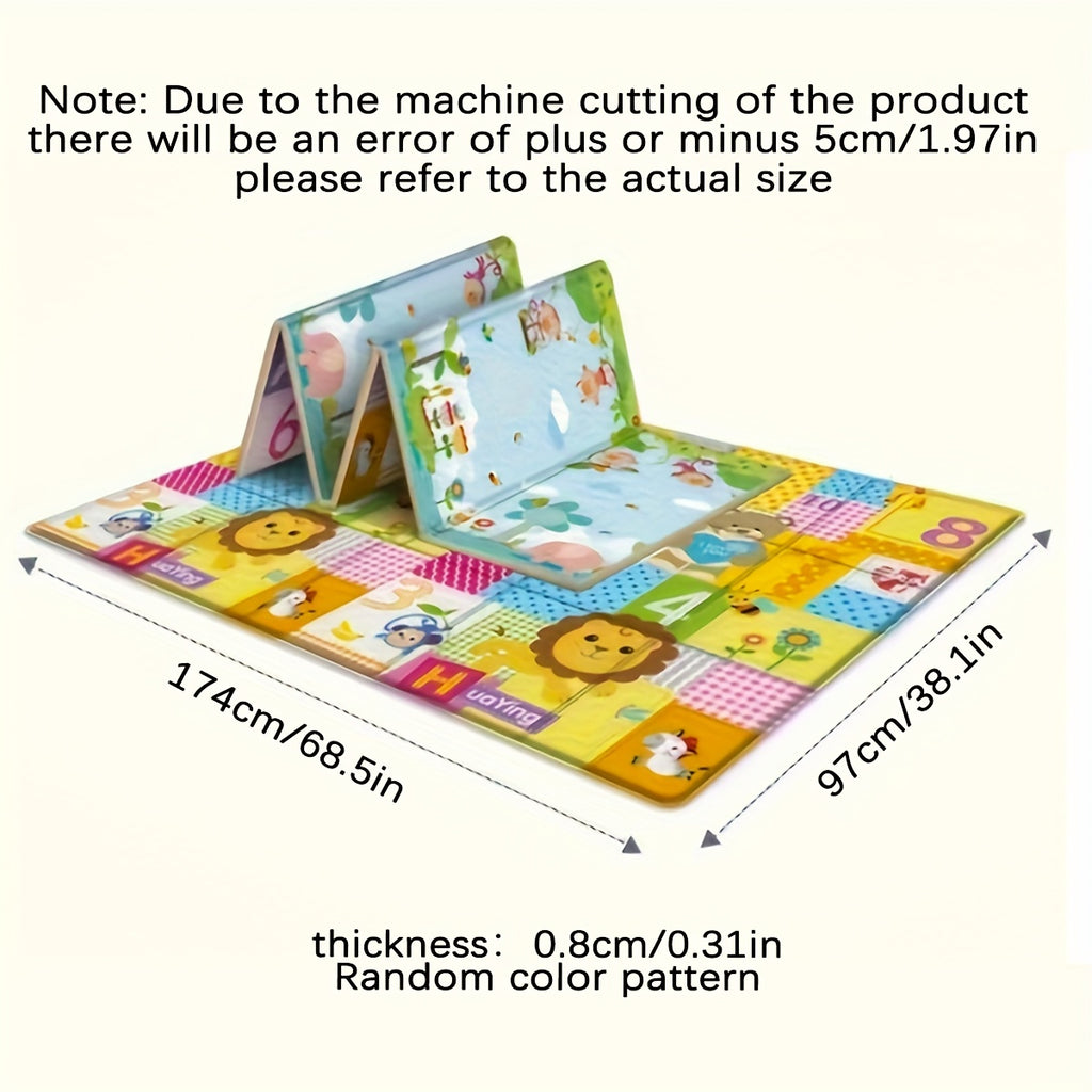 1pc Foldable Baby Play Mat, Thickened PE Foam Crawling Pad for Infants, Non-Slip Kids Floor Mat with Edging for Living Room, Educational Number & Animal Design, Uncharged, Yellow