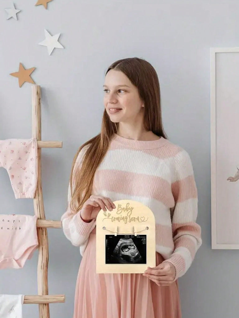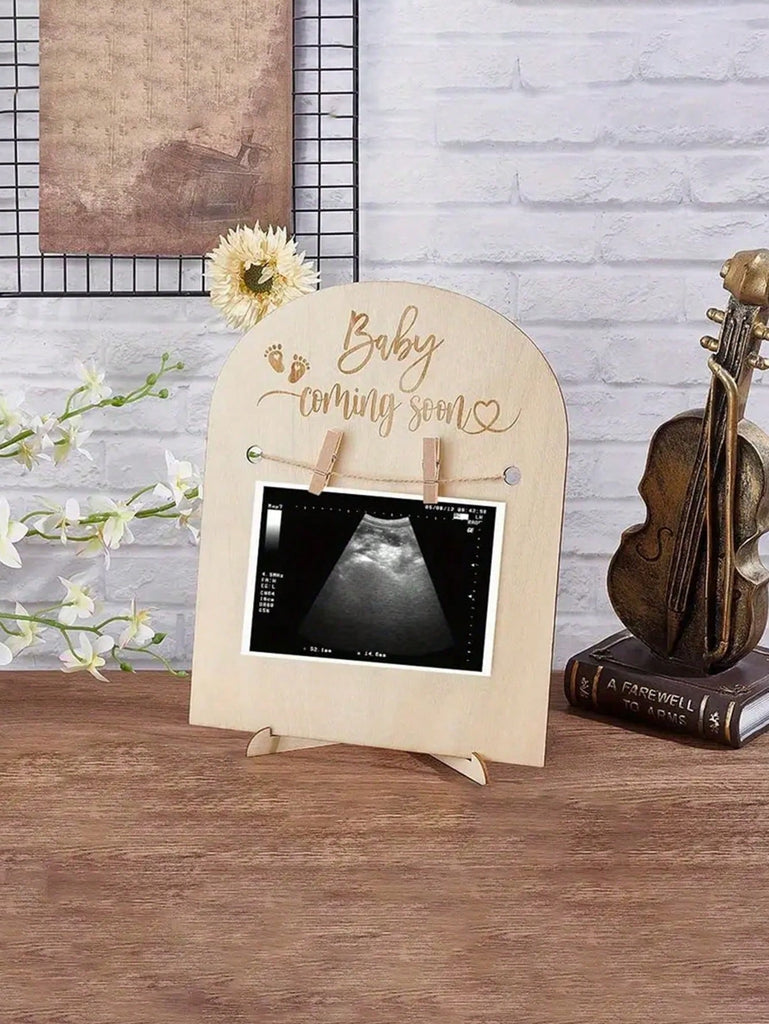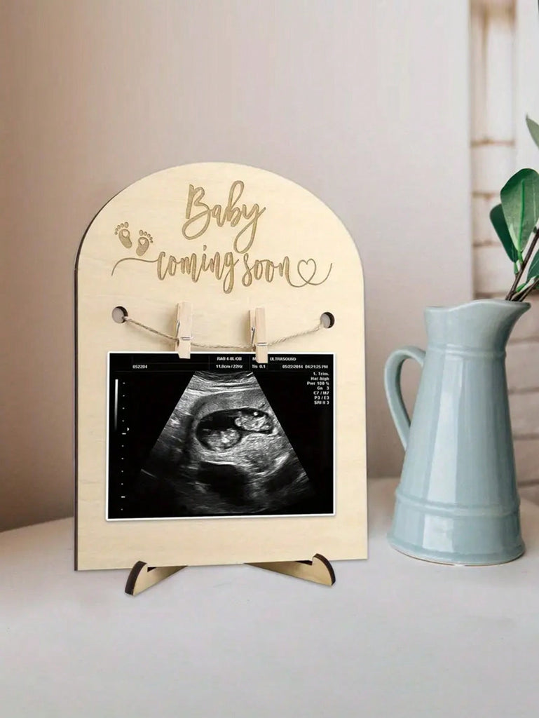 1pc Wooden Baby Ultrasound Photo Frame, Perfect For Announcing Pregnancy Or Baby Birth Commemoration Baby Shower Easter Gift Sthings For Girls/Boys