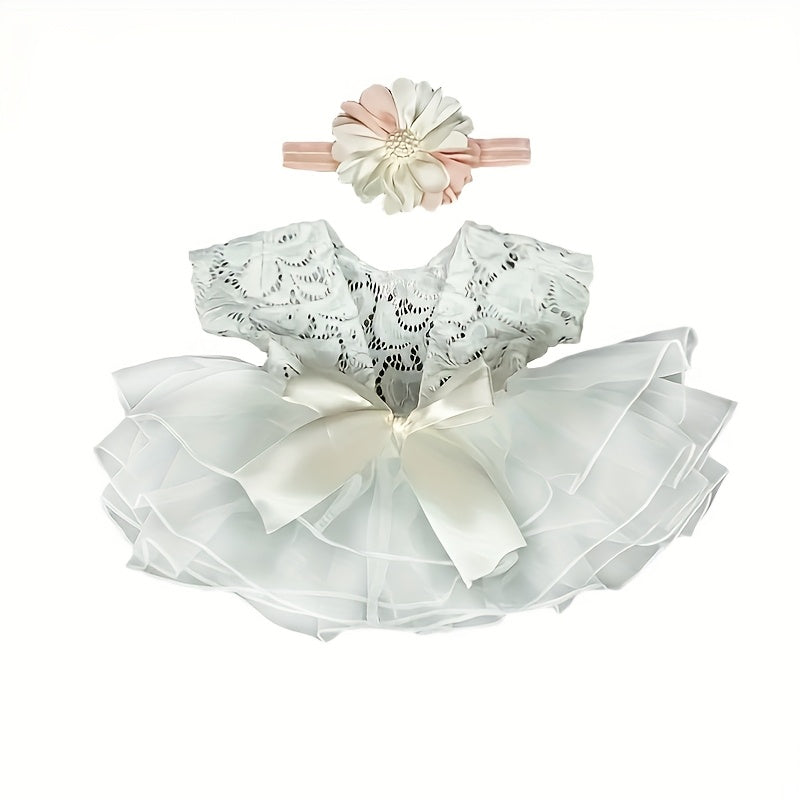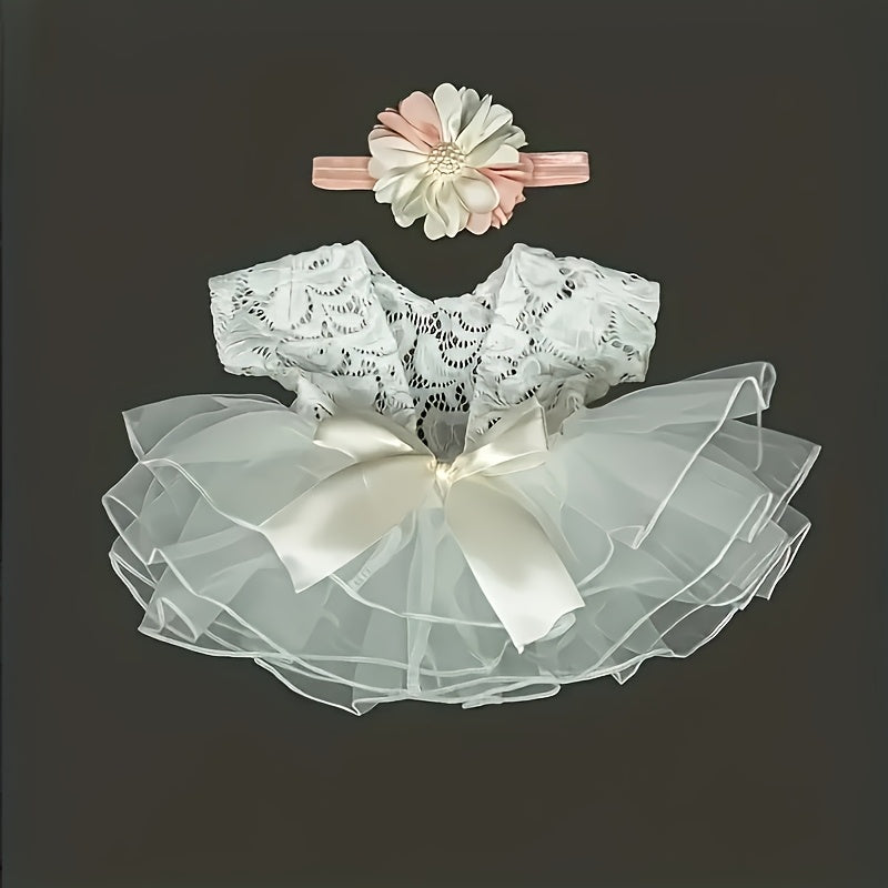2pcs/set of cute Youngsters photography costumes: lace onesie and headband props, suitable for taking photos and photo props costumes, photography decoration costumes - suitable for New Year and Valentine's Day holiday gifts, baptism gifts, photo accesso