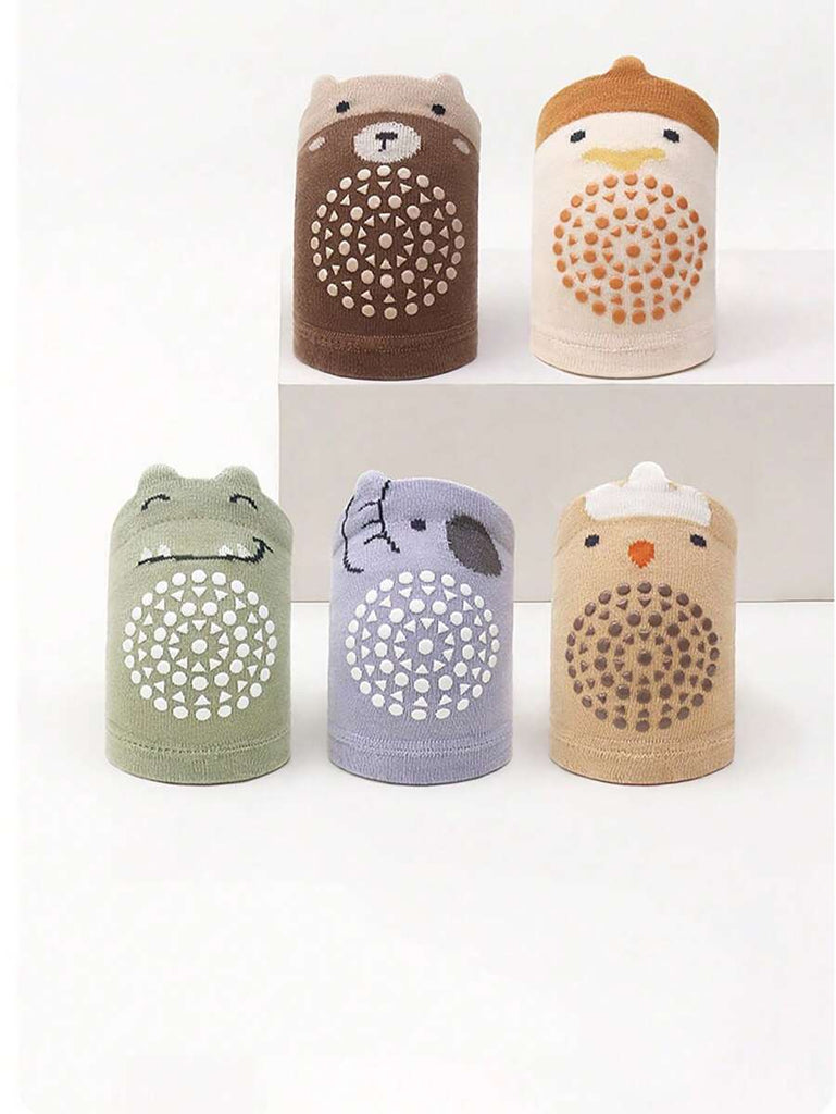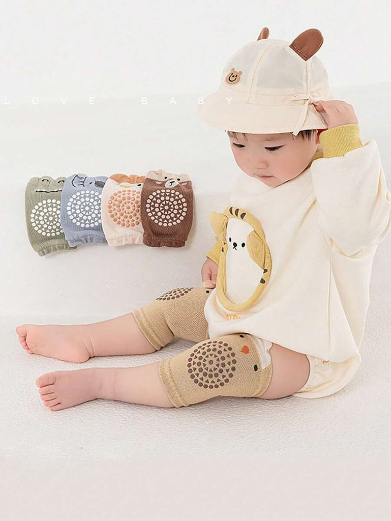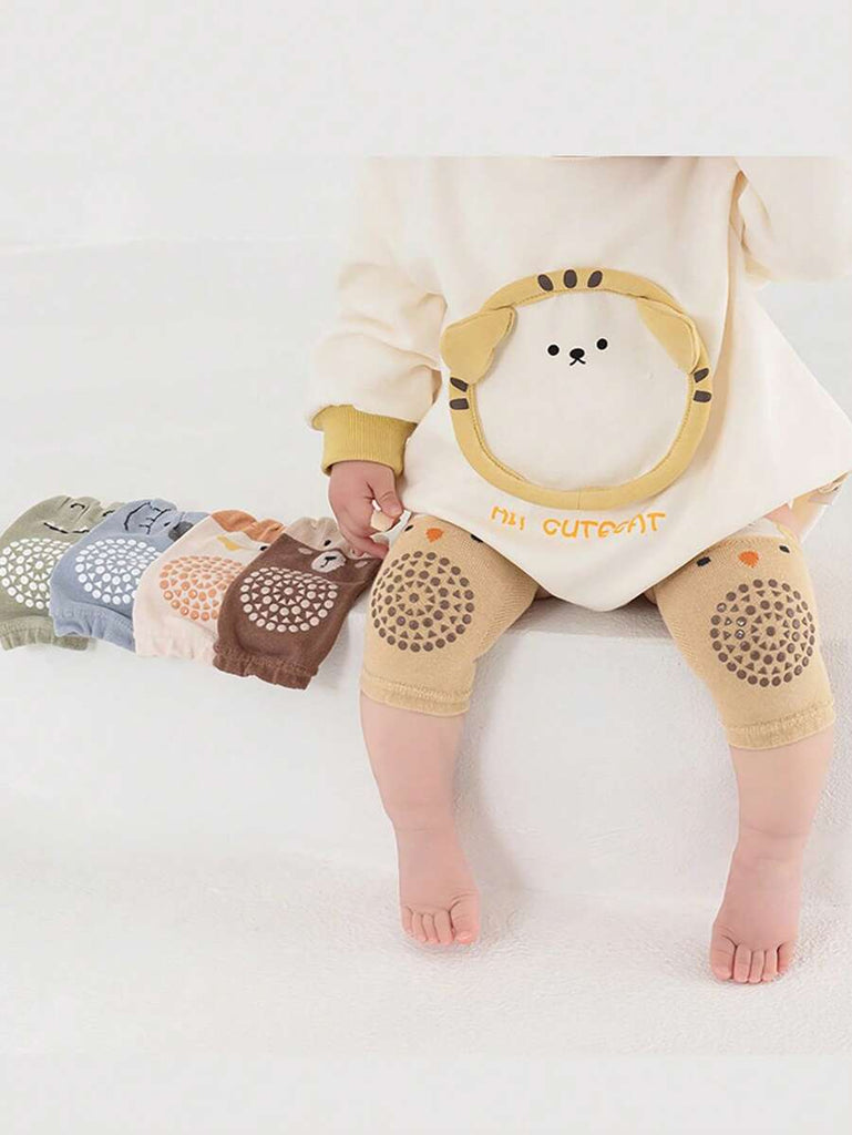 Random 3 Pairs/Set Baby Crawling Anti-Slip Kneepads, Knitted Toddler Knee Pads With Dinosaur & Elephant Designs For Infant Crawling & Walking