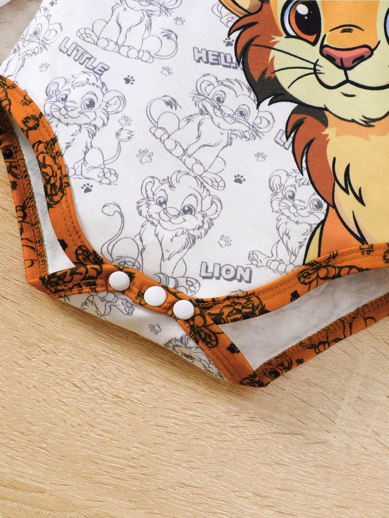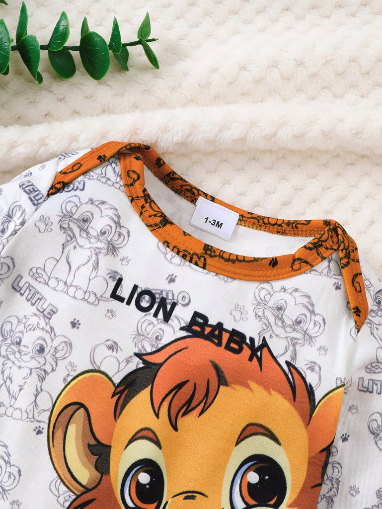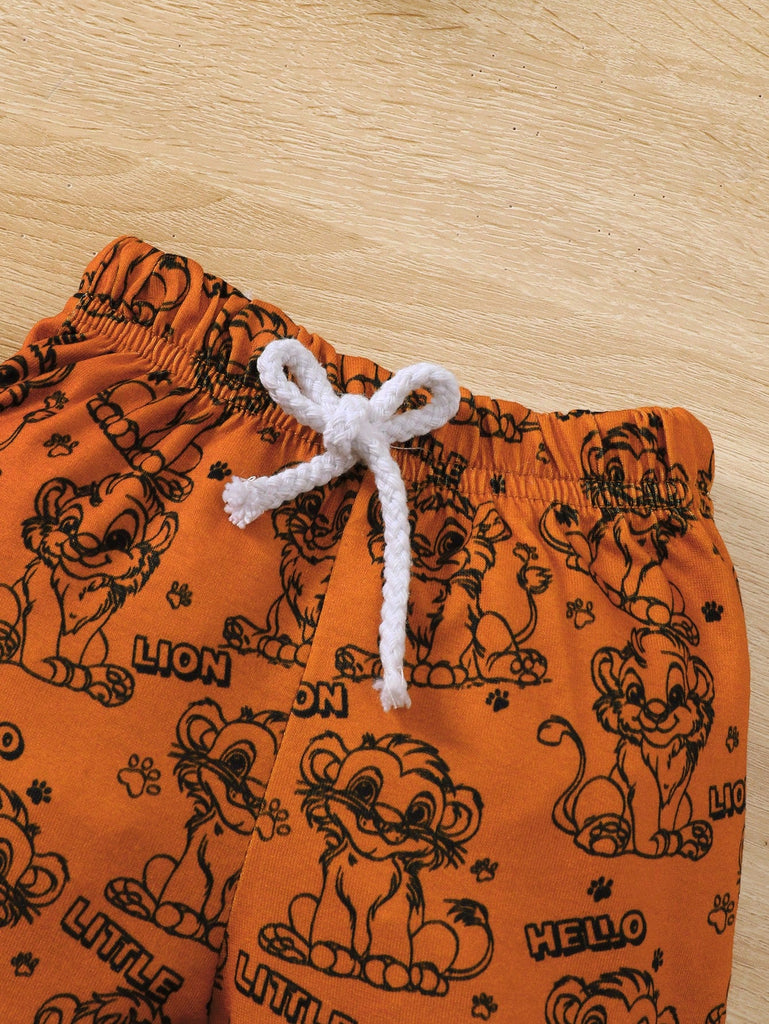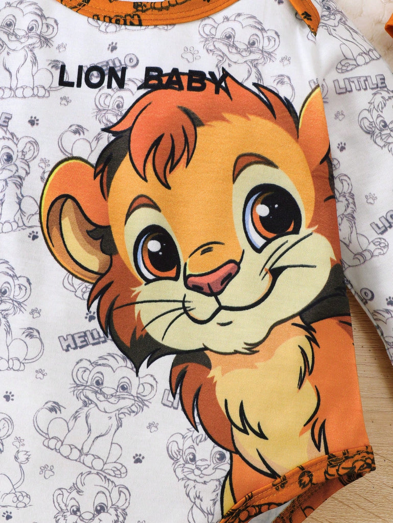 Baby Boy 3pcs Set "Brave Lion Baby" Long Sleeve Top, Pants With Lion Print, And Hooded Hat