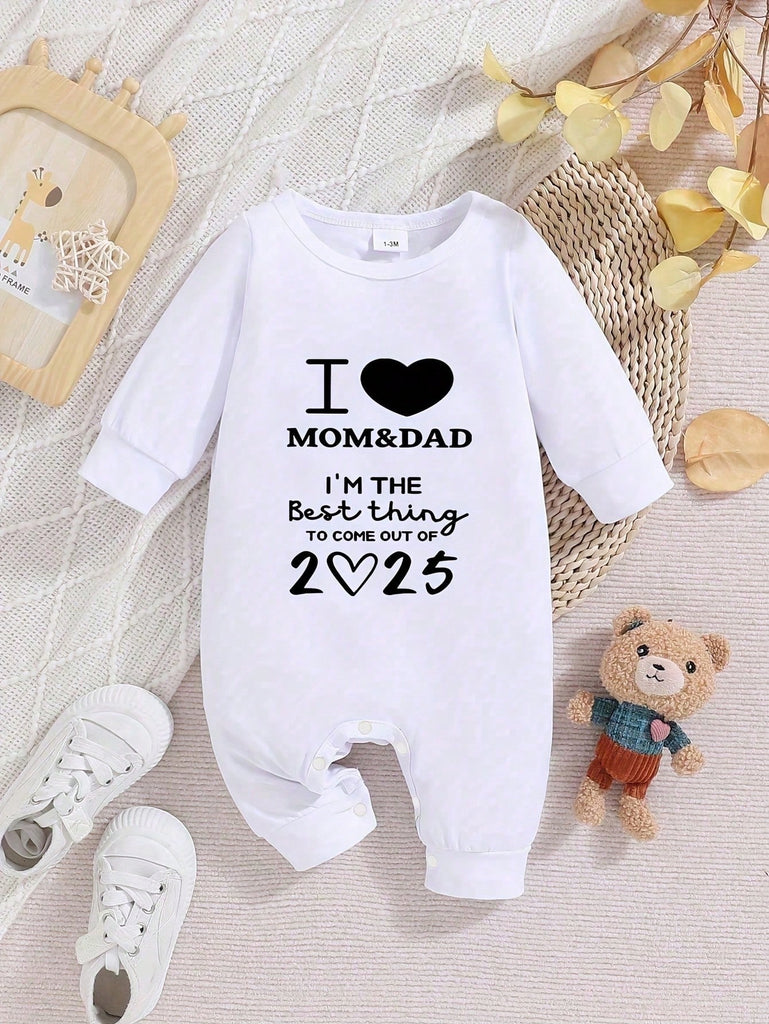Baby Boy Autumn Winter New Cartoon Welcome 2025 Letter Print Cute Long Sleeve Jumpsuit
