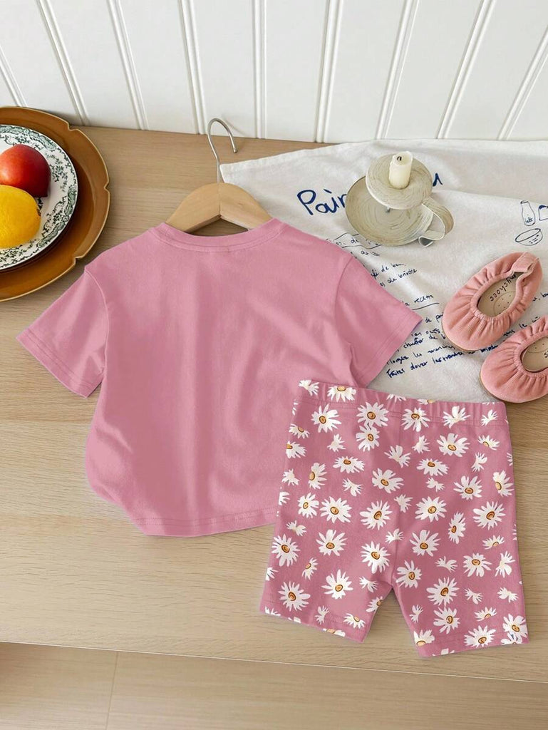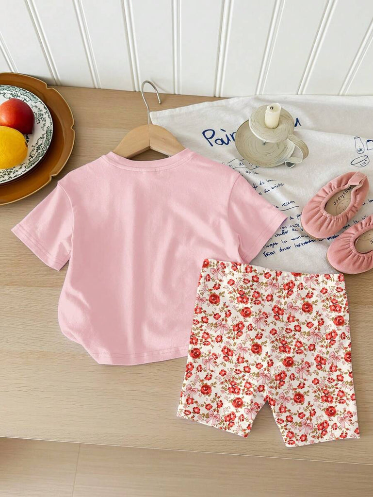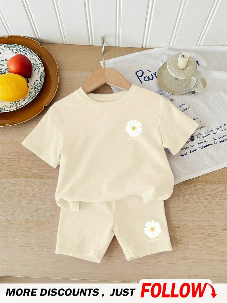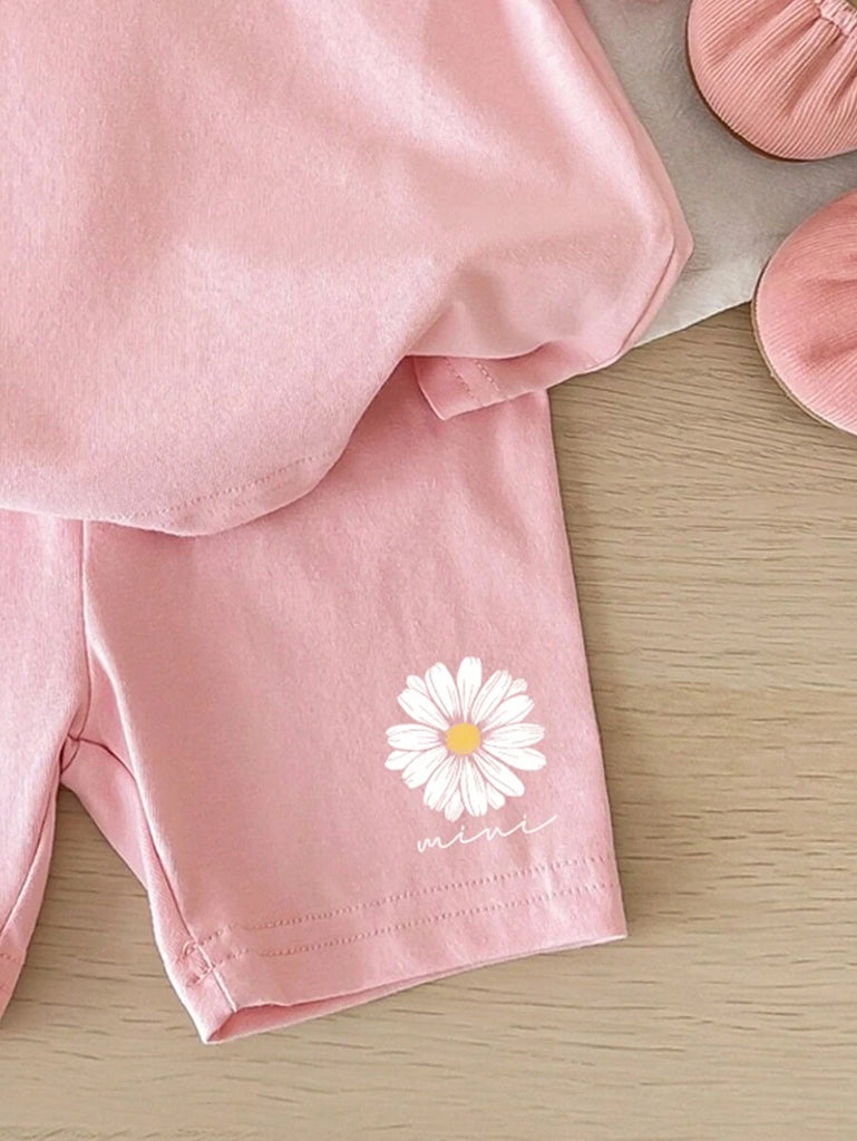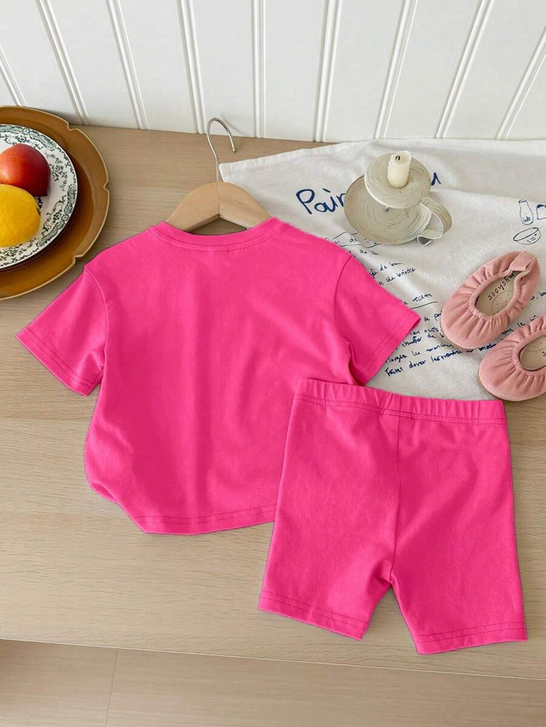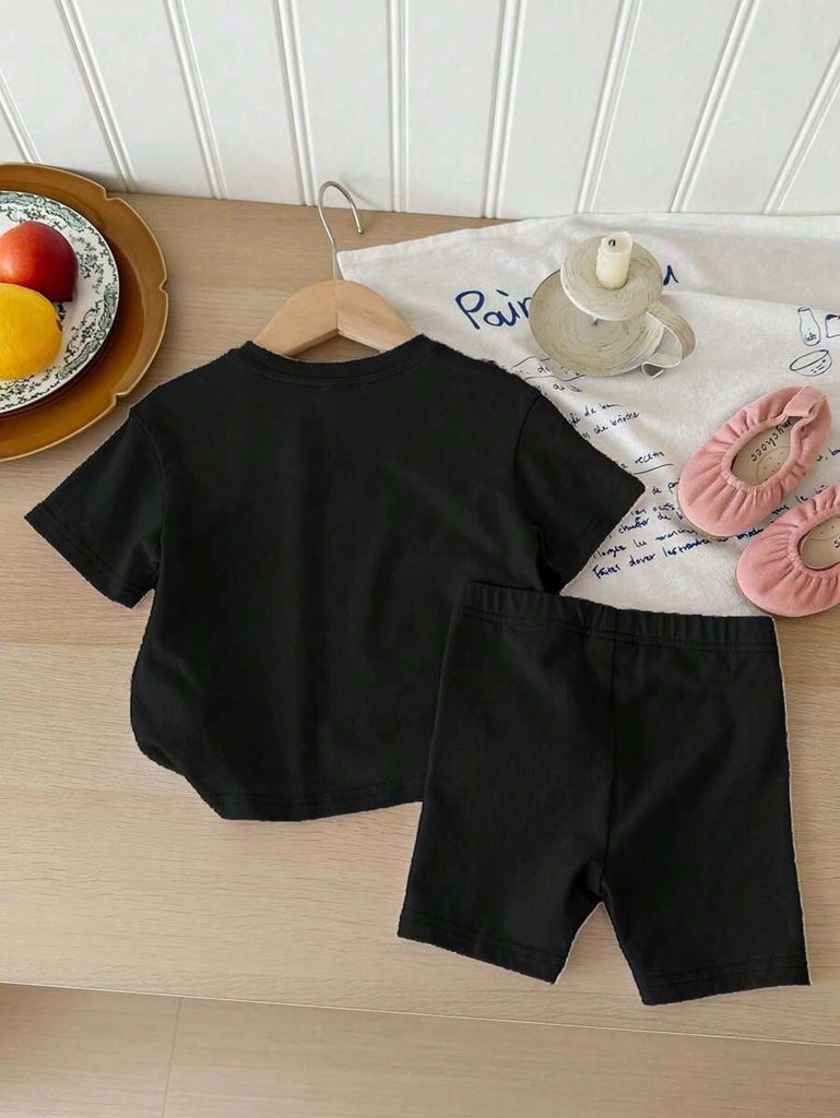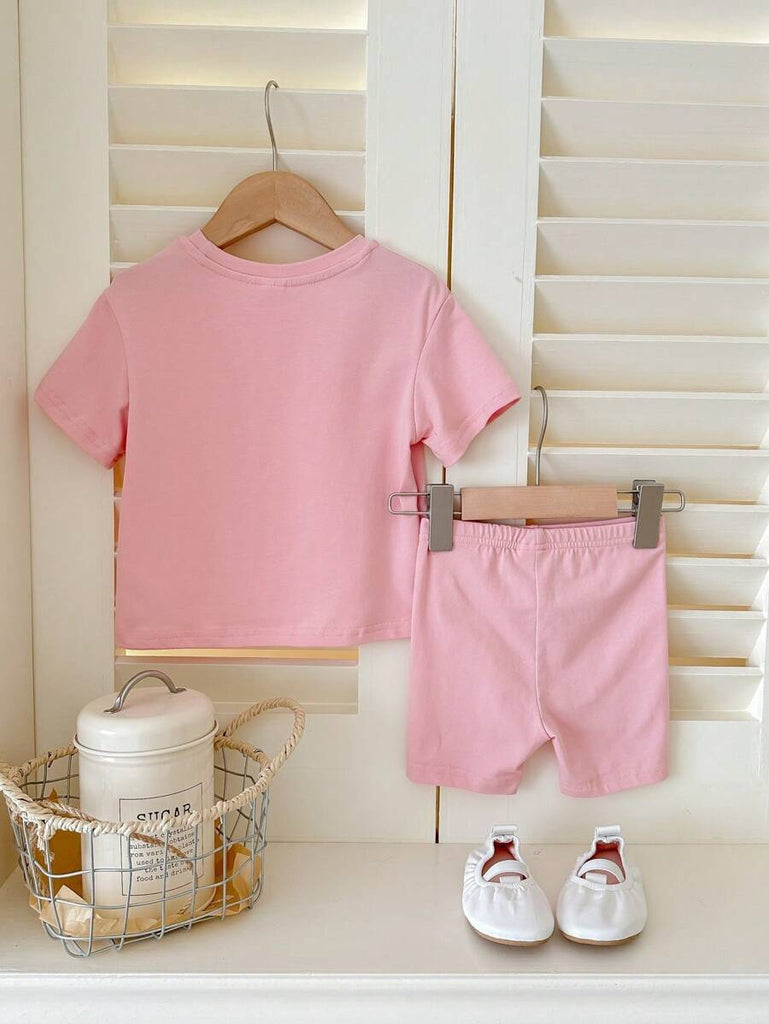 Baby Girl Casual Minimalist Short Sleeve Shorts Set, Suitable For Summer
