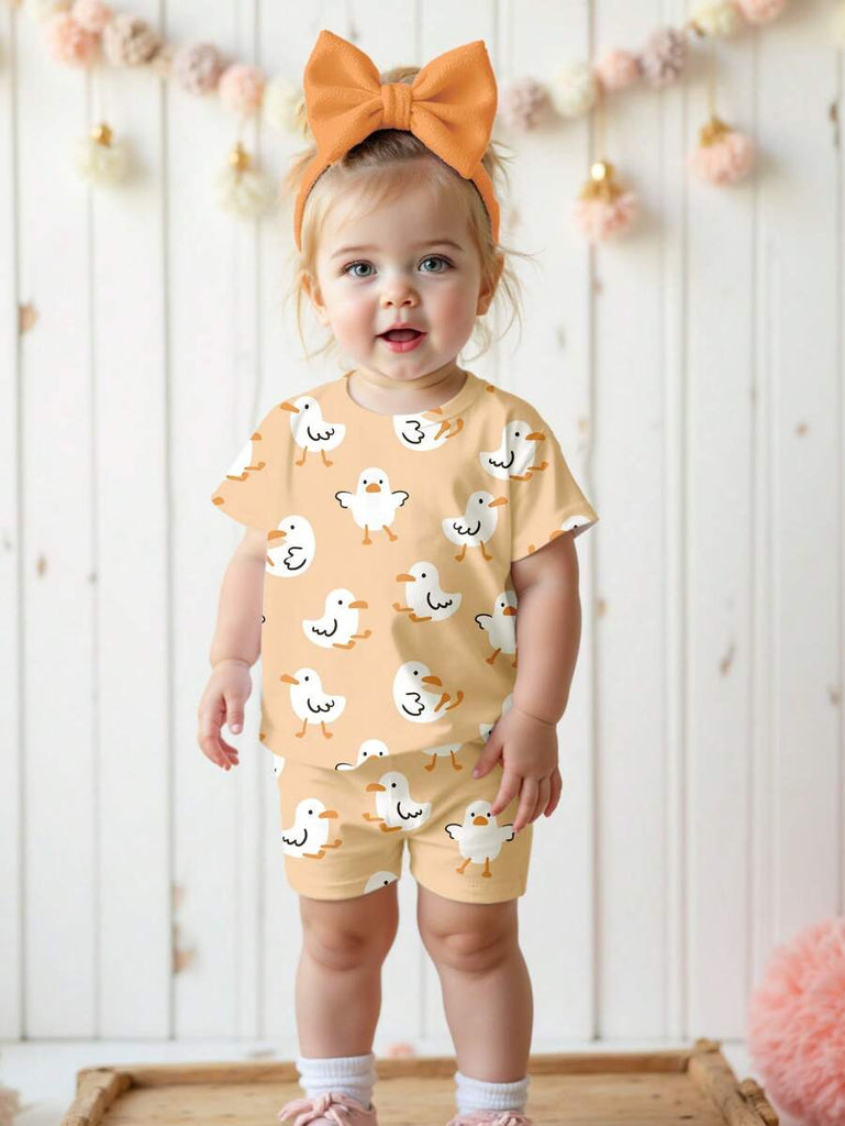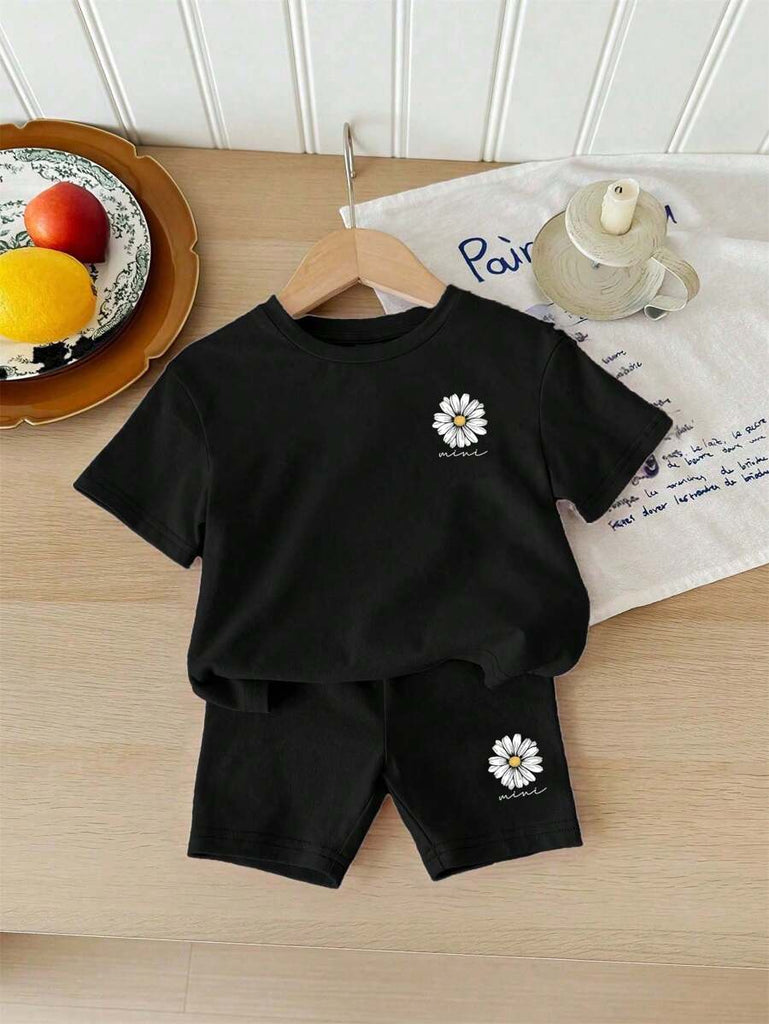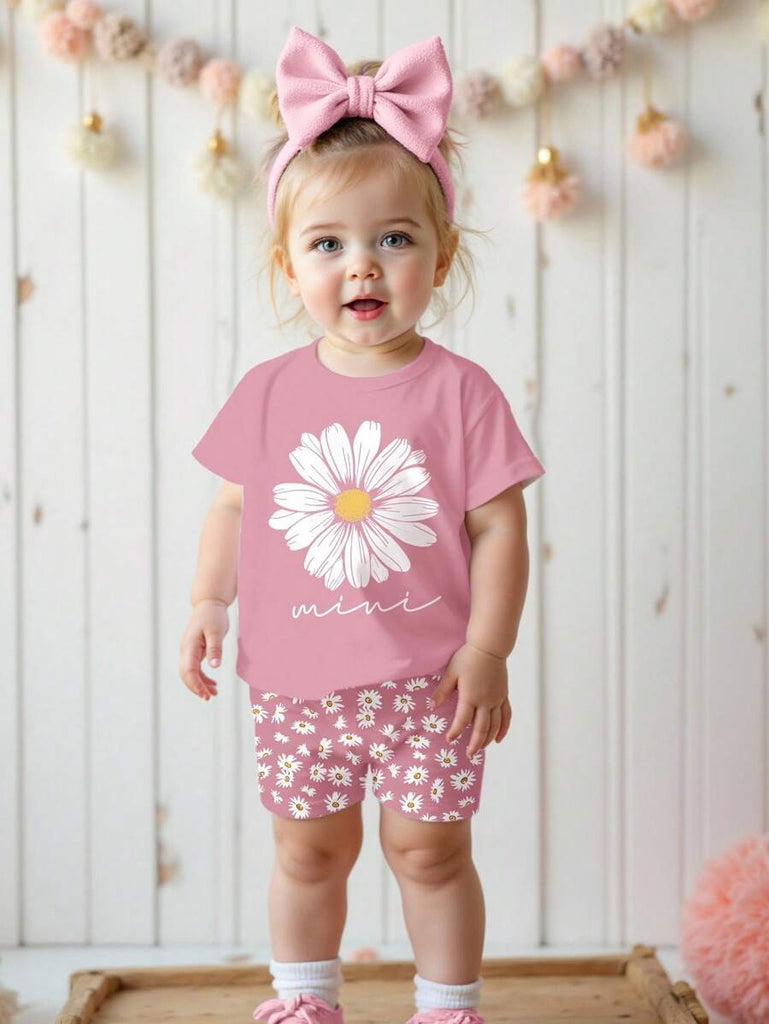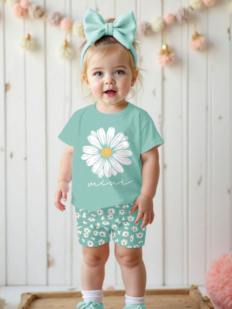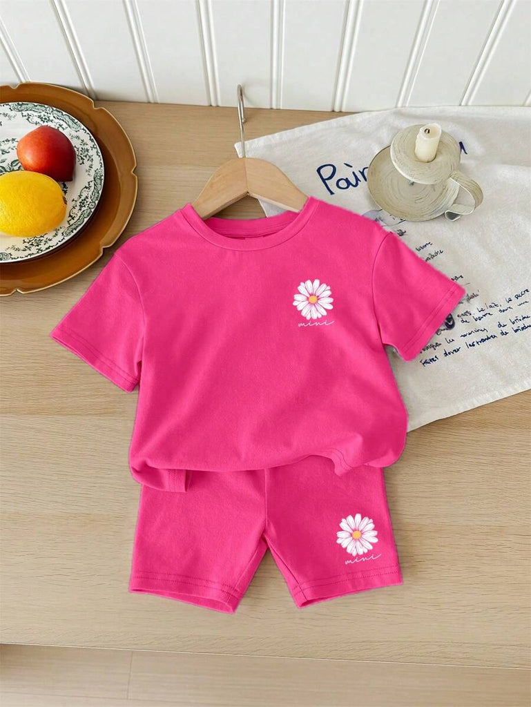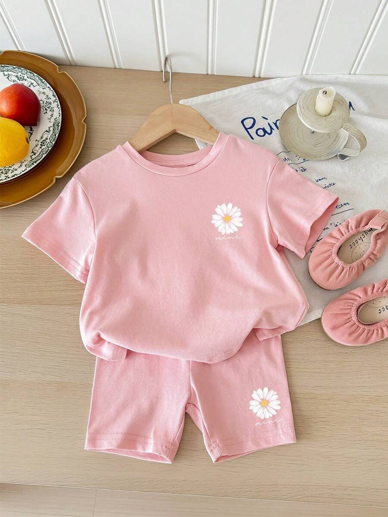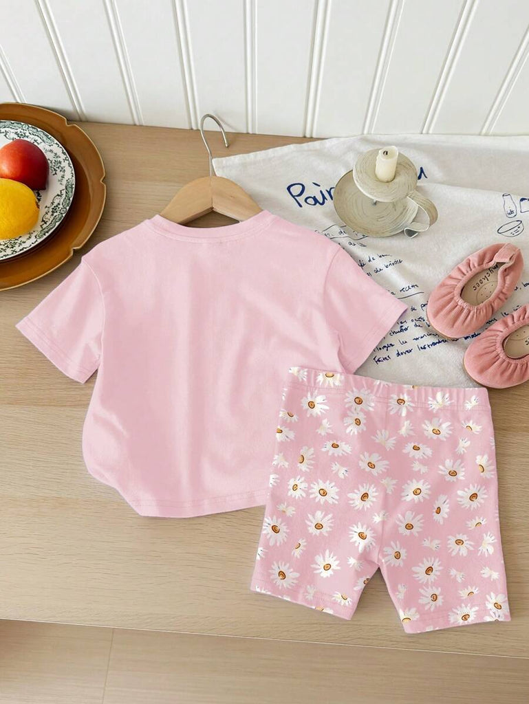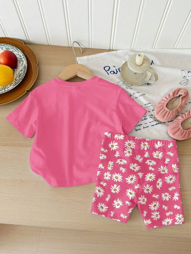 Baby Girl Casual Minimalist Short Sleeve Shorts Set, Suitable For Summer