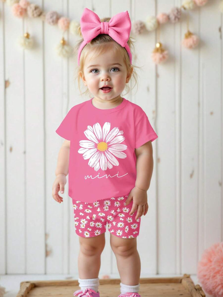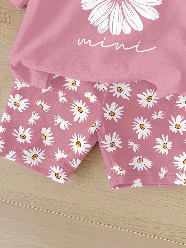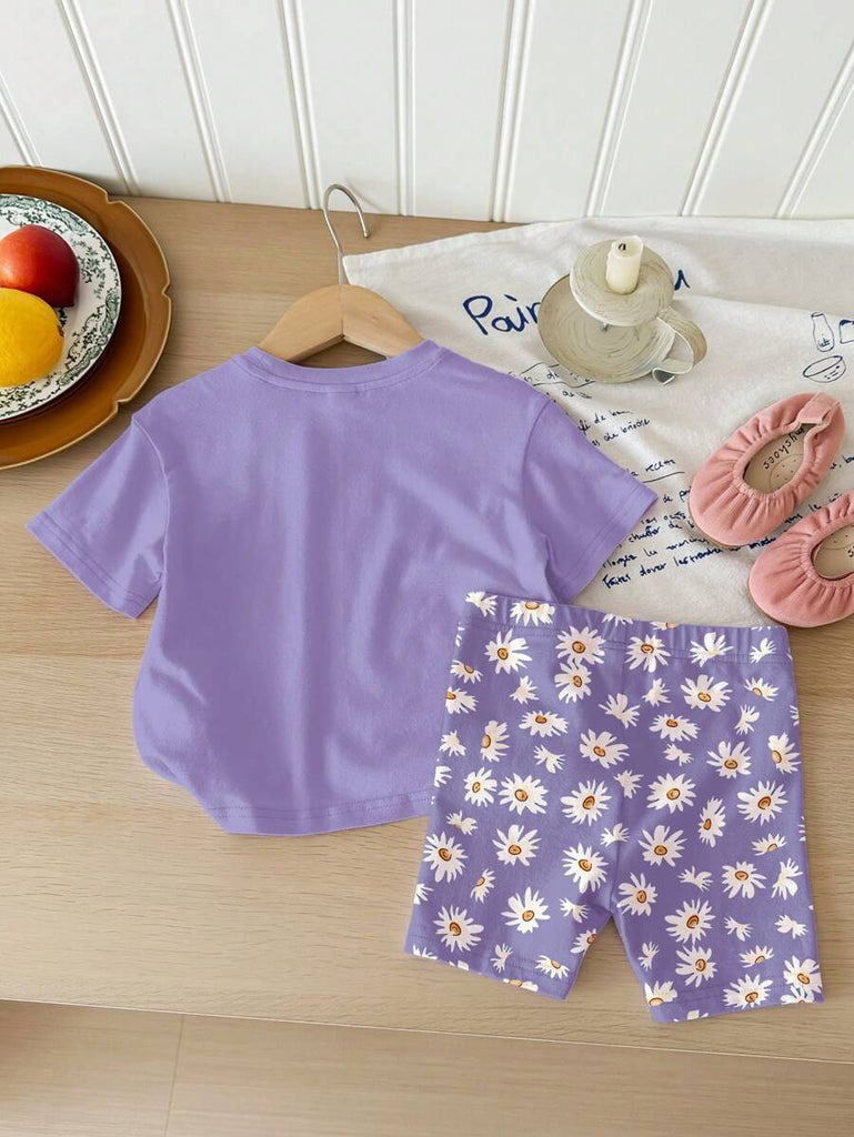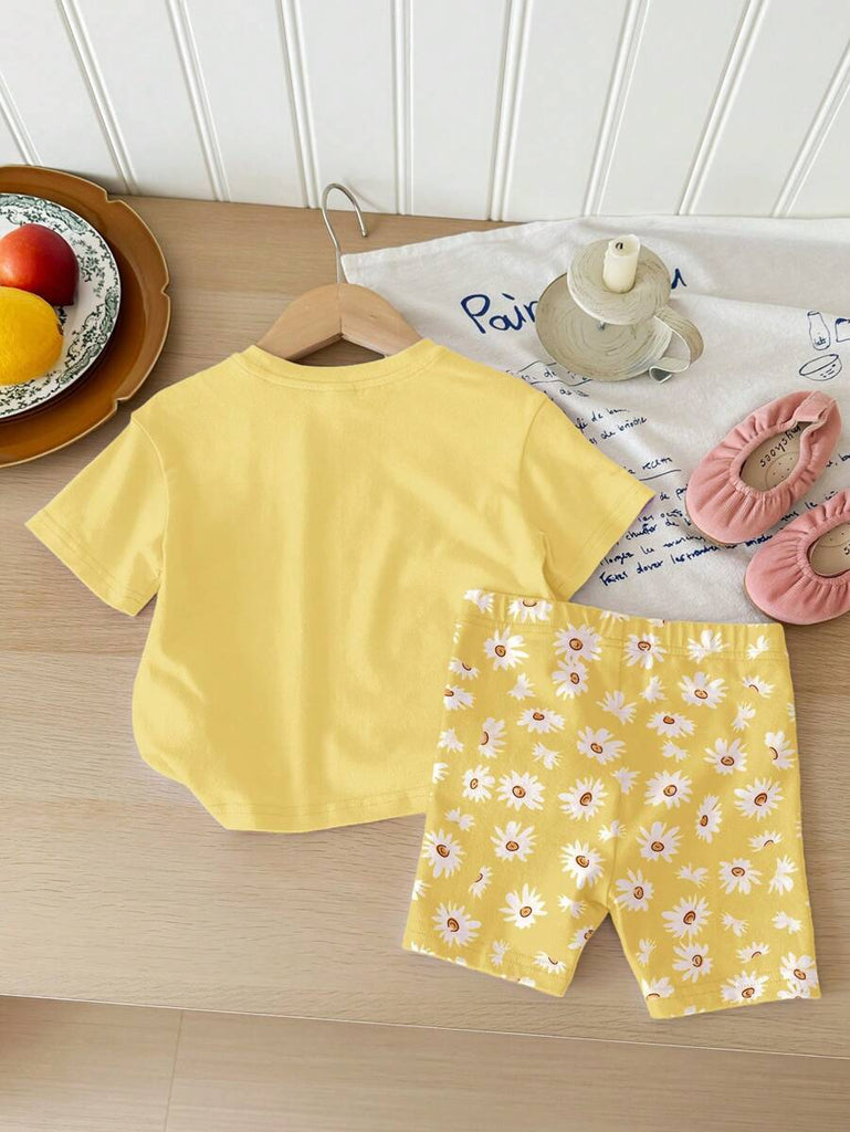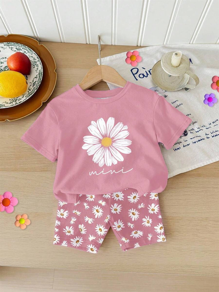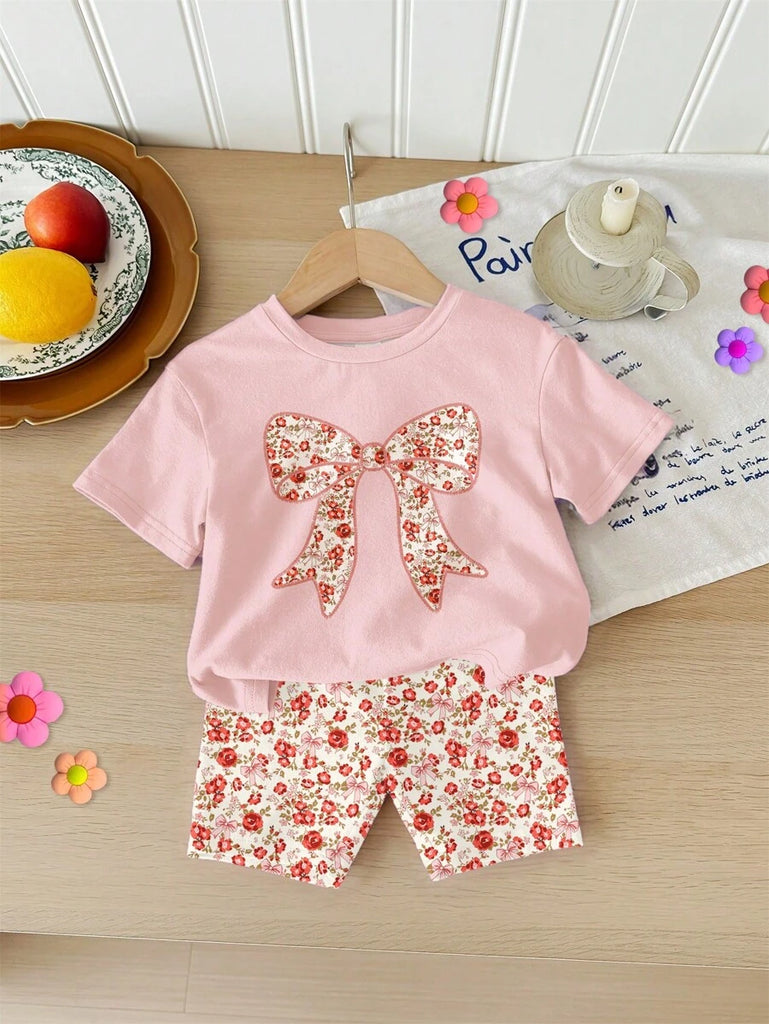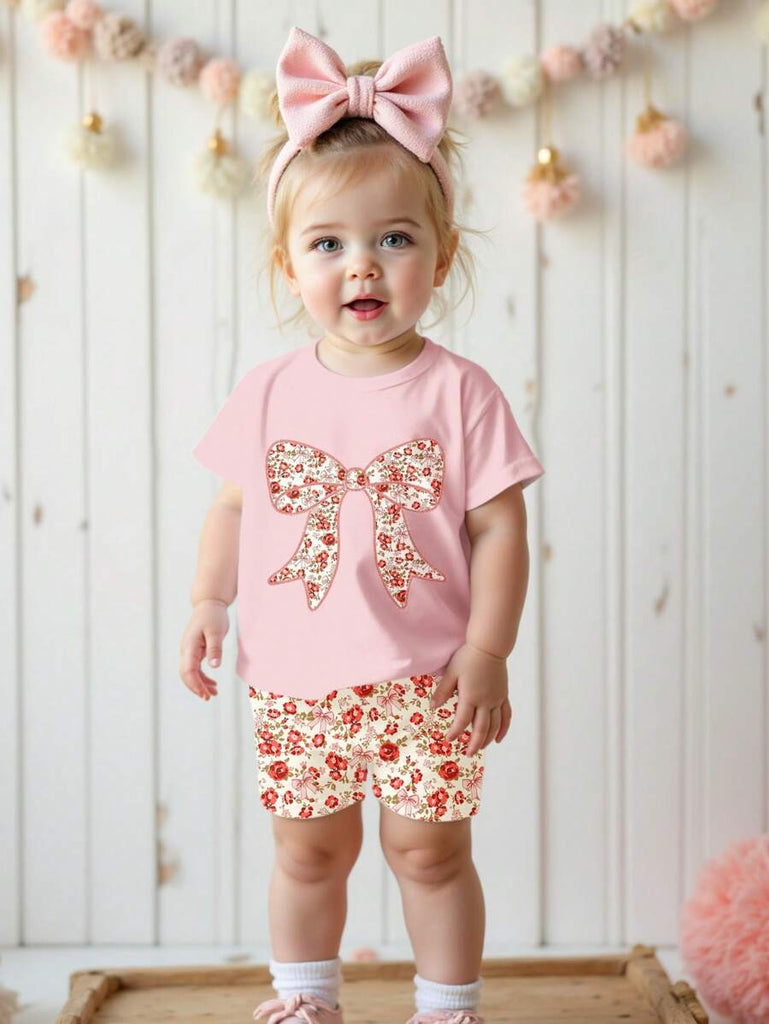 Baby Girl Casual Minimalist Short Sleeve Shorts Set, Suitable For Summer