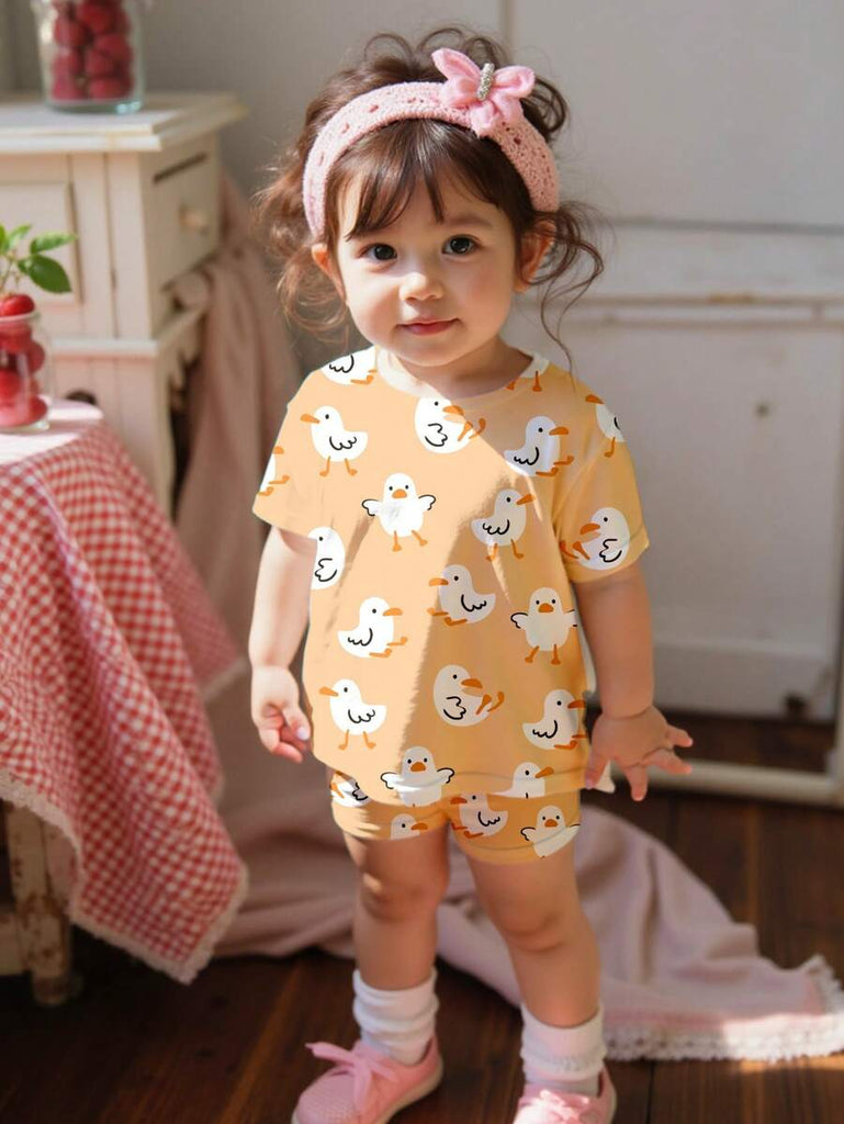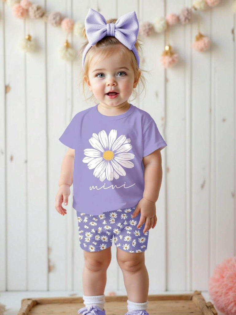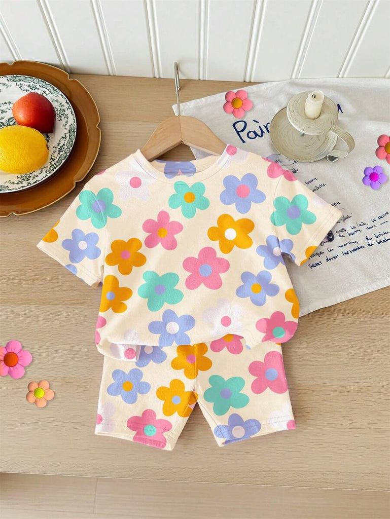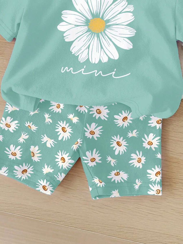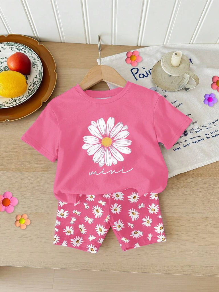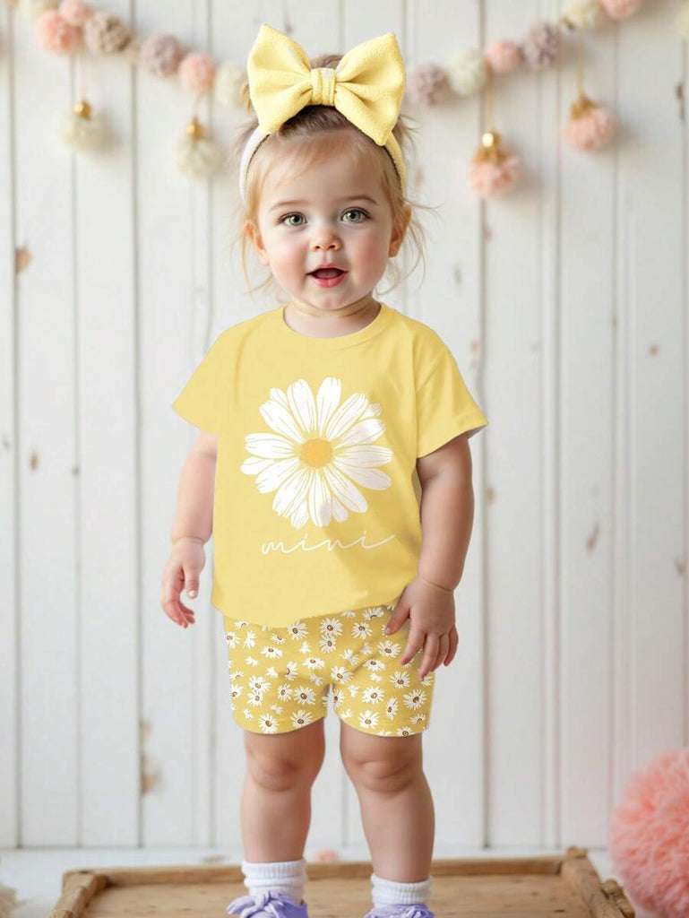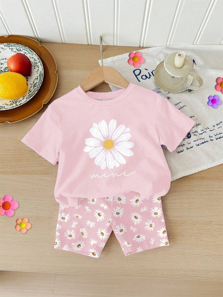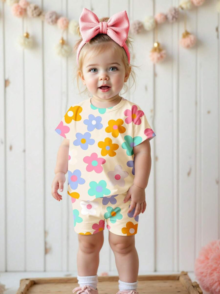 Baby Girl Casual Minimalist Short Sleeve Shorts Set, Suitable For Summer
