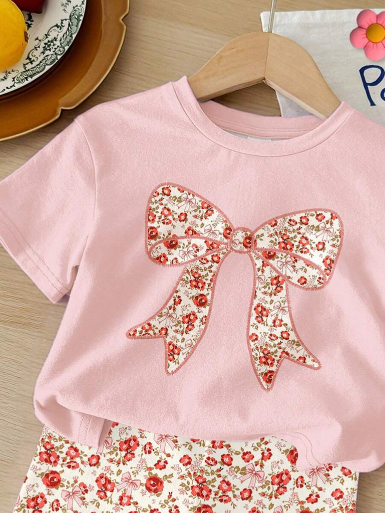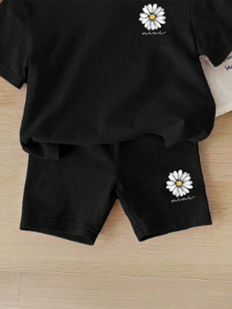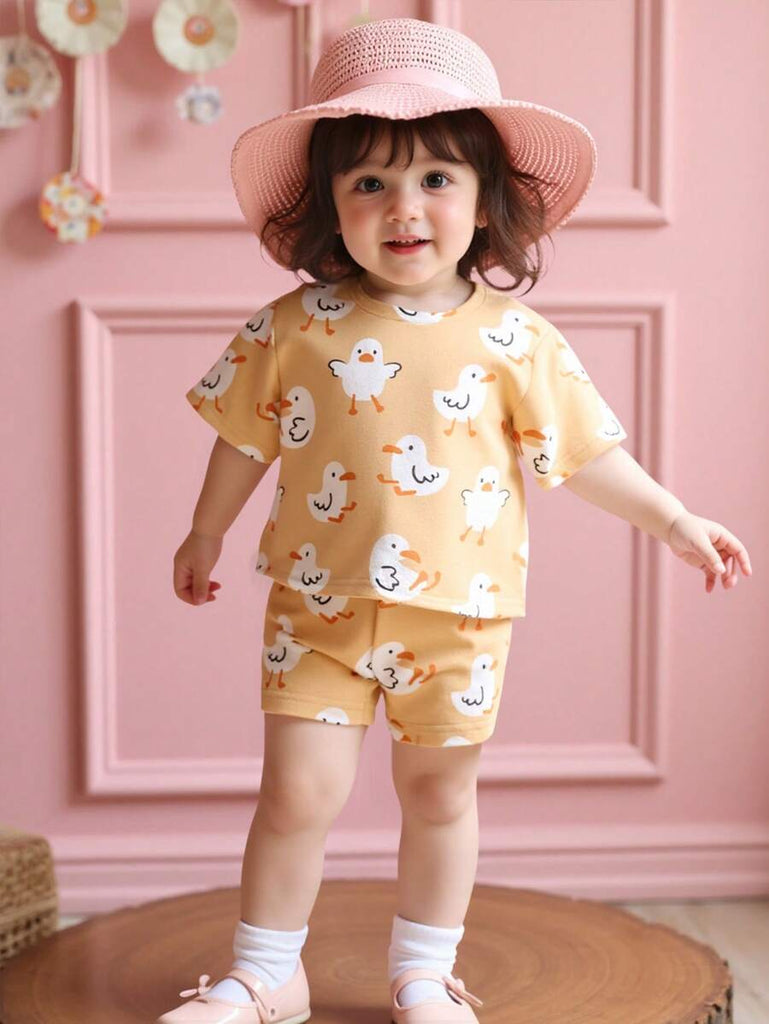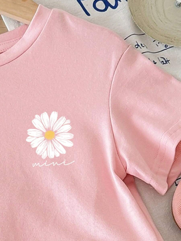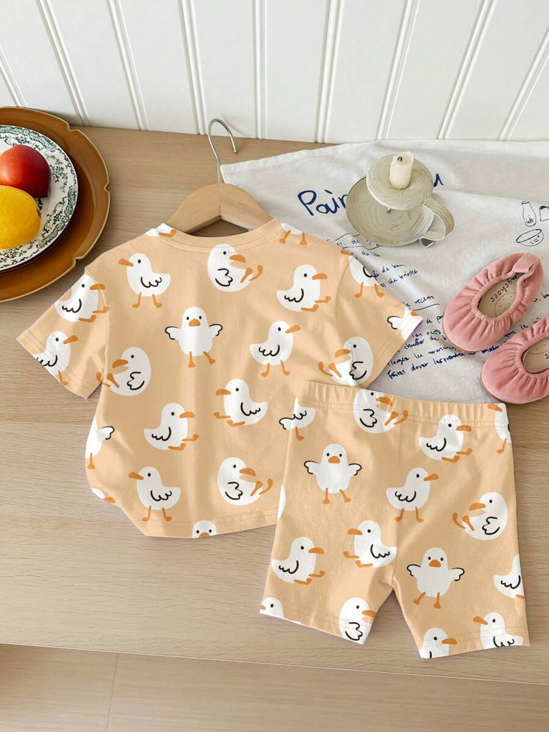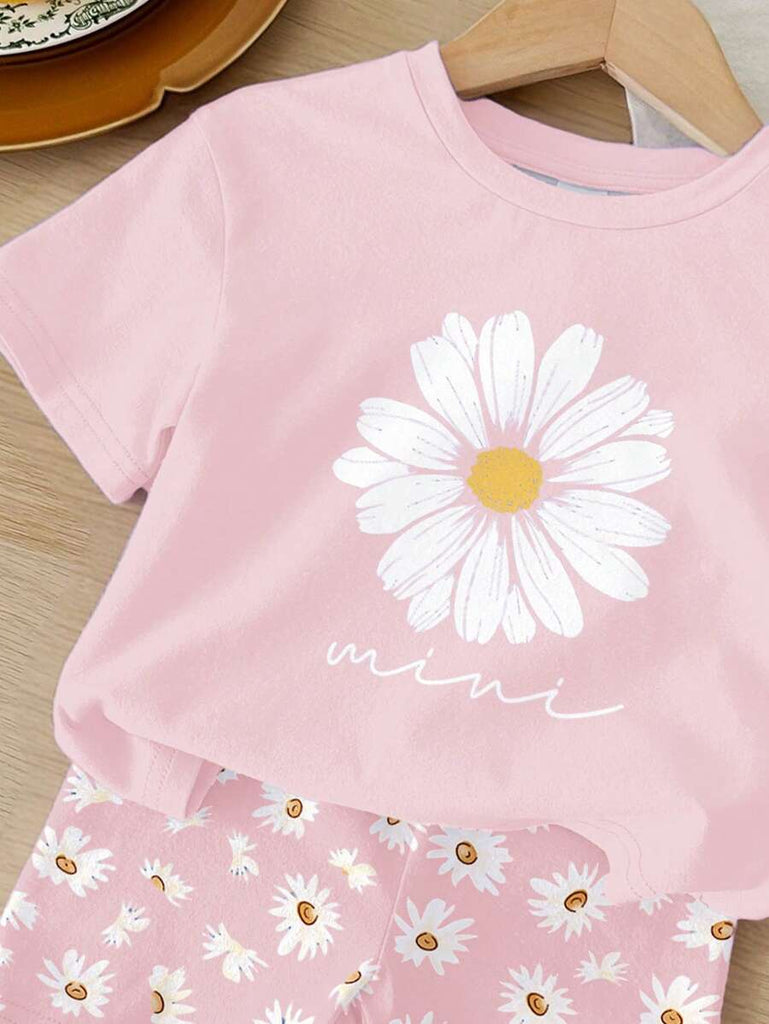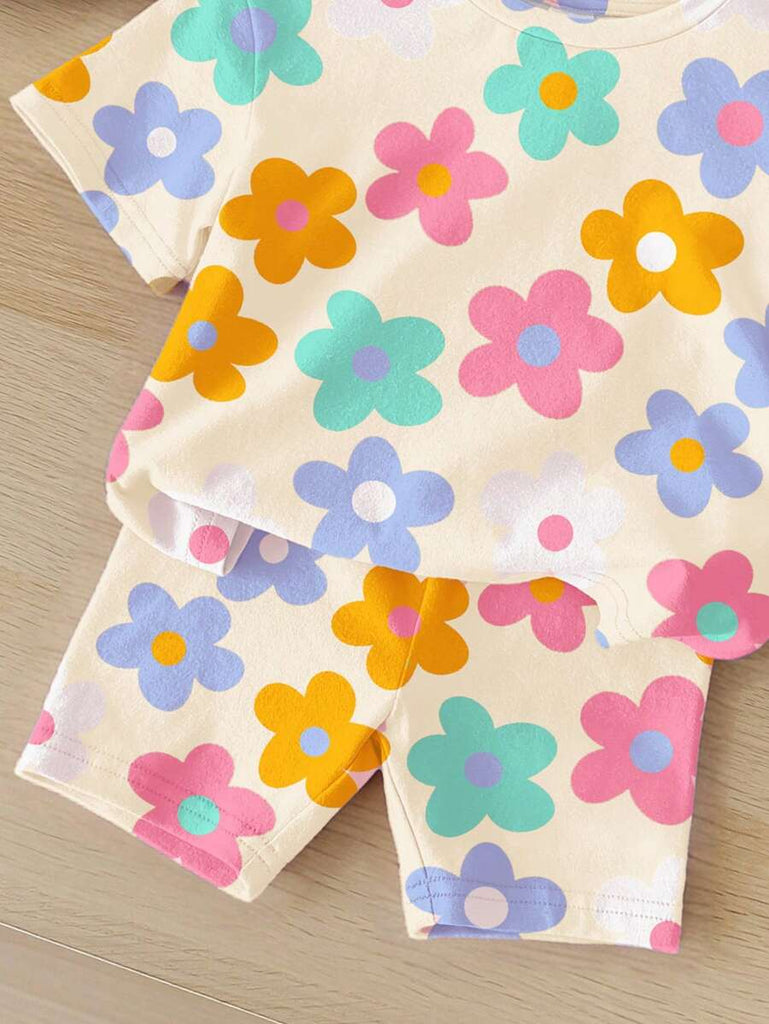 Baby Girl Casual Minimalist Short Sleeve Shorts Set, Suitable For Summer