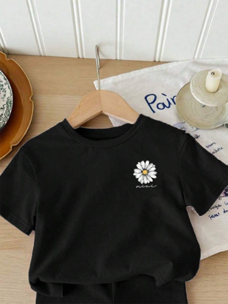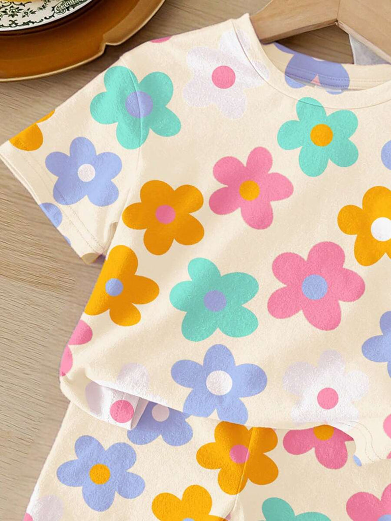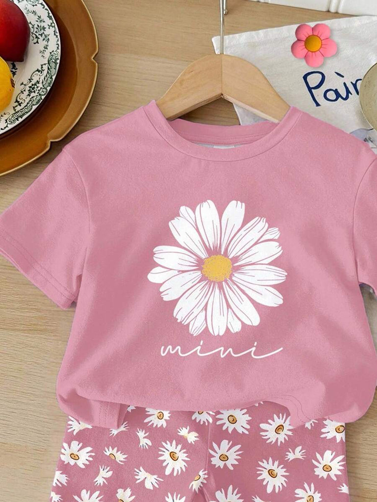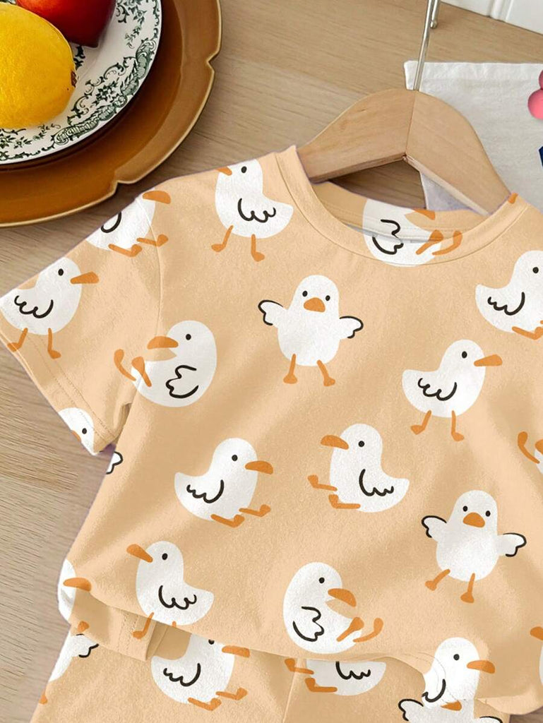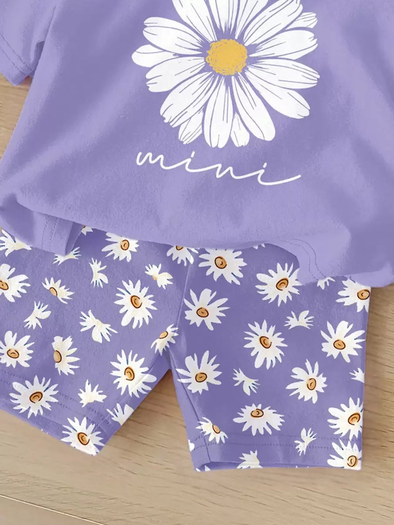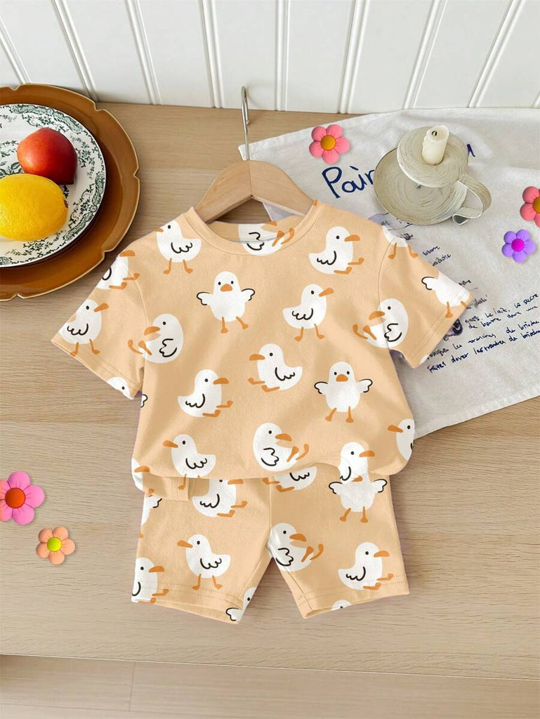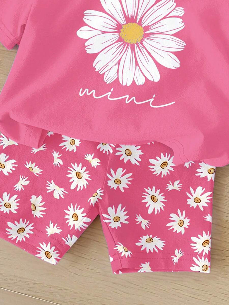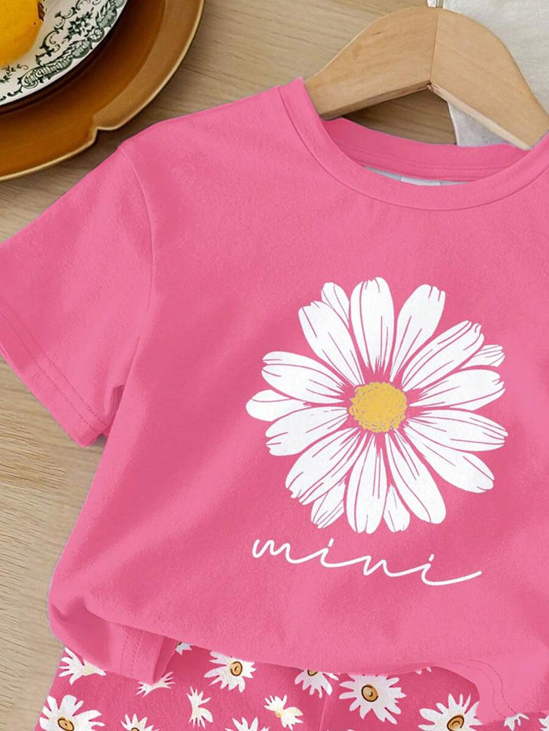 Baby Girl Casual Minimalist Short Sleeve Shorts Set, Suitable For Summer