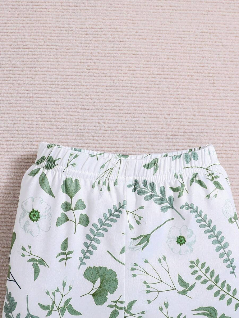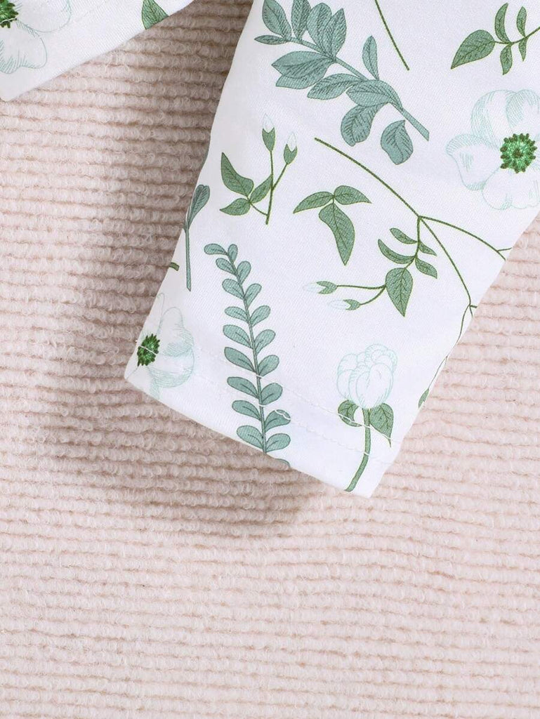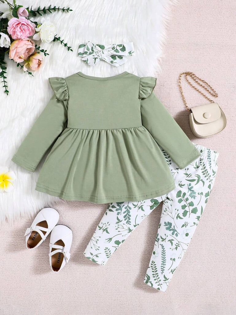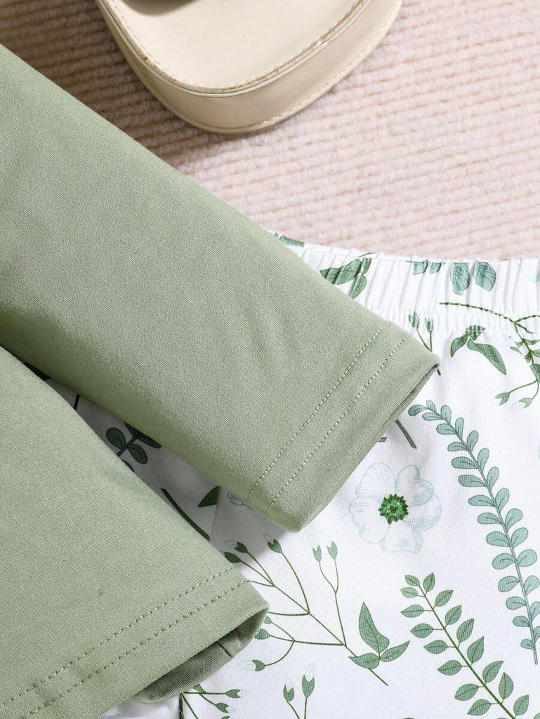 Baby Girl Solid Color Peter Pan Collar Long Sleeve Top With Printed Long Pants Set, Fall/Winter