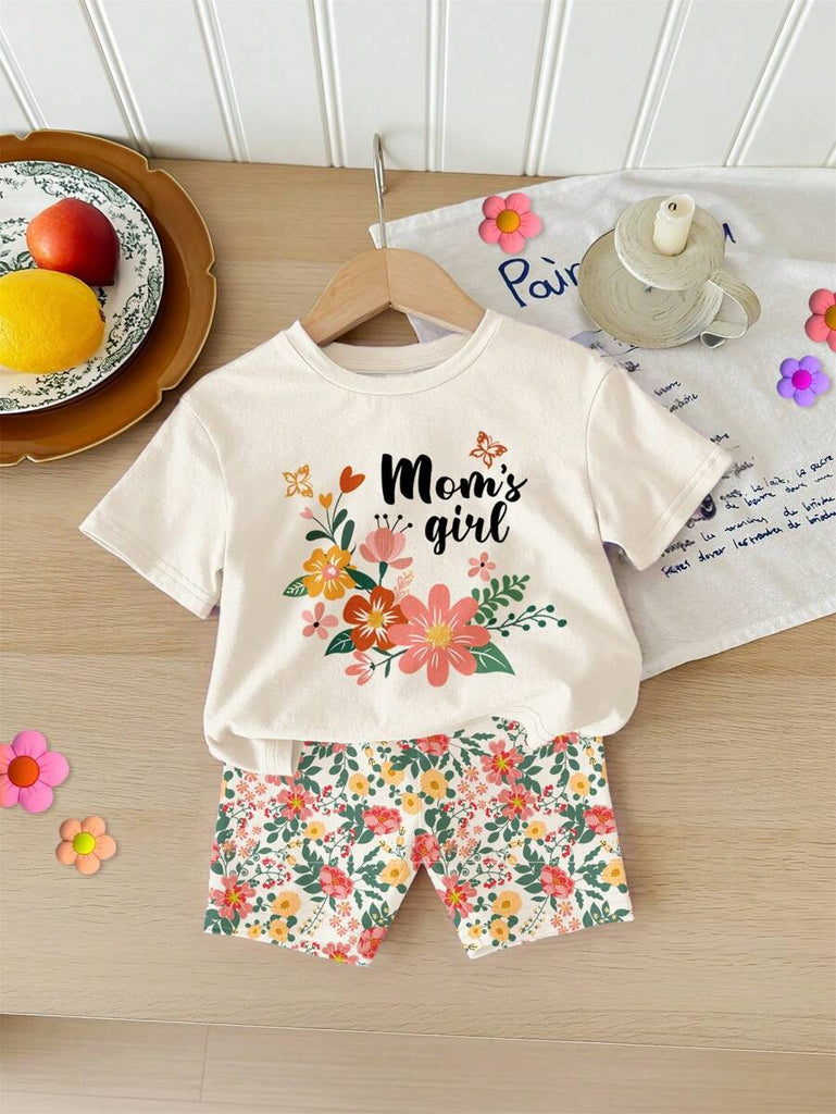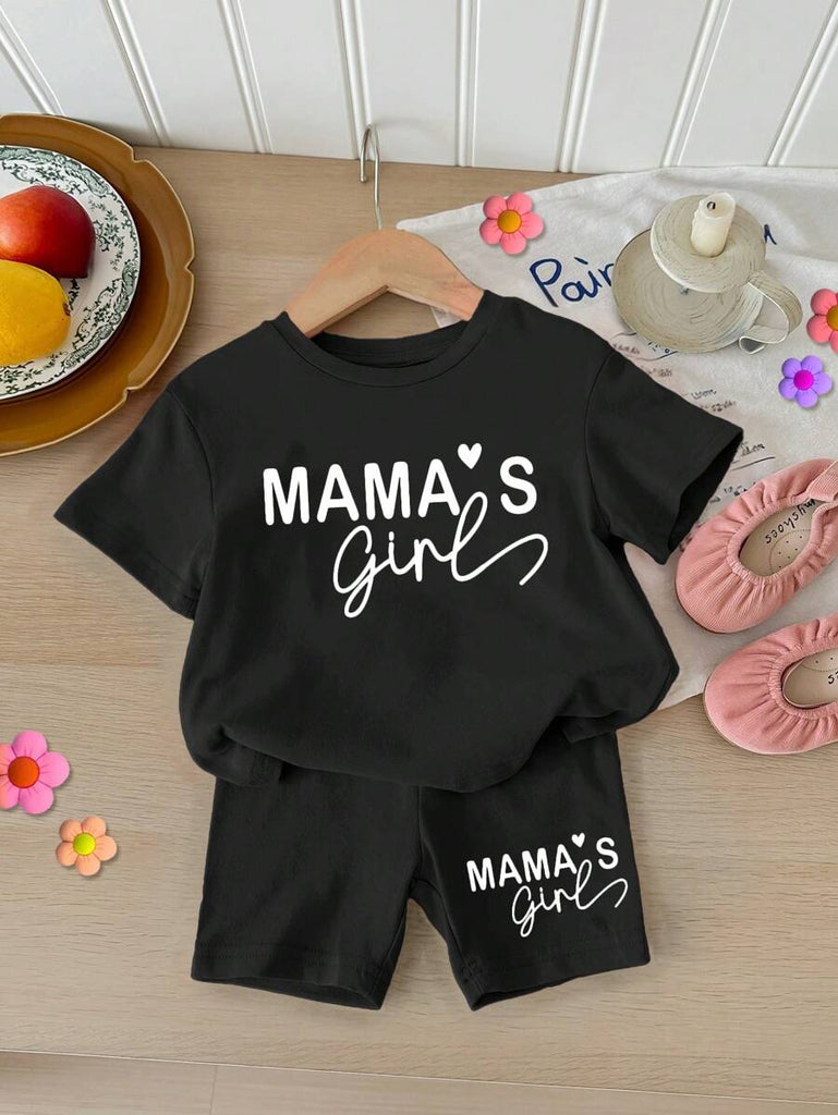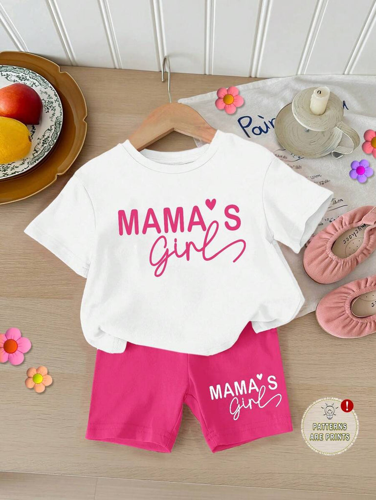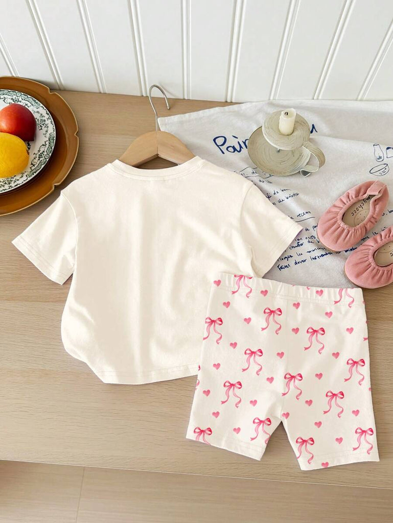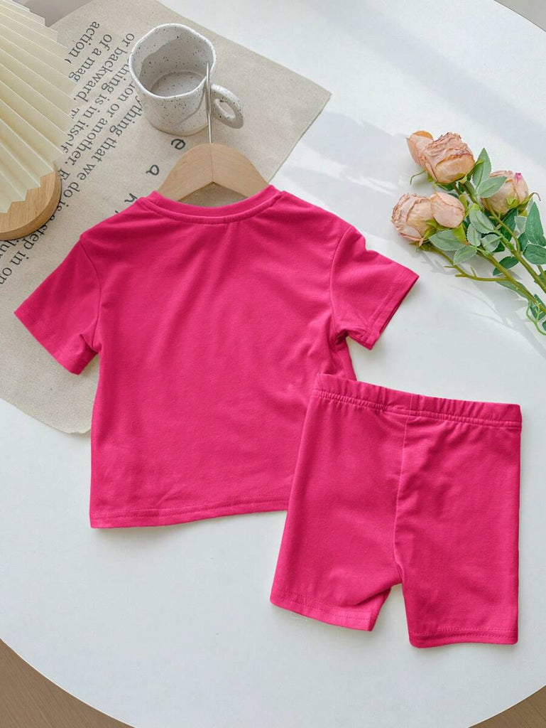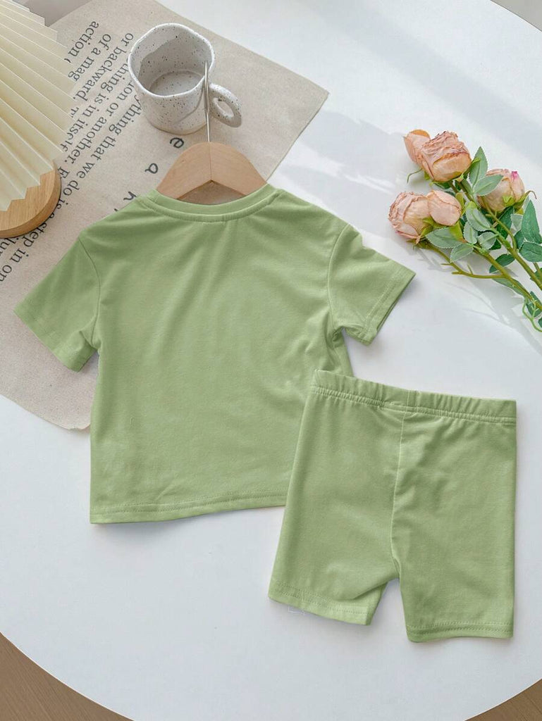Baby Girls 2pcs Set Round Neck Short Sleeve T-Shirt And Leggings, Casual & Minimalist