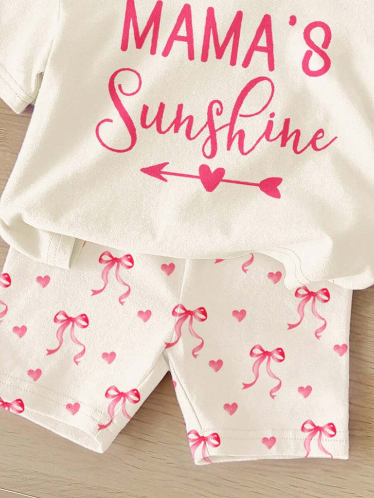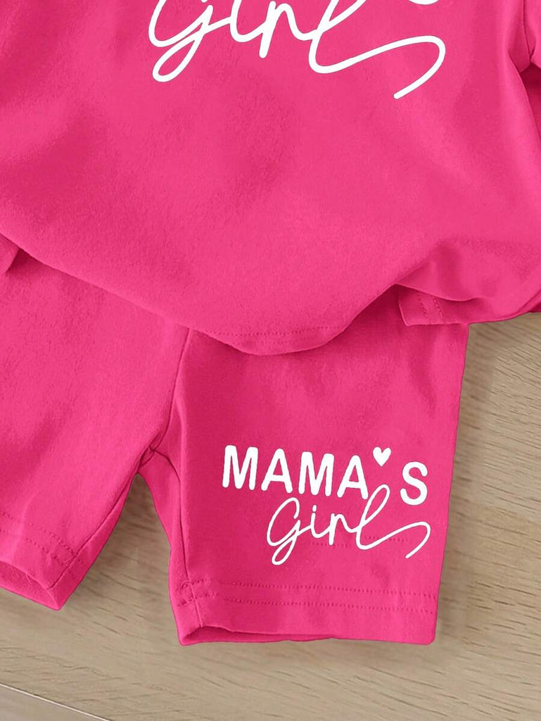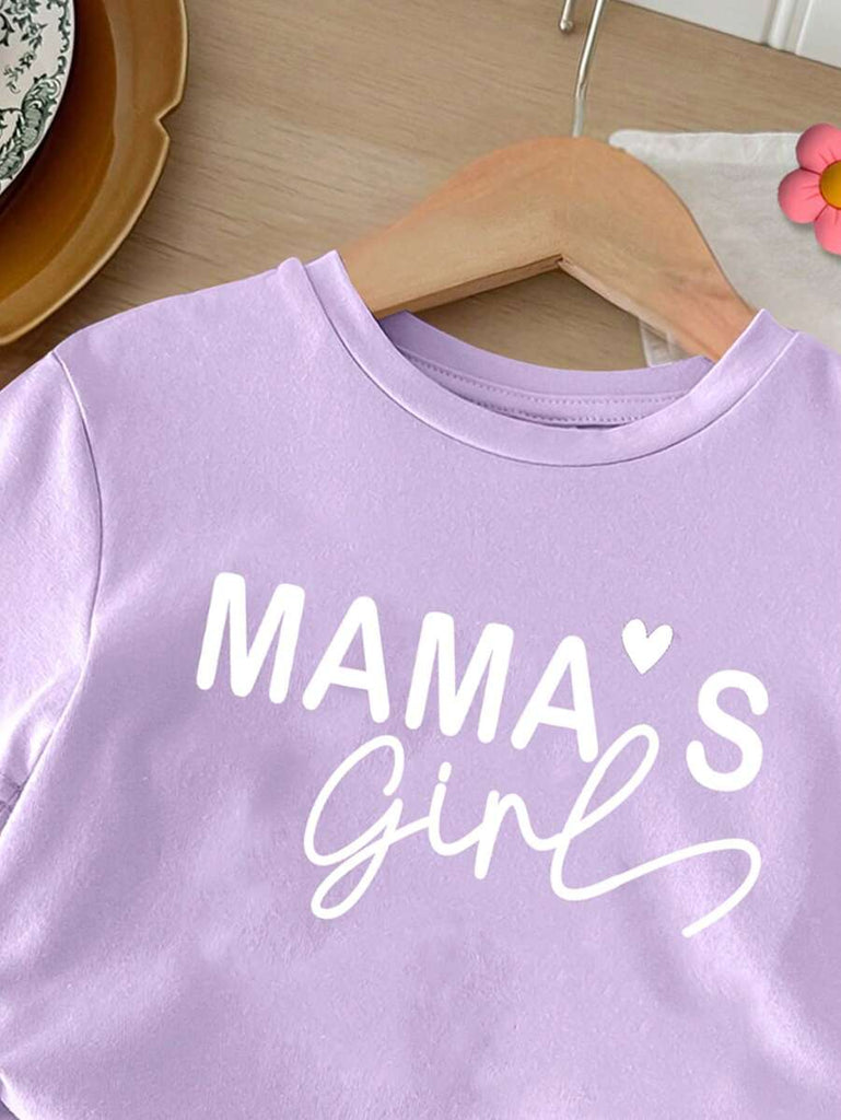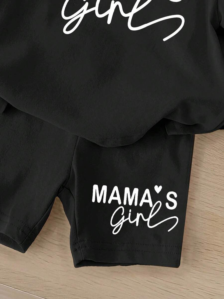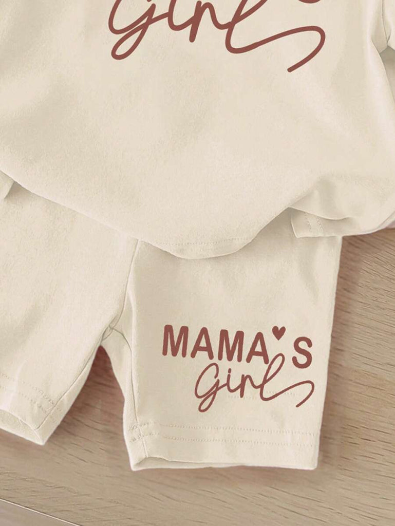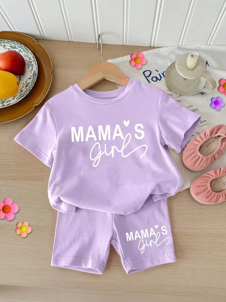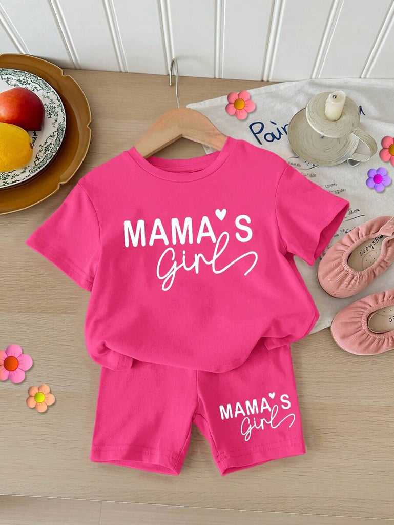 Baby Girls 2pcs Set Round Neck Short Sleeve T-Shirt And Leggings, Casual & Minimalist