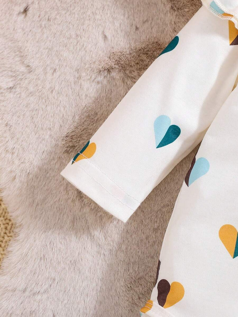New Spring And Autumn Baby Boy And Baby Girl Bow Headband White Heart Patchwork Bodysuit Cute Yellow Trousers Three Pieces Set