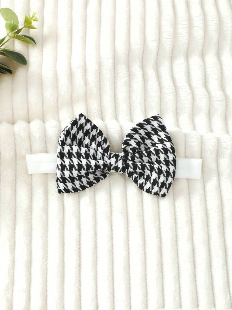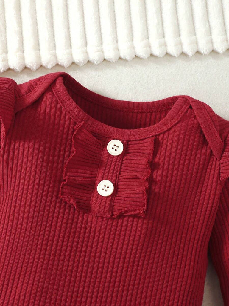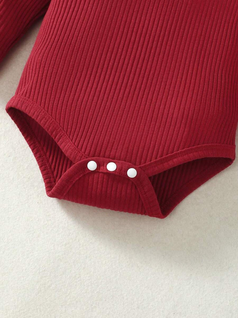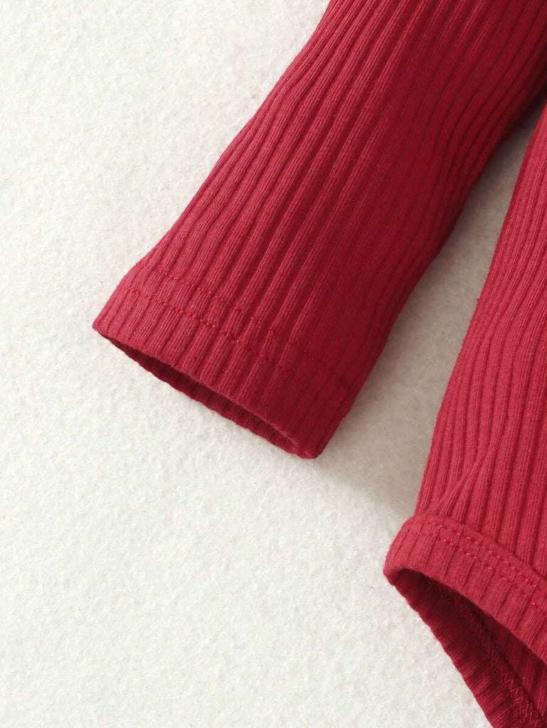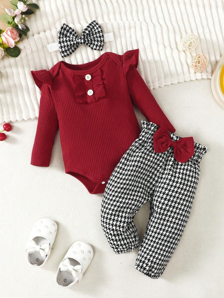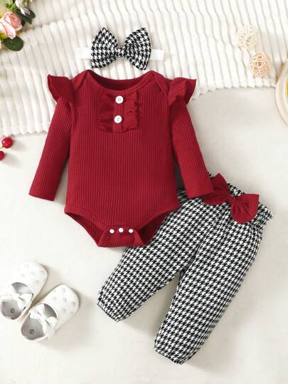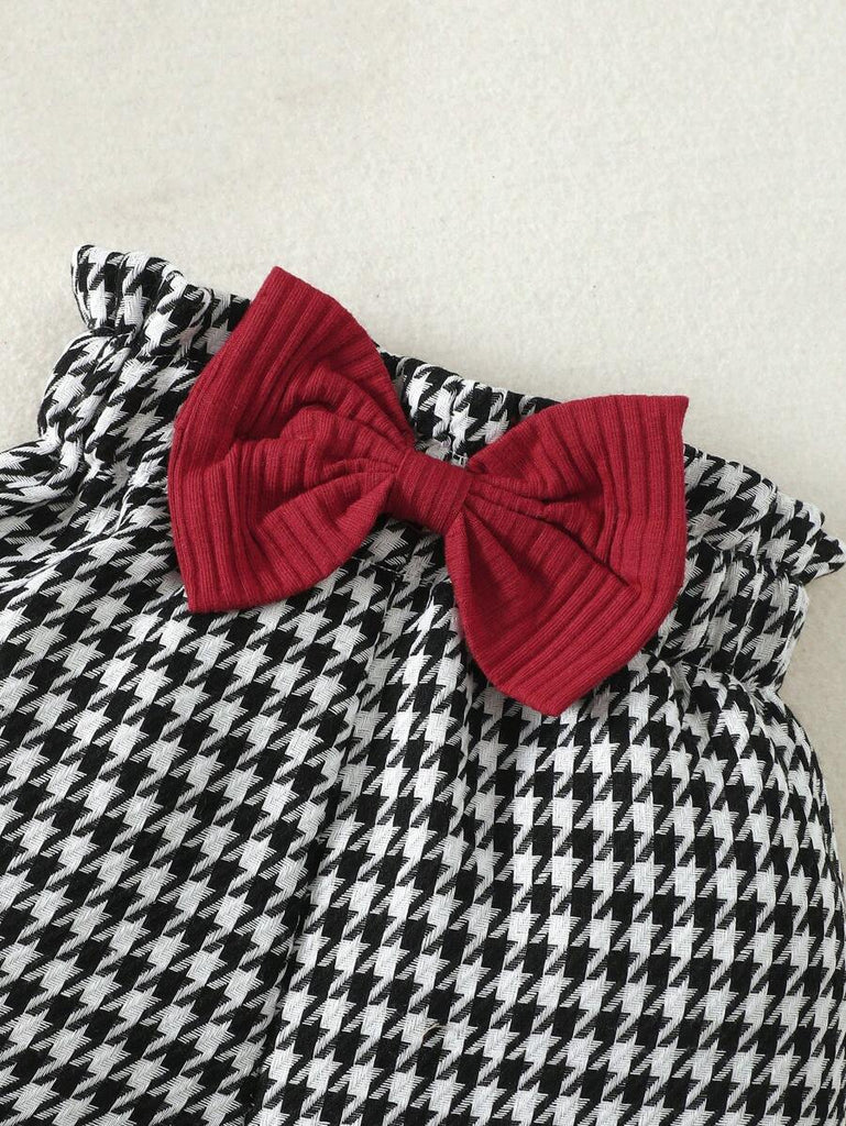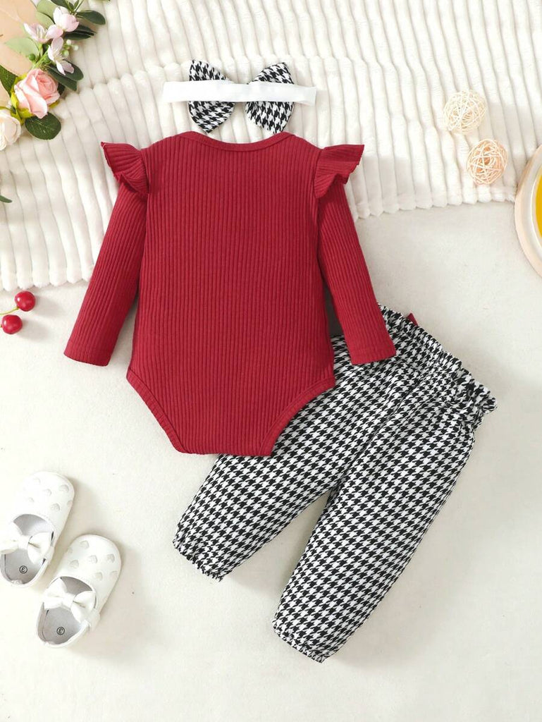 Plain Color Baby Girl Jumpsuit & Houndstooth Pants Set, For Christmas