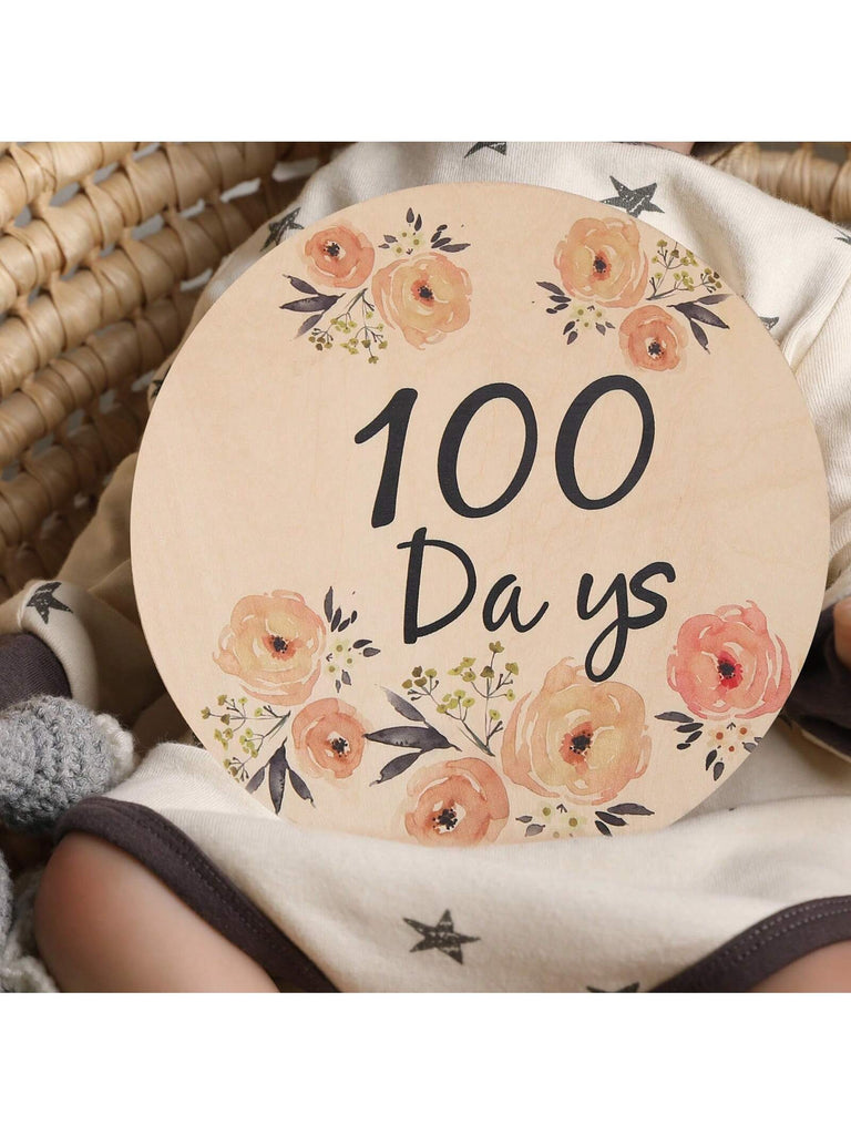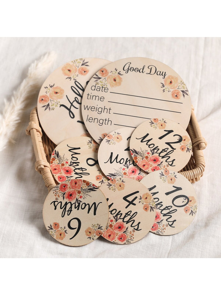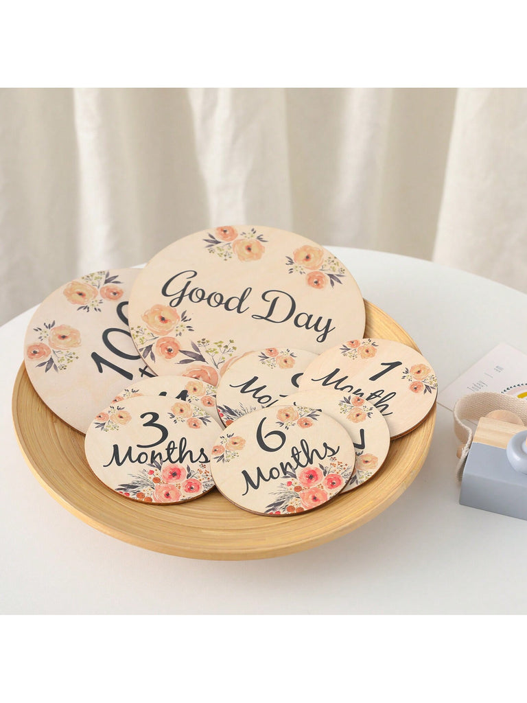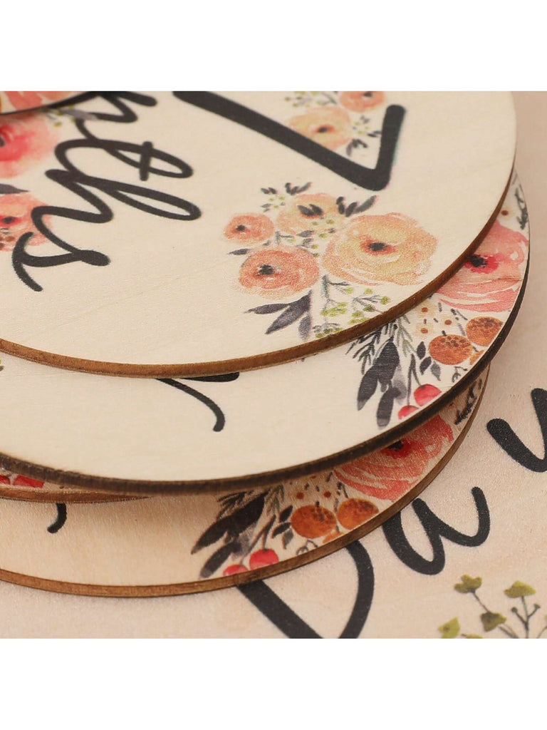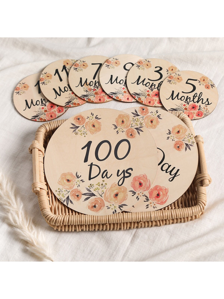Set Of 6 Wooden Milestone Cards For Baby's Monthly Progress, 100 Days Anniversary, Birthday Photo Props, Flower Shaped Baby Shower Family Decorations Gifts Baby Shower Easter Gift Things For Girls/Boys