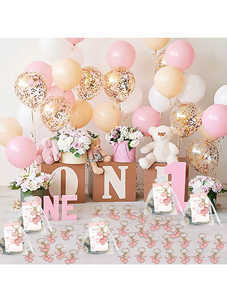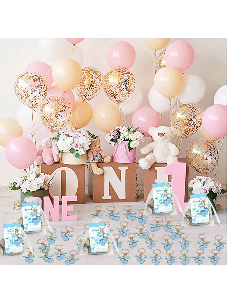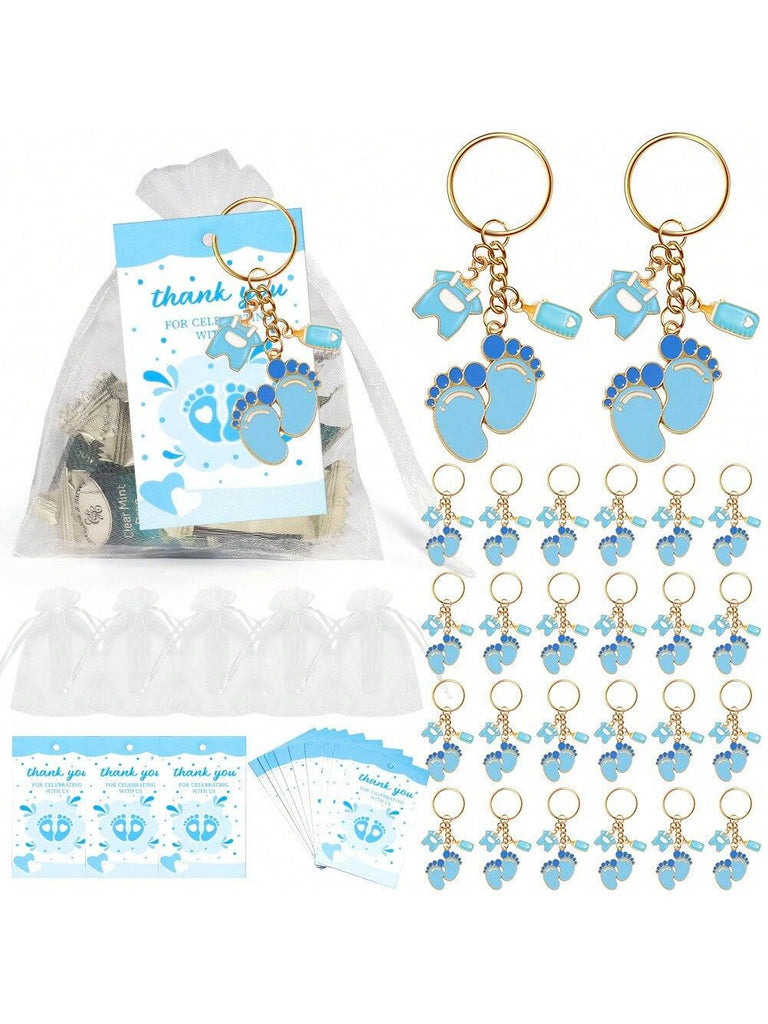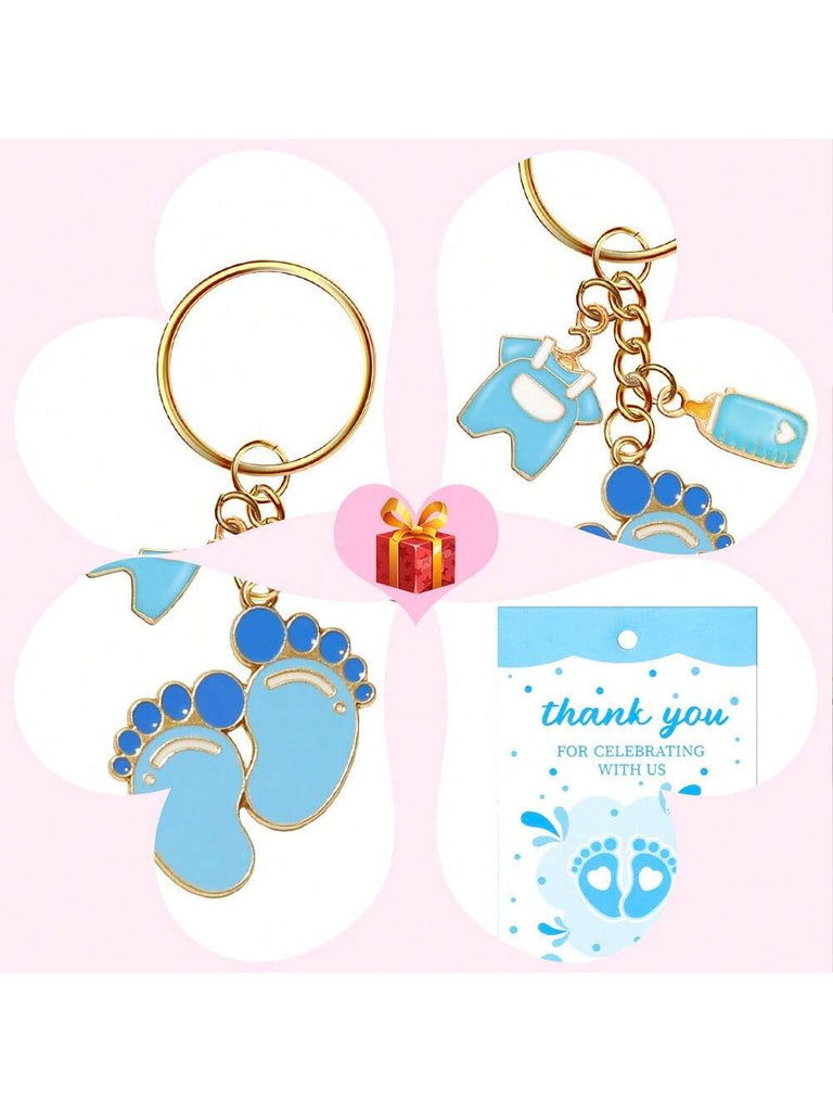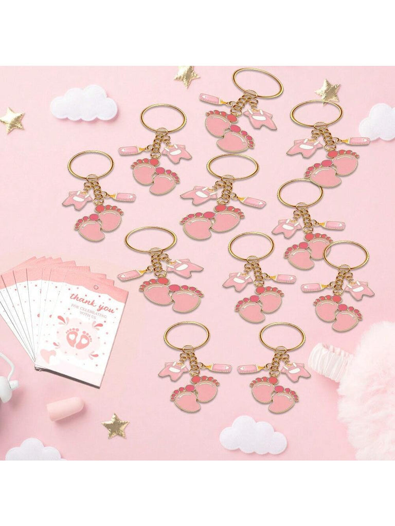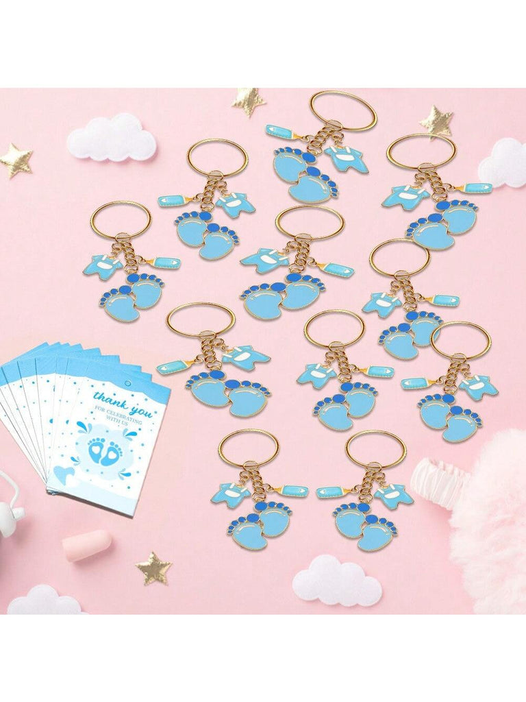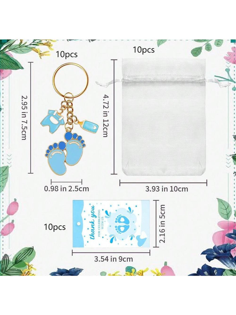 10 Sets/30pcs, Baby Christening Set Pink Or Blue Printed Keychain With Hanger