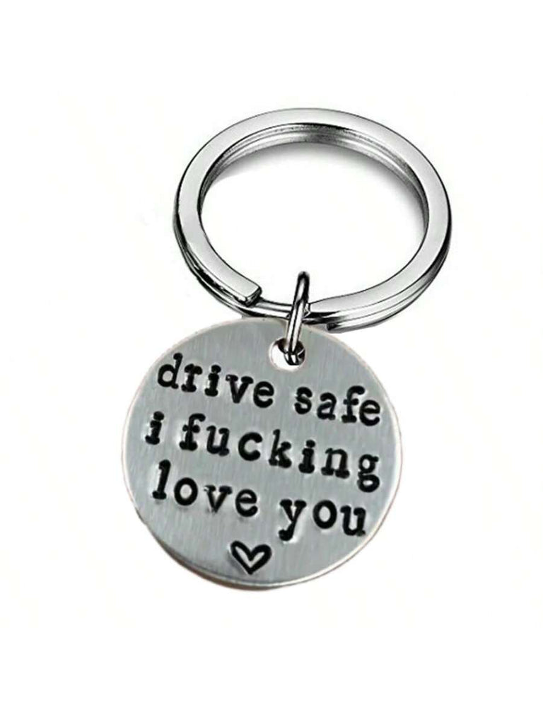 1pc Men Keychain Stainless Steel Laser Engraving Drive Safe I Love You Keychain Cute Valentines Day Gift For Couples Gift For Husband Boyfriend