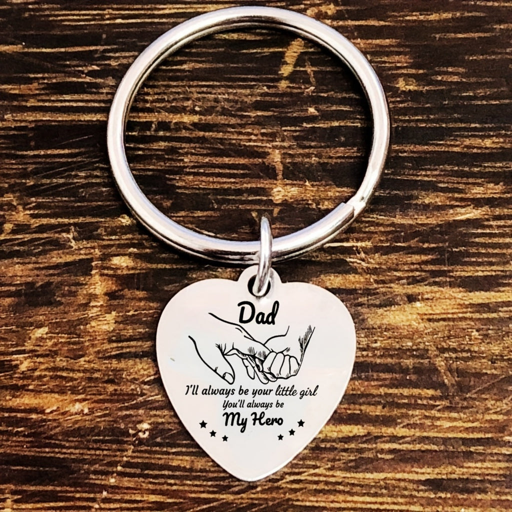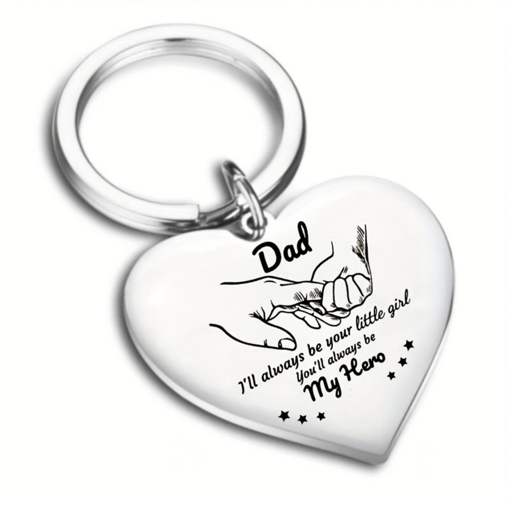 1pc Simple Stainless Steel Heart-Shaped Keychain With " Dad You'll Always Be My Hero " Engraved, Perfect For Father's Day, Birthday & Thanksgiving Gifts
