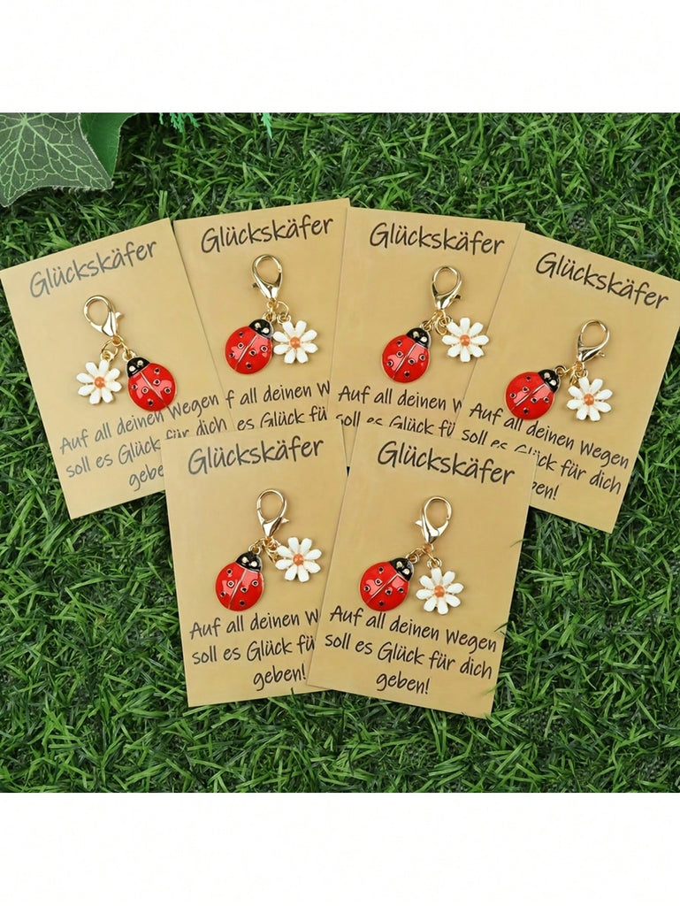 5/6pcs, Lucky Ladybug & Daisy Keychain Set