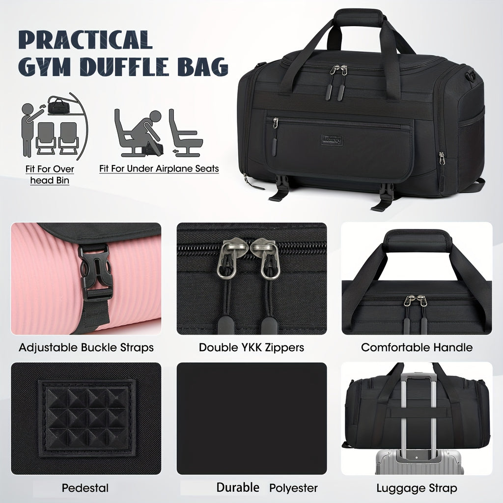 IGOLUMON 55L/40L Lightweight Gym Duffel Bag with Shoe Compartment - Durable Polyester Sports Travel Bag for Men & Women, Black & Gray, Multiple Pockets, Adjustable Shoulder Straps, Ideal for Gym, Weekend Trips & Overnight Travel, Gym Bag, Secure Zipper C