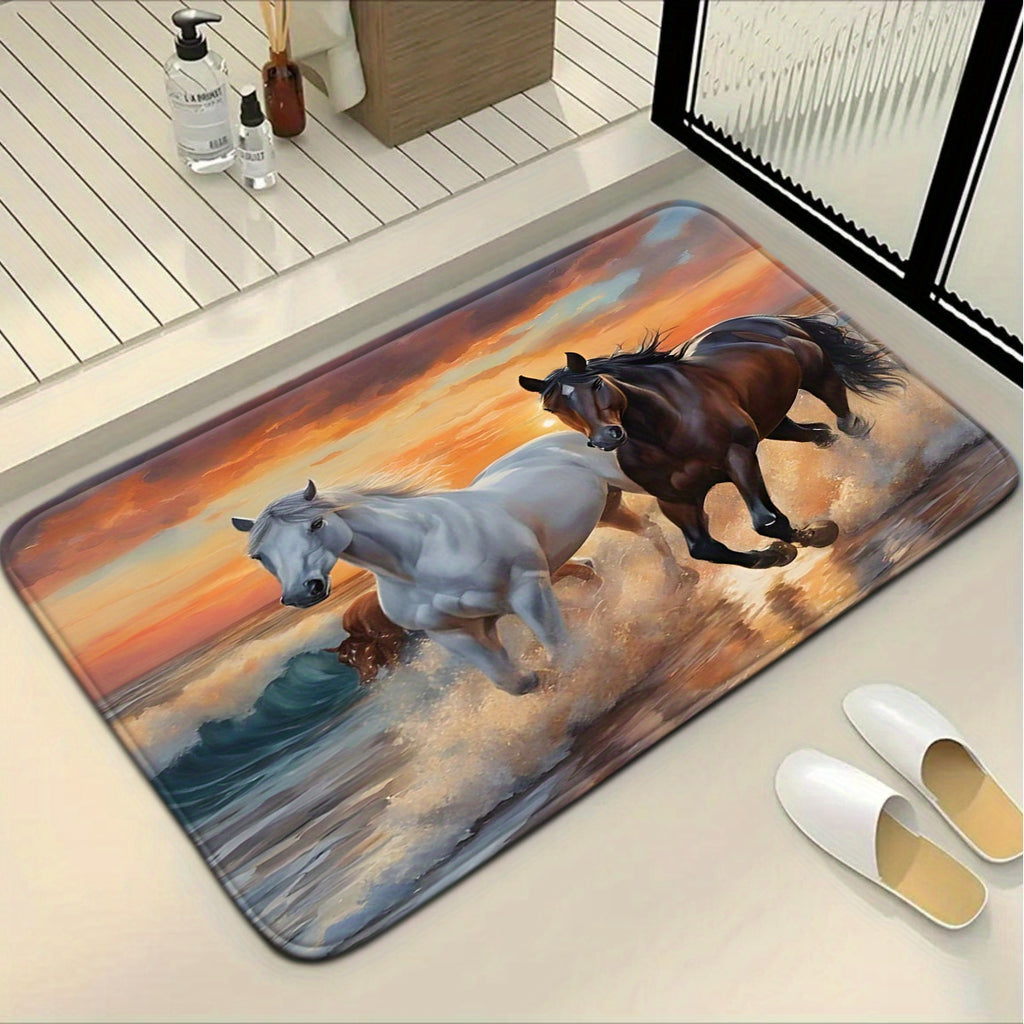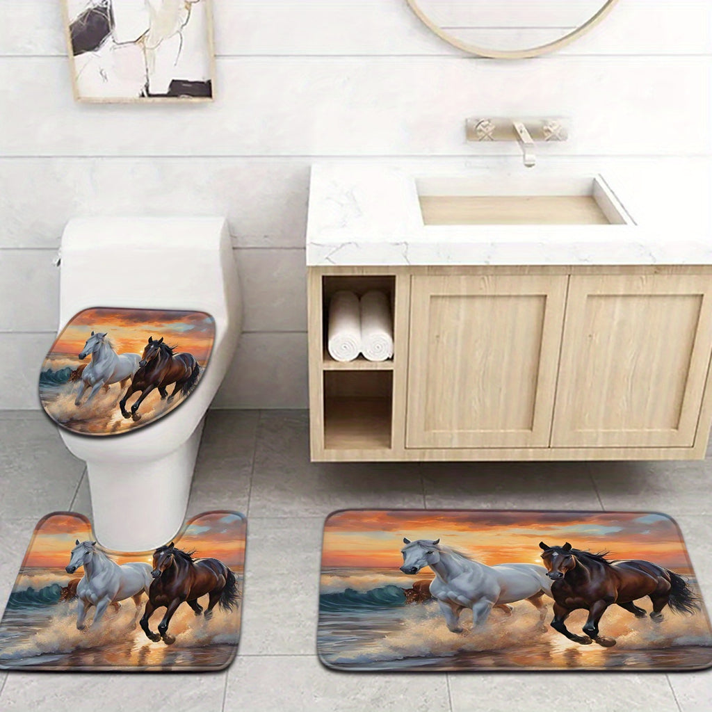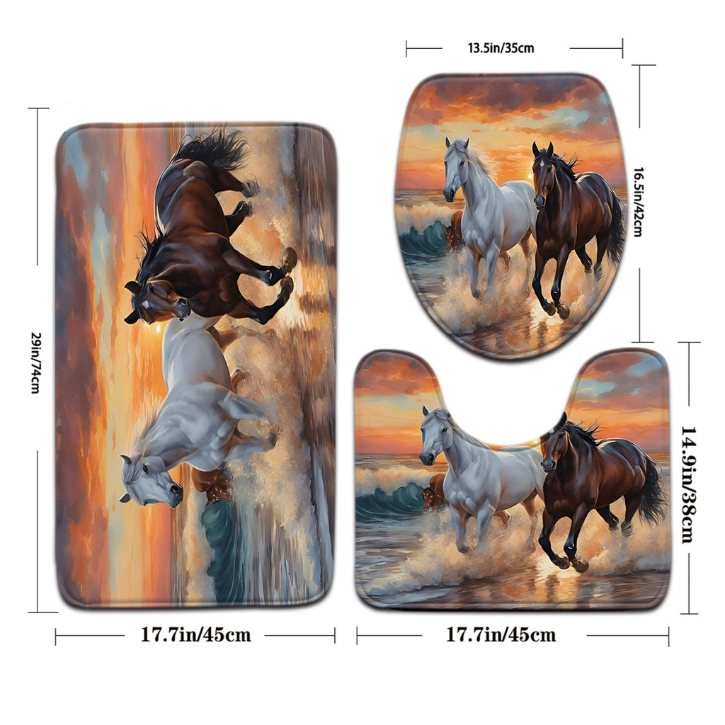 Sunset Horse Running Pattern Bathroom Mat Set