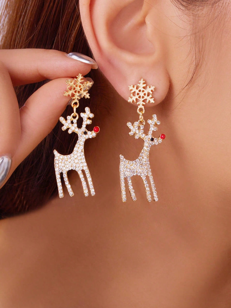 1 Pair Unique Christmas Reindeer & Snowflake Rhinestone Dangle Earrings
