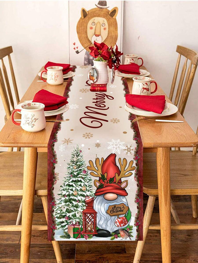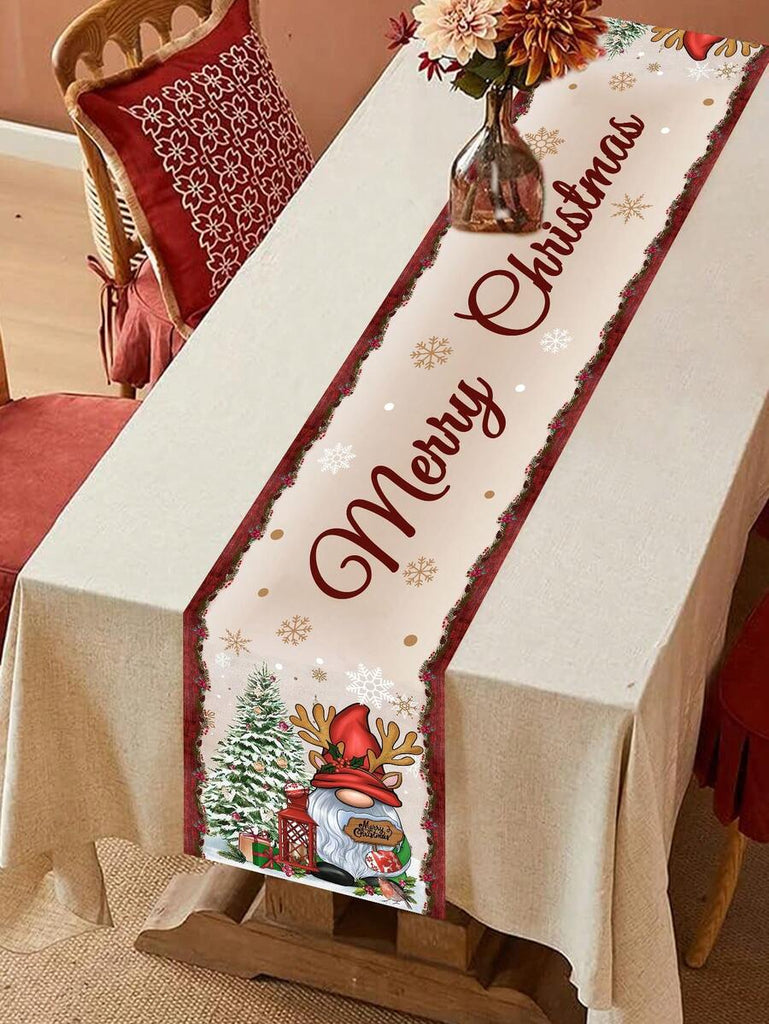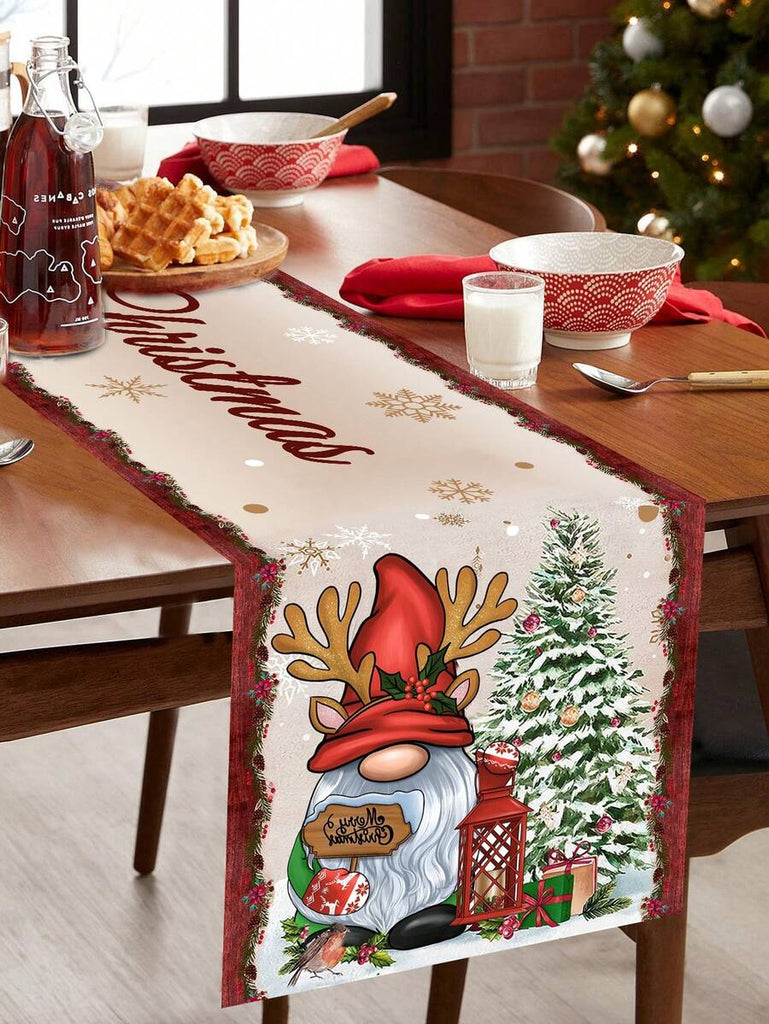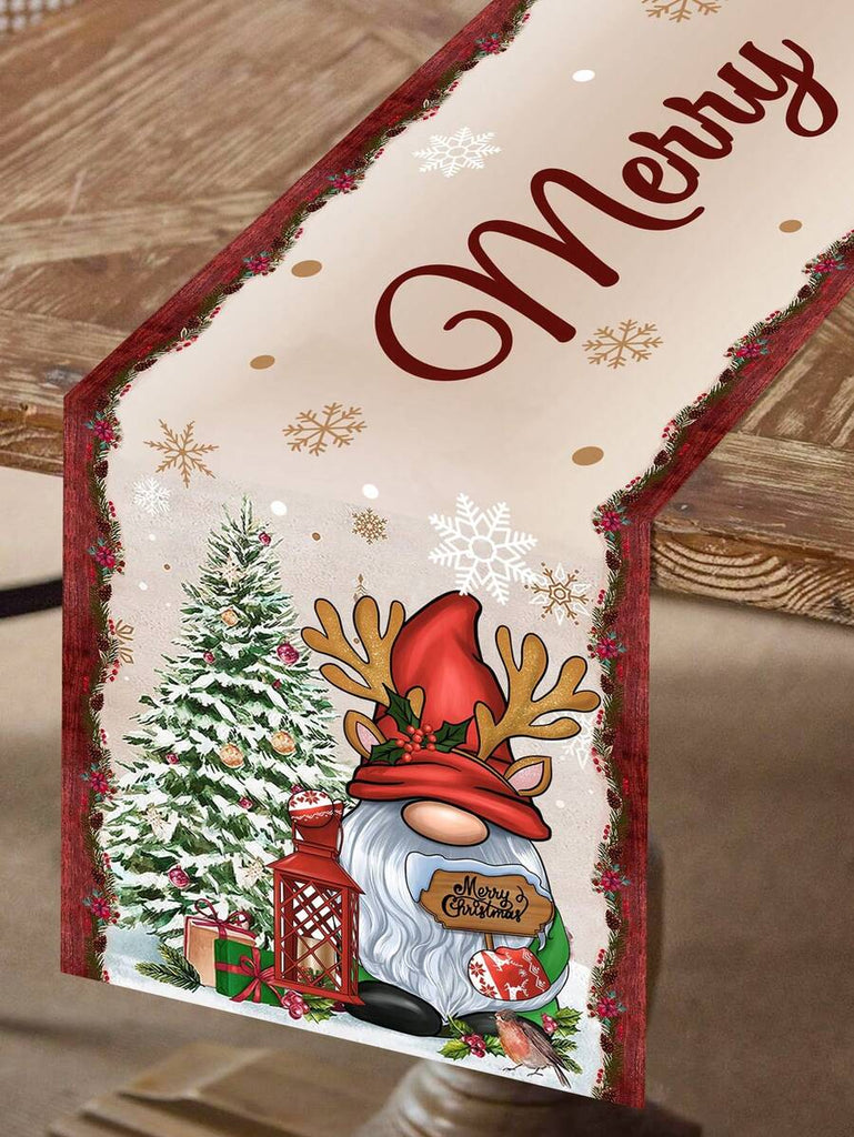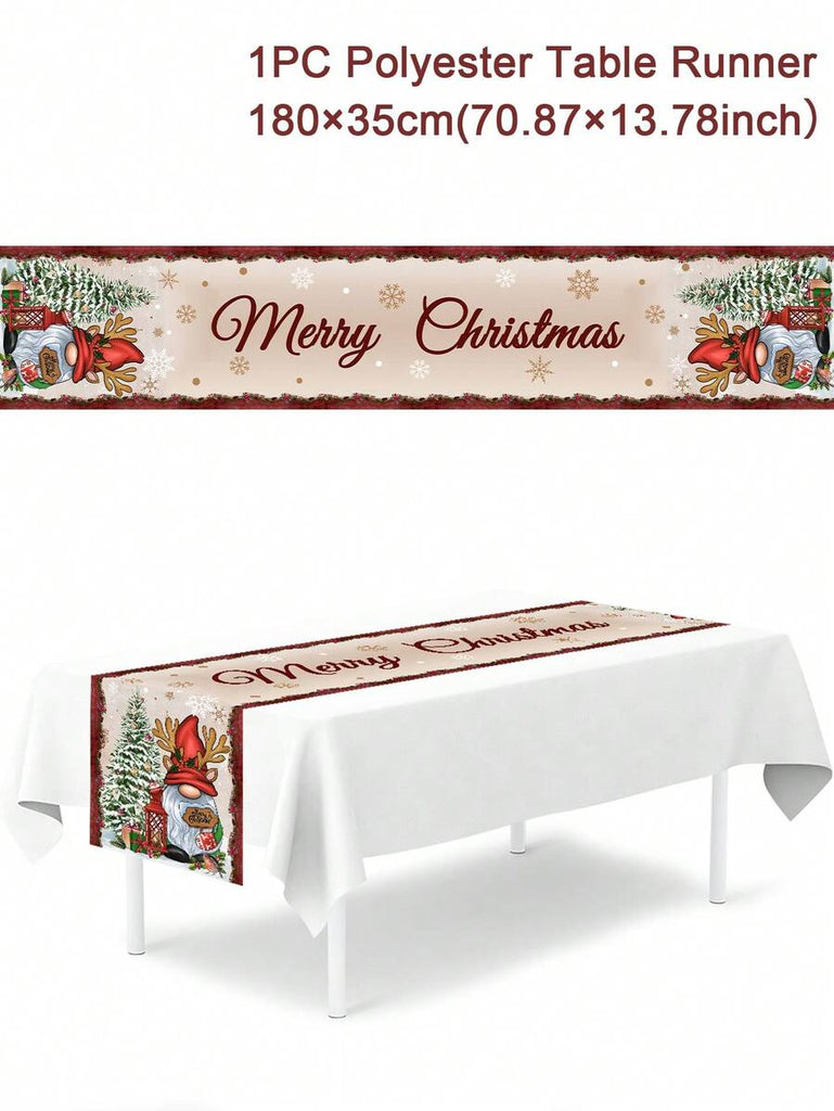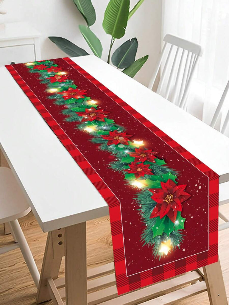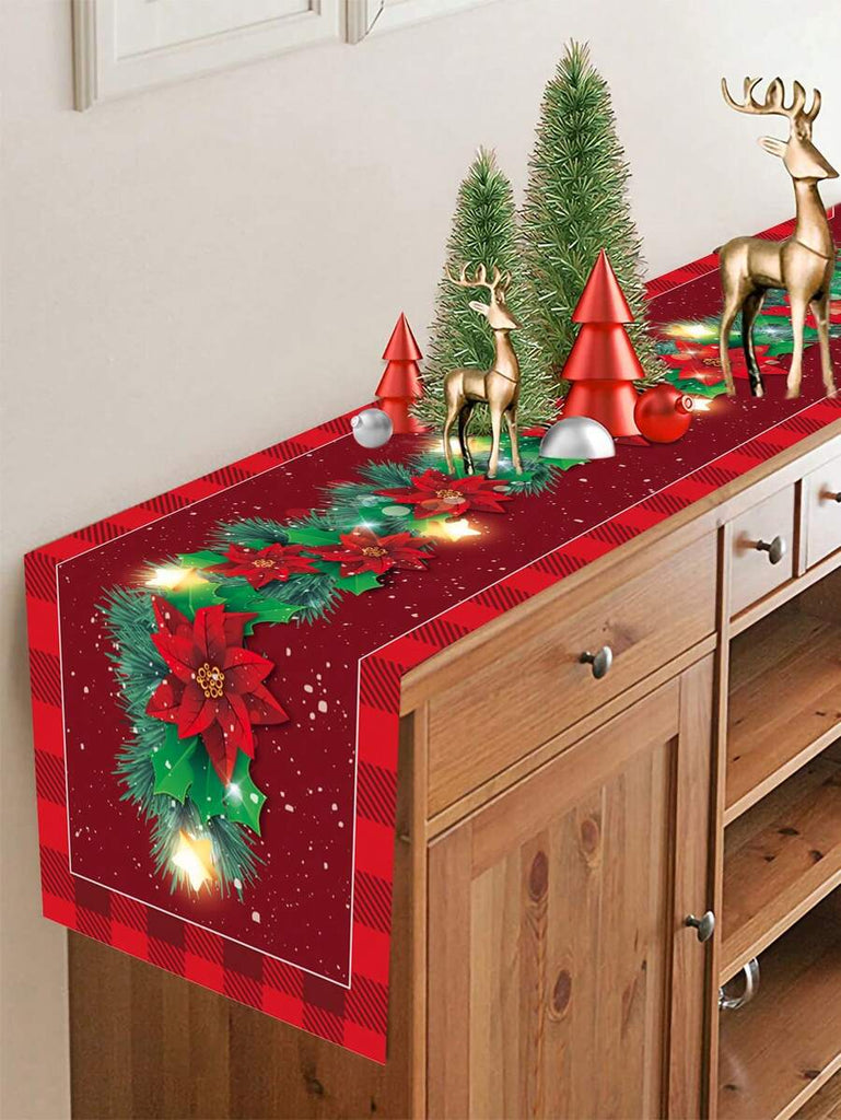 1Pc Christmas Polyester Table Runner, Red Flower Pine Tree Branch Snowflake Pattern Table Cloth Table Cover, Merry Christmas Table Runner, Christmas Atmospheric Decoration Supplies, Holiday Desktop Decoration, Fireplace Table Centerpiece, Xmas Party Decor