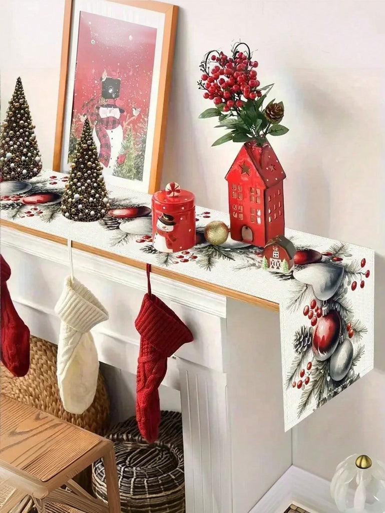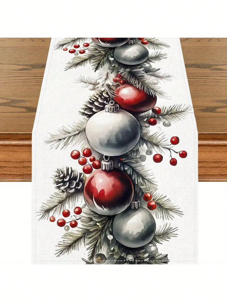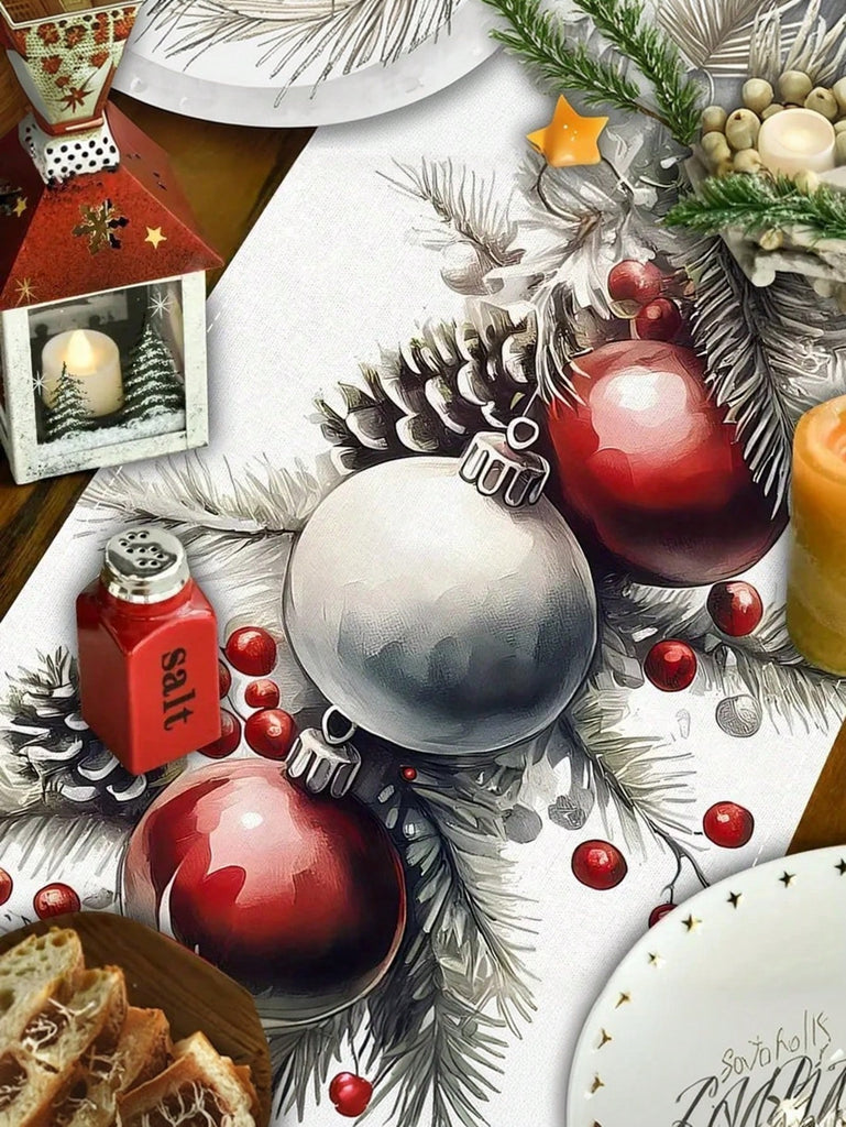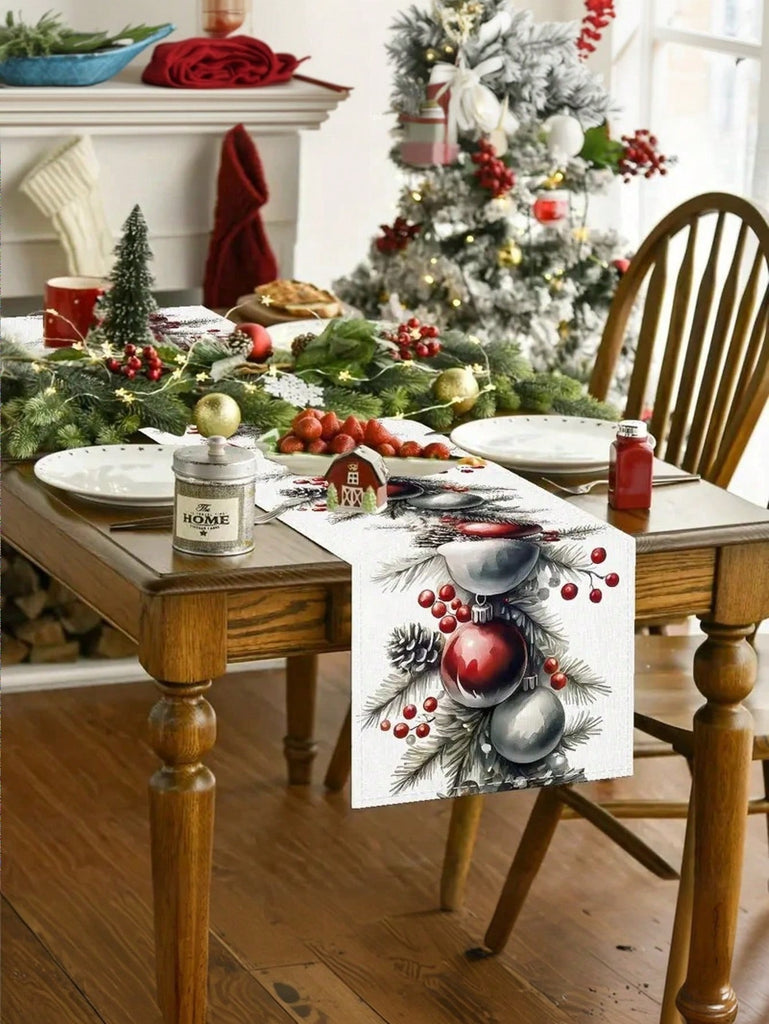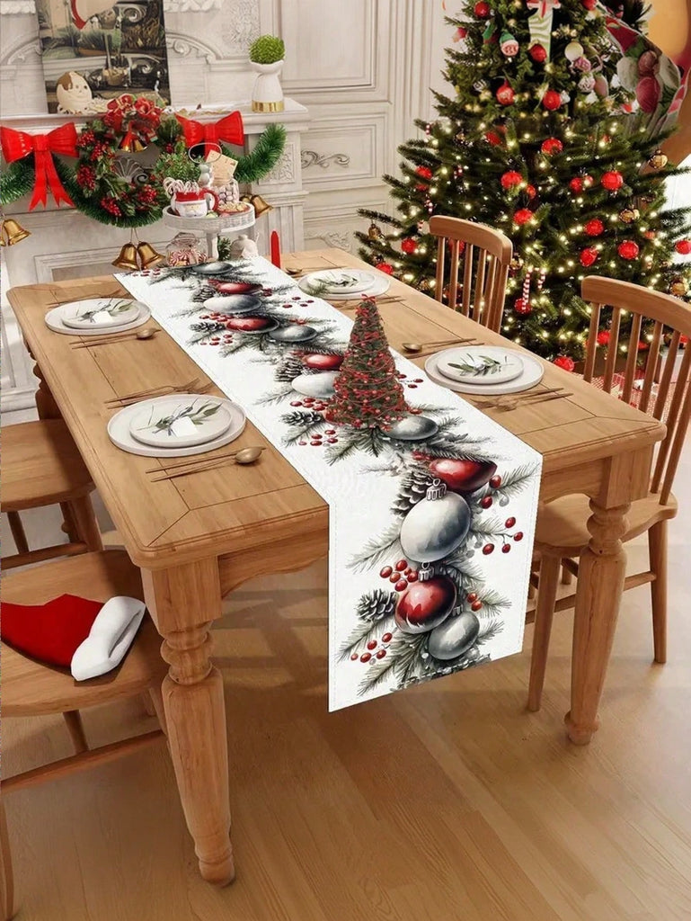 1pc Christmas Table Runner – Holiday Table Cover With Christmas Ball Pattern - Machine-Made, Ideal Gift For Home Decoration And Festive Atmosphere