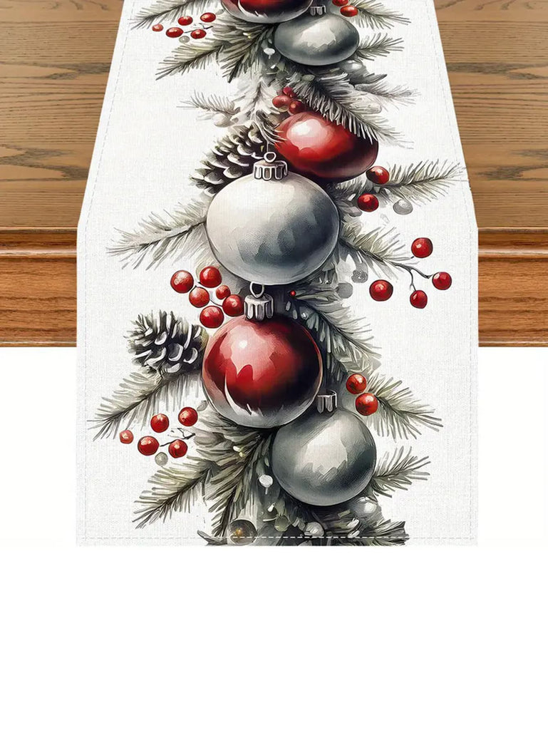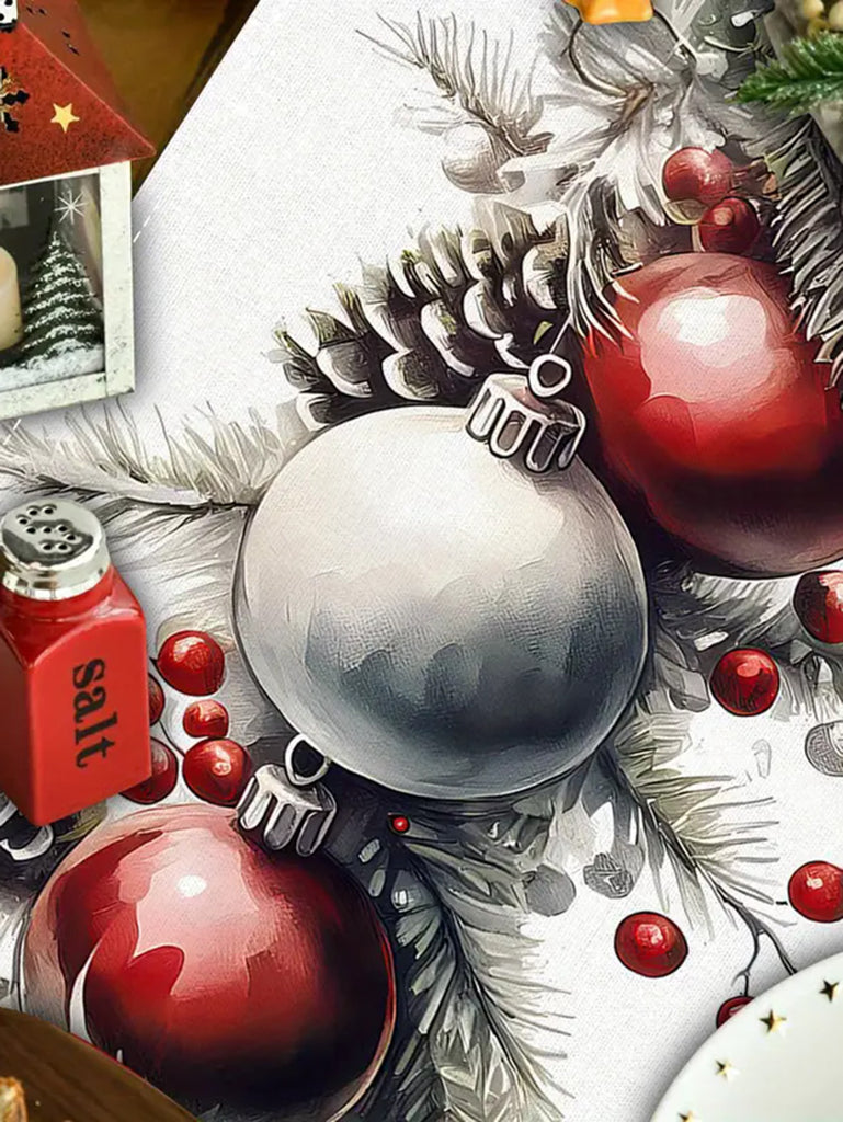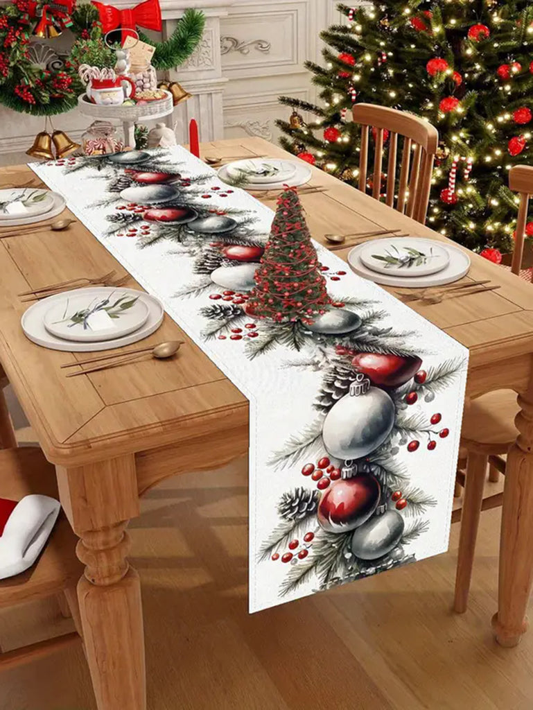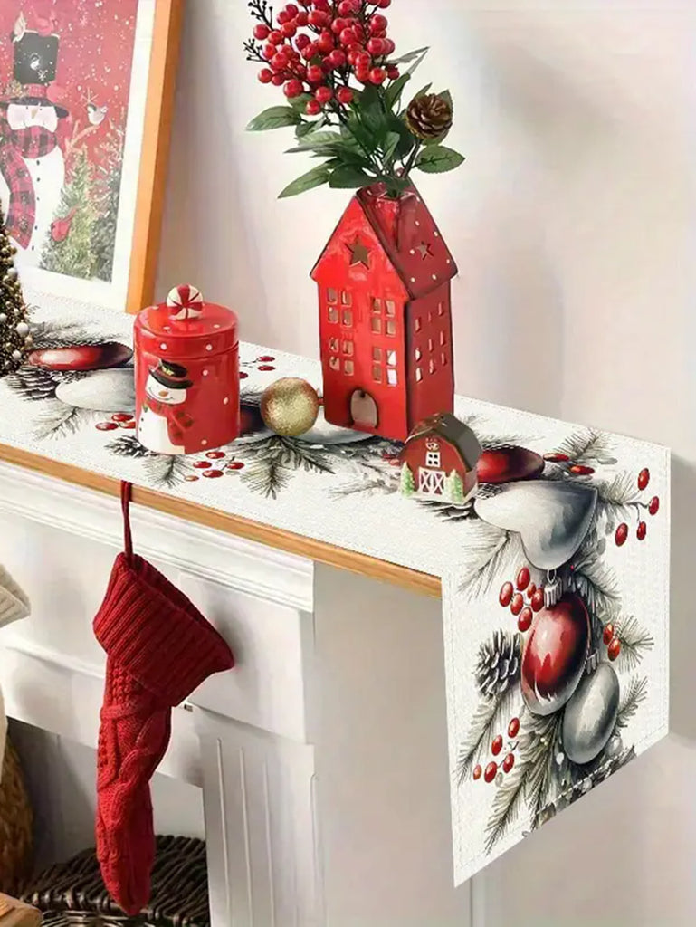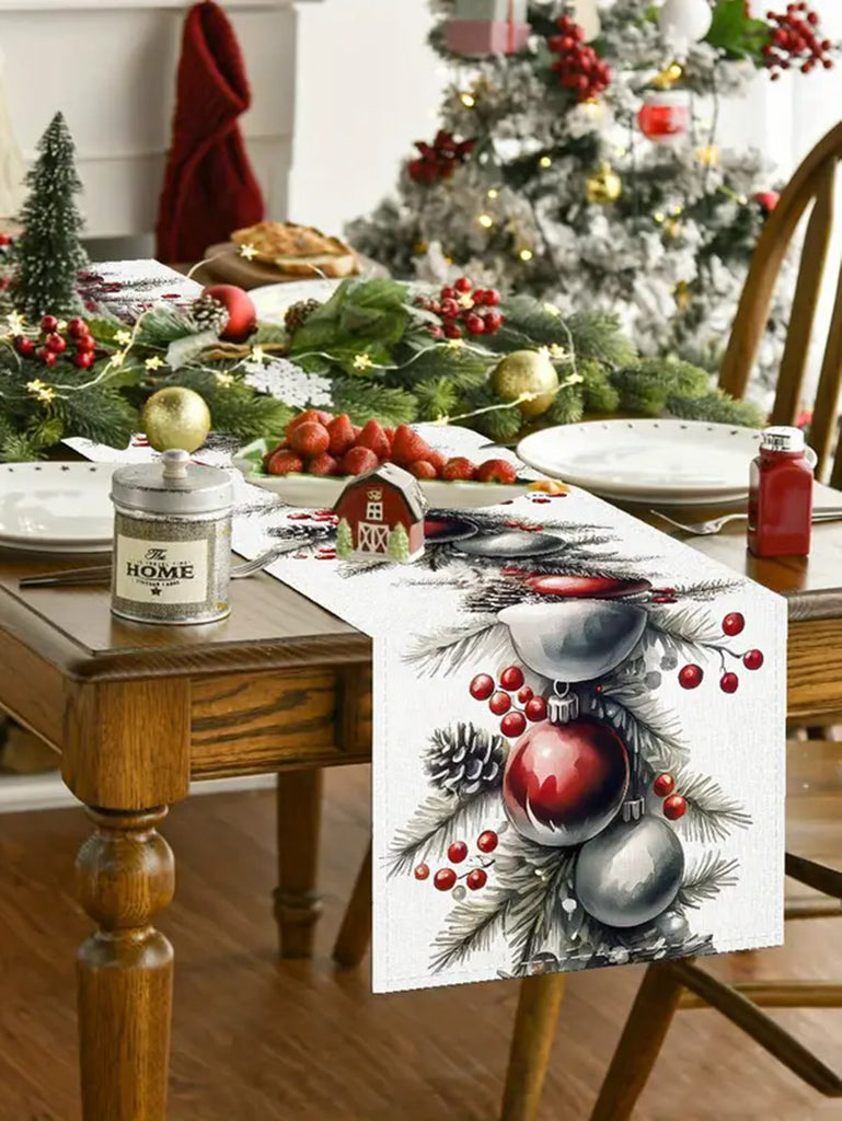 1pc Festive Merry Christmas Table Runner Christmas Decoration Table Runner, 13x35.4/47.2/63/72/78.7 Inches Available -Buffalo Plaid And Christmas Ball Pattern, Polyester Holiday Table Cover For Home Decoration And Festive Atmosphere, Ideal Gift, Christma