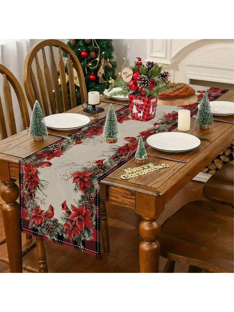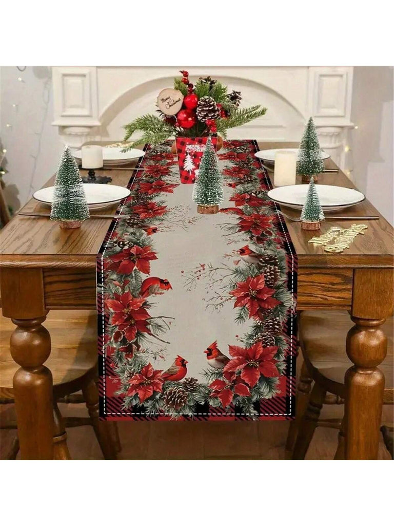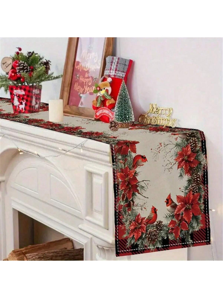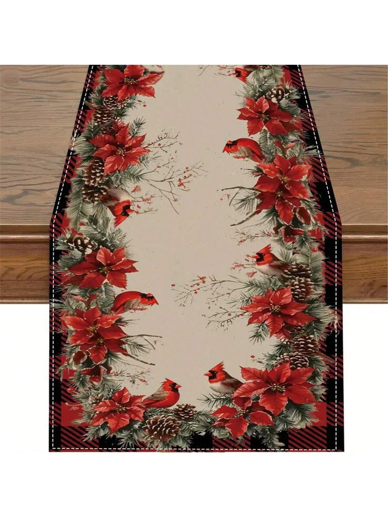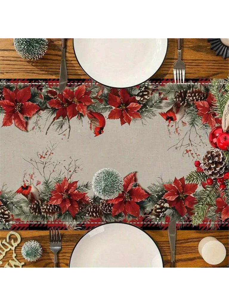 1pc Gingerbread & Red Vase Christmas Table Runner - Polyester Linen-Like, Rectangular Holiday Kitchen Decor, Suitable For Family Gatherings