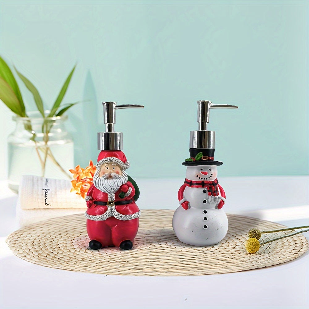 2pcs Festive Christmas Soap Dispenser Bottles - Santa & Snowman Design, Press-Top Resin Bathroom Decor, Ideal for Home & Hotel Use, Bathroom Decor And Accessories