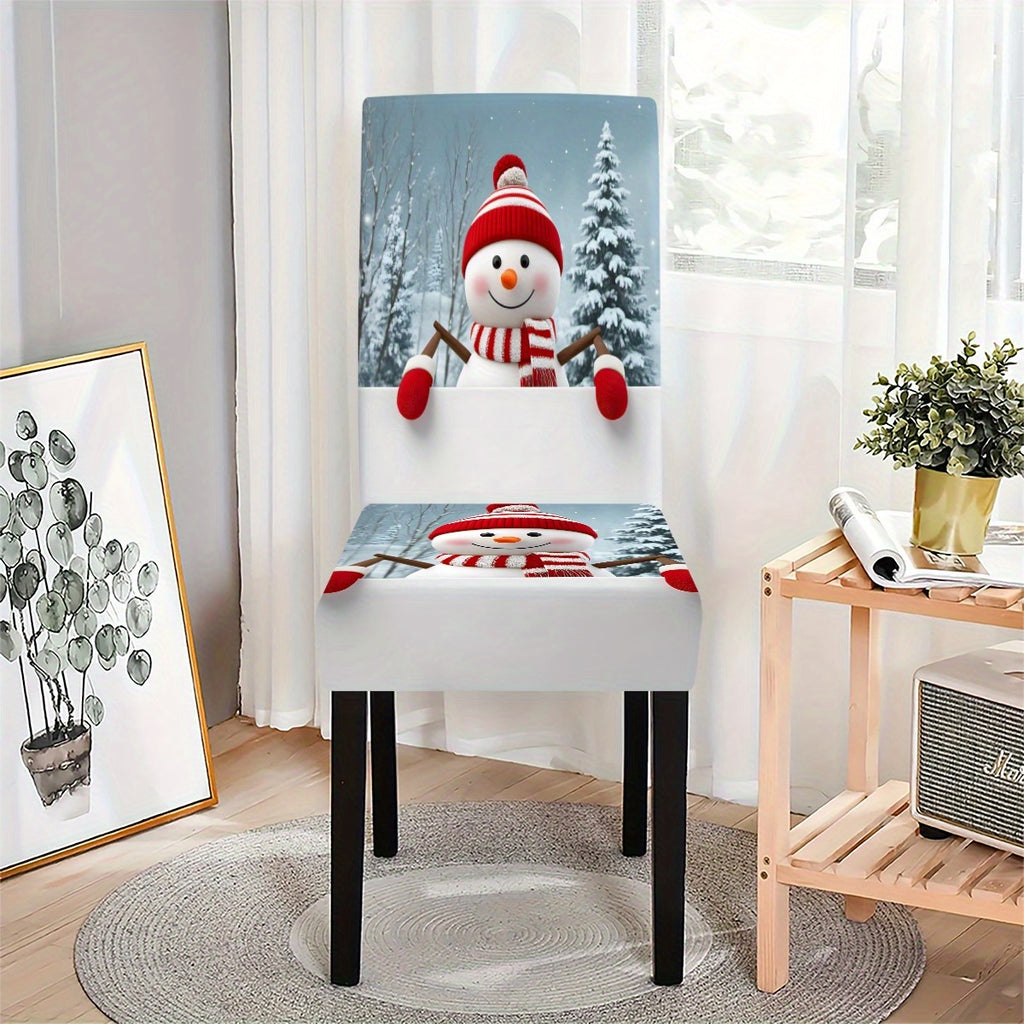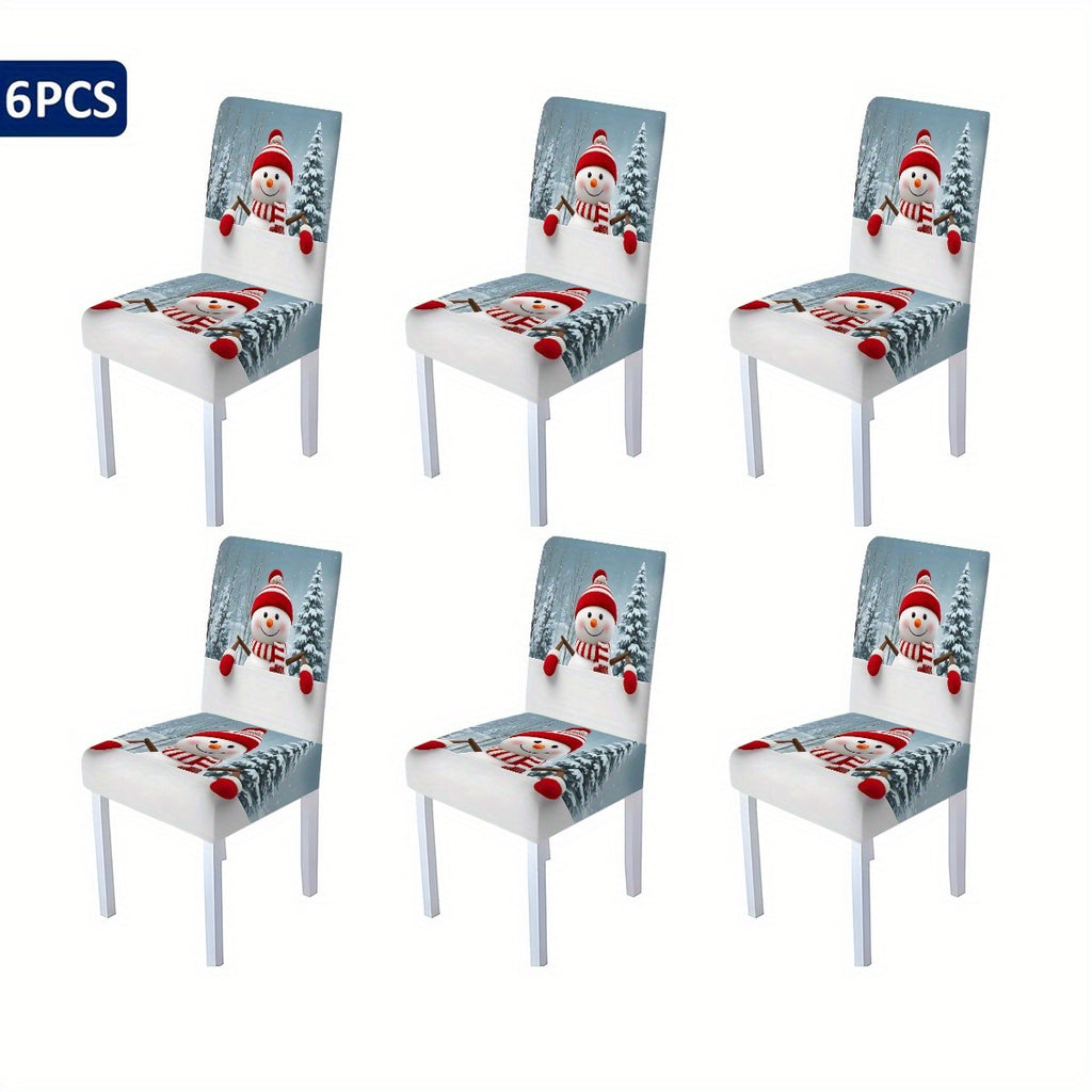 4pcs/6pcs Christmas Snowman Pattern Chair Covers, All-Season Printed Slipcover with Elastic Anti-Slipping Design for Kitchen Dining Chairs in Hotels & Restaurants Banquets – Washable Table and Seat Cover Suitable Home Living Room, Christmas Chair Cover,