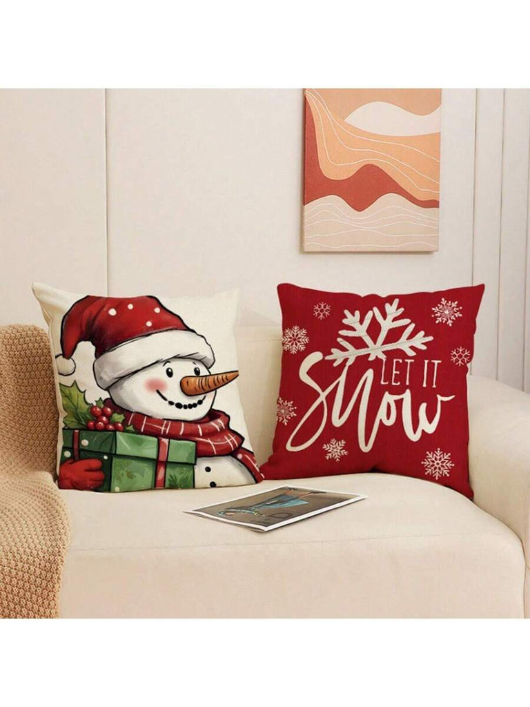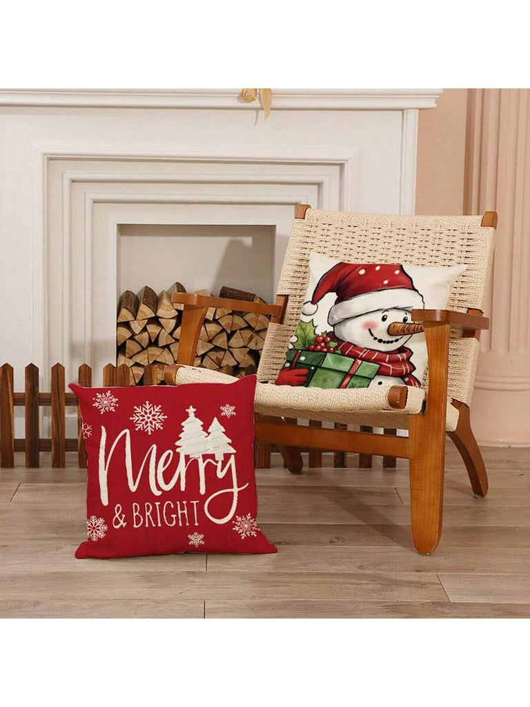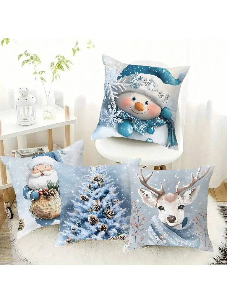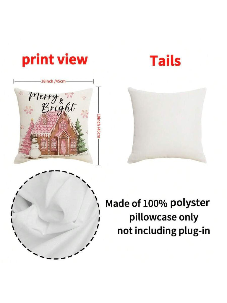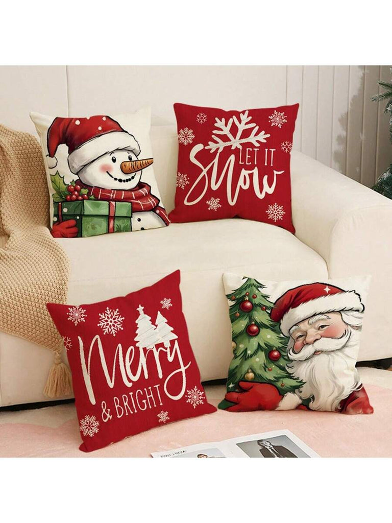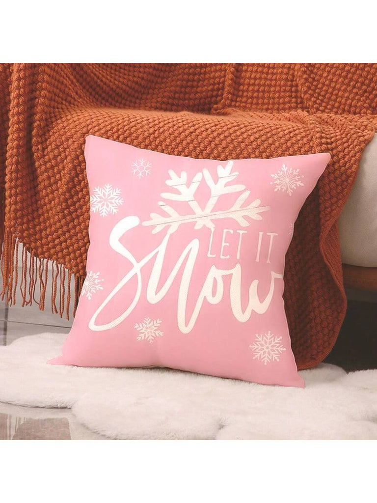 4pcs Christmas Theme Pillow Covers, Pink Letter Print Snowman & Reindeer Pattern, Farmhouse Style Polyester Fabric Zippered Single-Sided Print Cushion Covers, Pillow Inserts Not Included, Winter, Christmas Holiday Home Decor, Suitable For Sofa, Bed, Chair