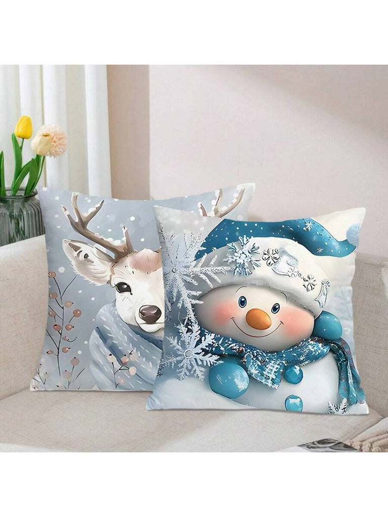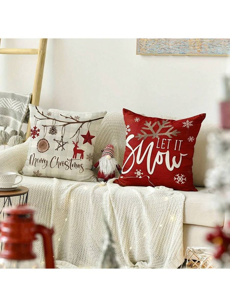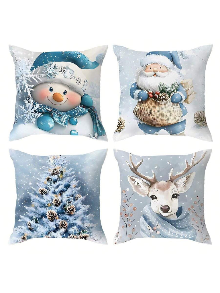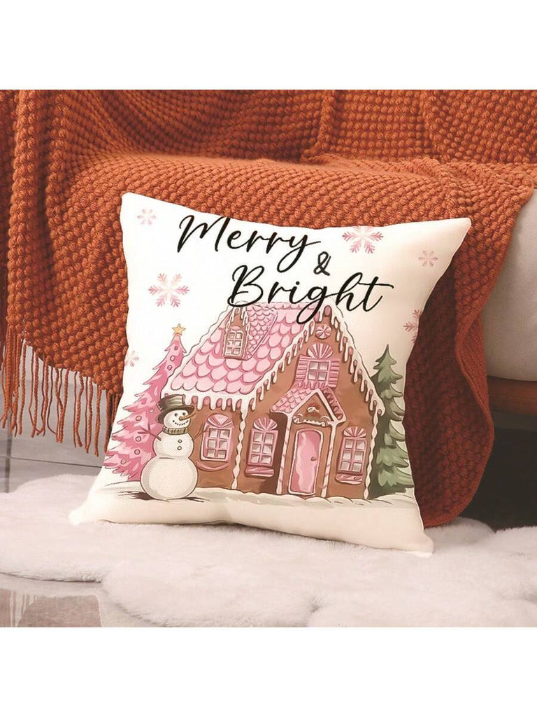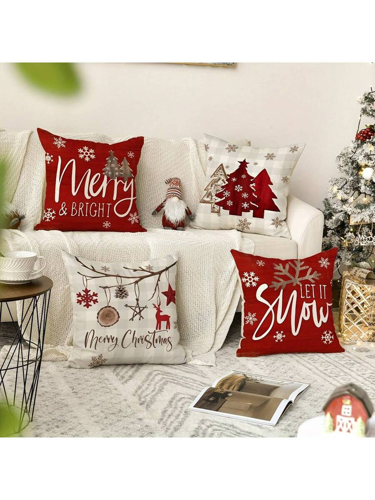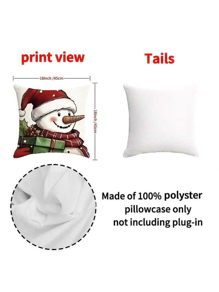 4pcs Christmas Theme Pillow Covers, Pink Letter Print Snowman & Reindeer Pattern, Farmhouse Style Polyester Fabric Zippered Single-Sided Print Cushion Covers, Pillow Inserts Not Included, Winter, Christmas Holiday Home Decor, Suitable For Sofa, Bed, Chair