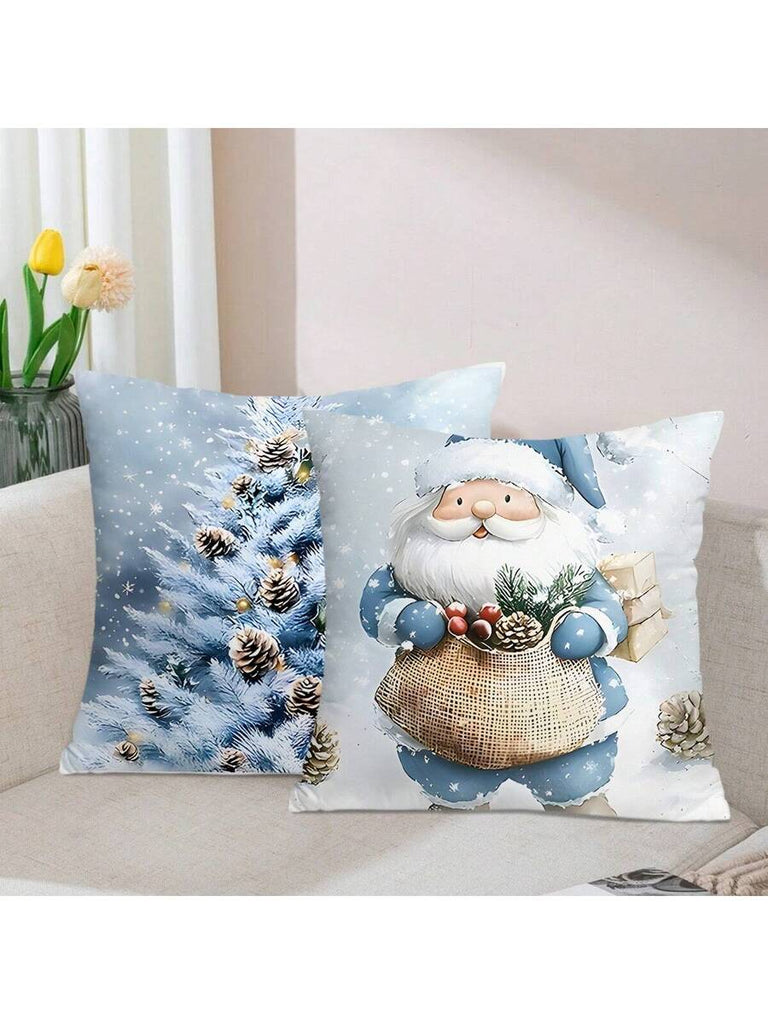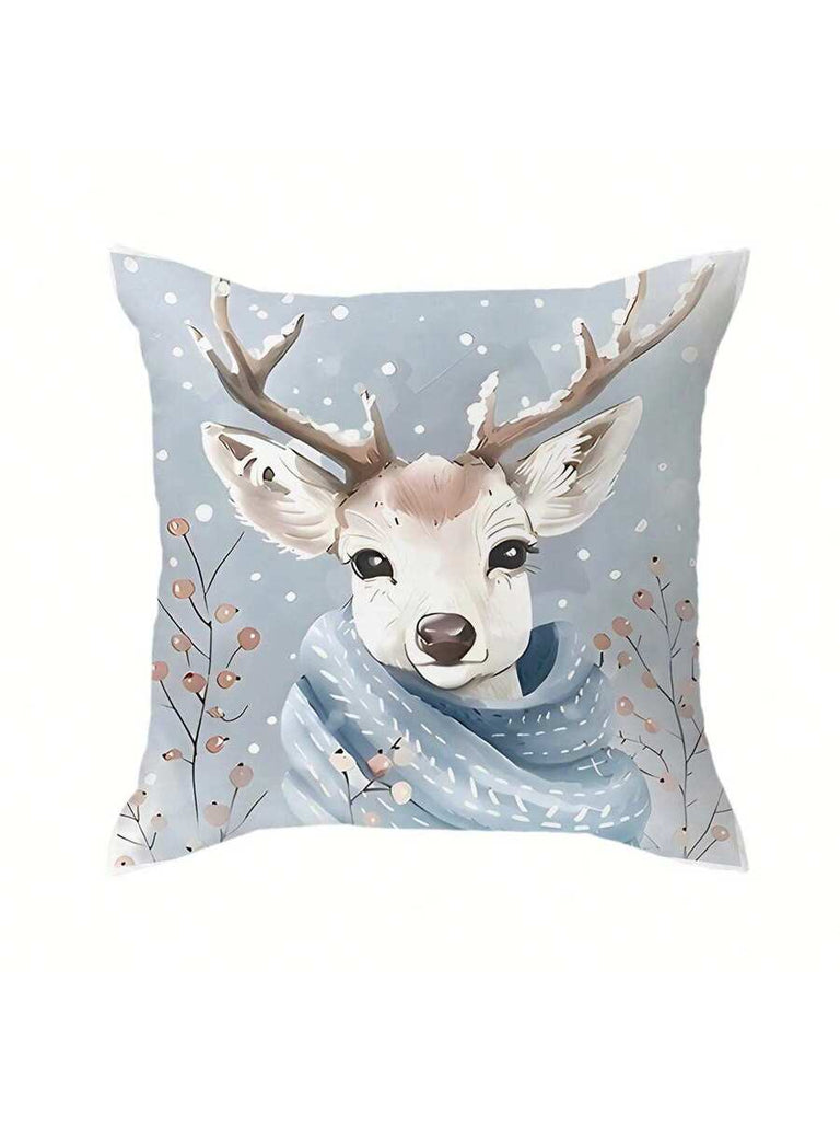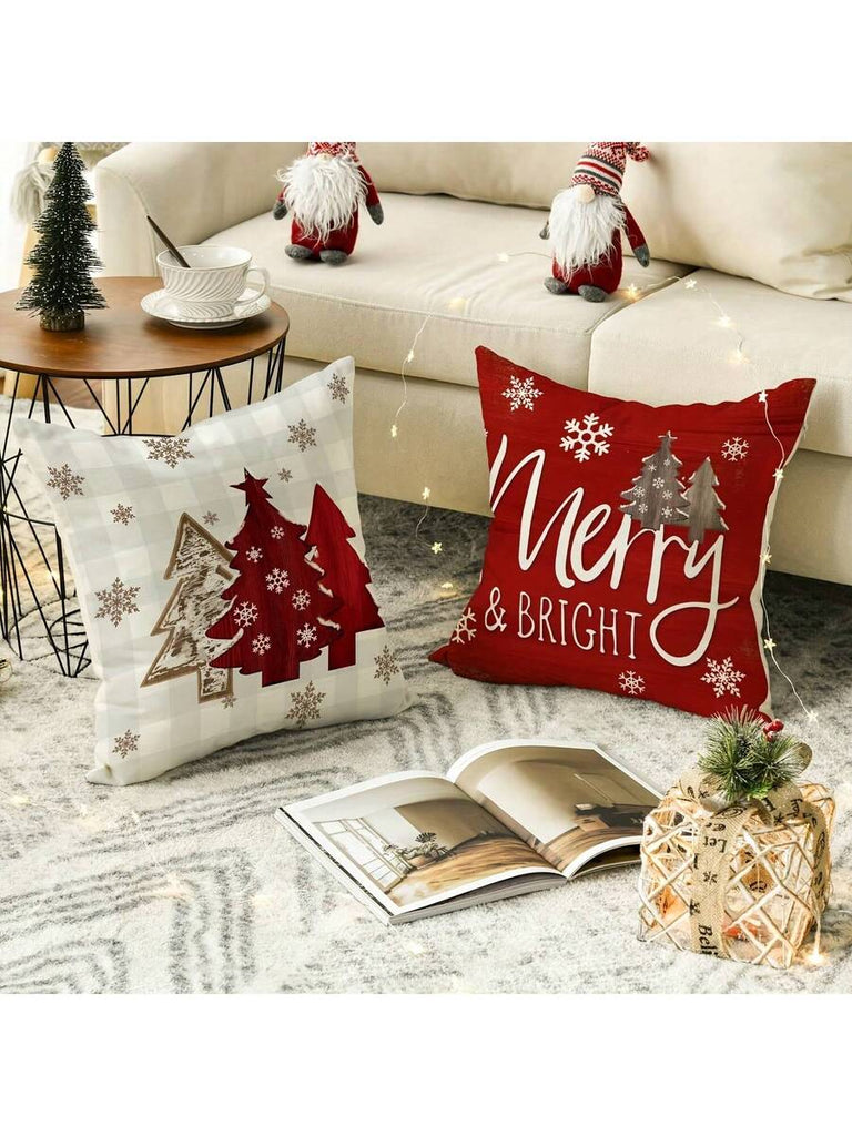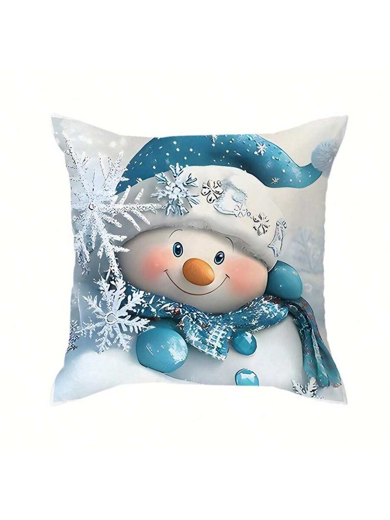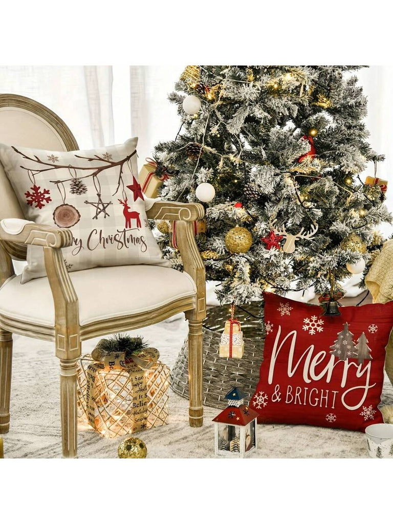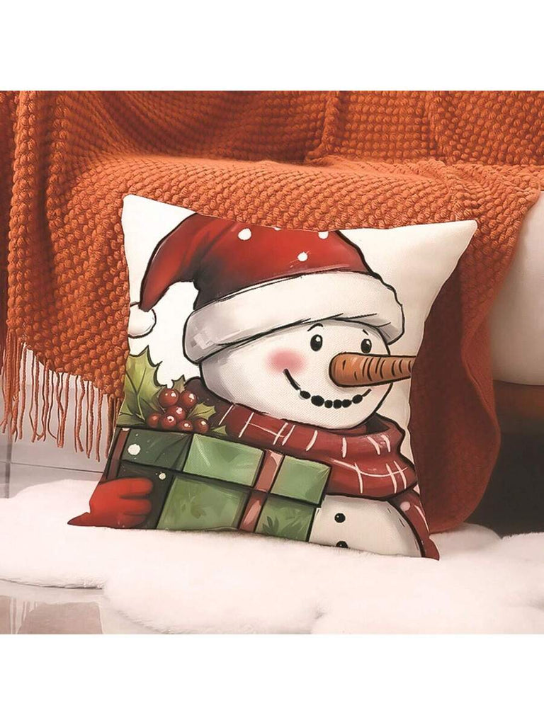 4pcs Christmas Theme Pillow Covers, Pink Letter Print Snowman & Reindeer Pattern, Farmhouse Style Polyester Fabric Zippered Single-Sided Print Cushion Covers, Pillow Inserts Not Included, Winter, Christmas Holiday Home Decor, Suitable For Sofa, Bed, Chair