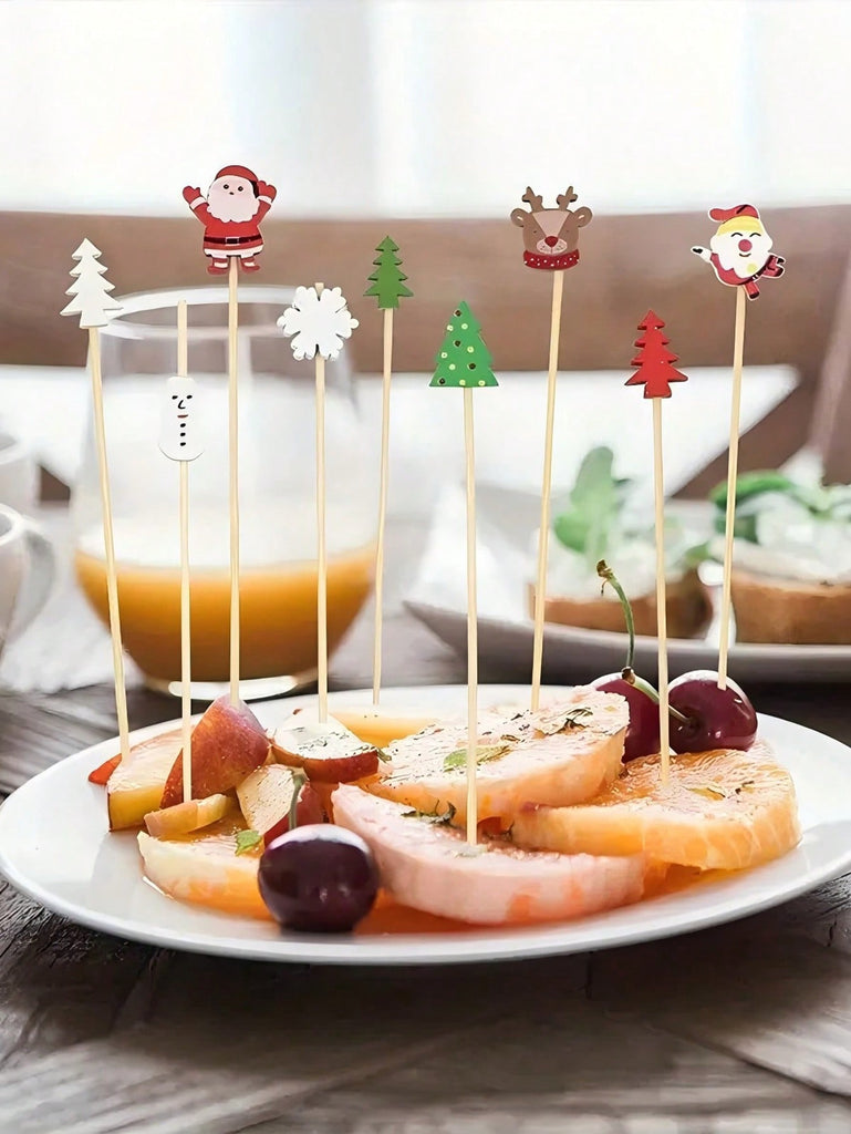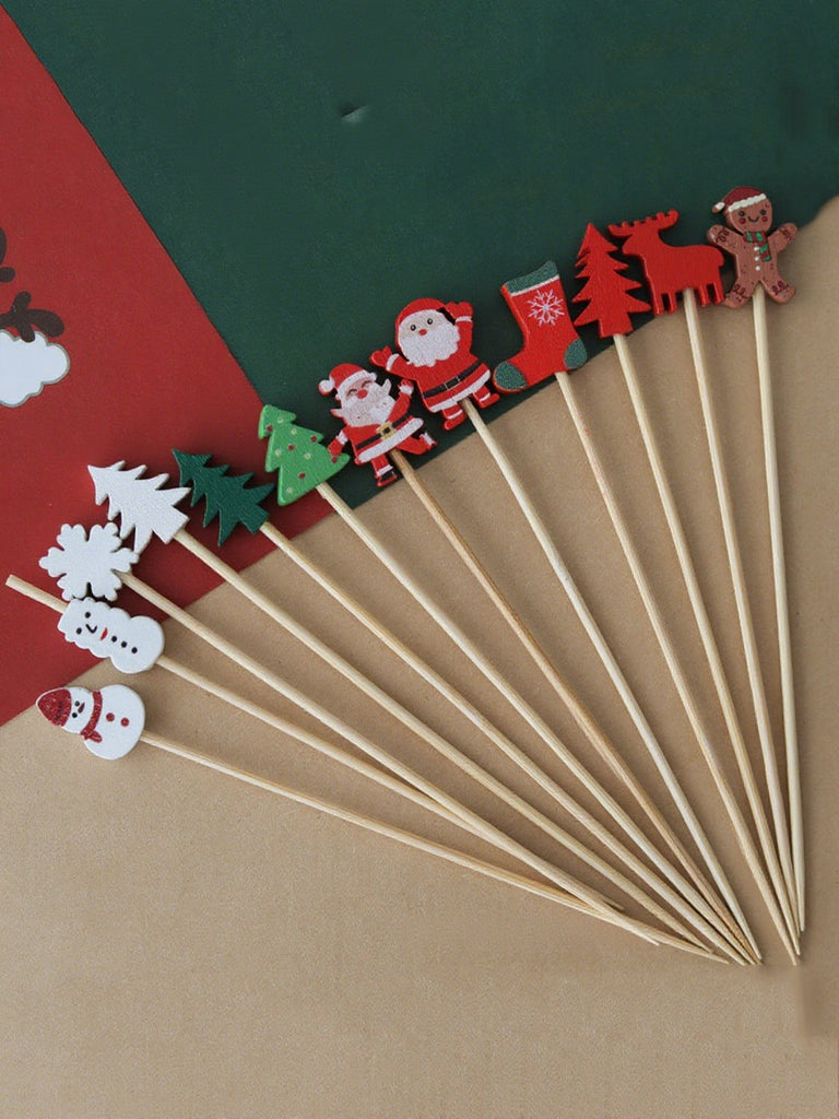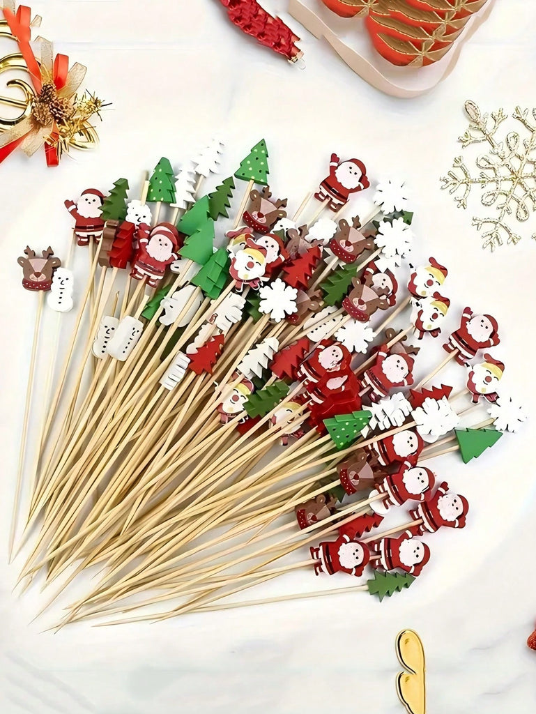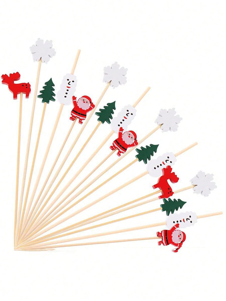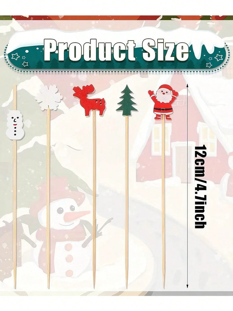 50/100 Pieces Of 12CM Christmas Wooden Toothpicks - Event And Party Supplies Tableware, Suitable For Holiday Drinks, Appetizers And Decorations, Including Patterns Of Wooden Sticks, Snowflakes, Snowmen, Reindeer, Etc. Christmas Party Supplies, Seasonal T
