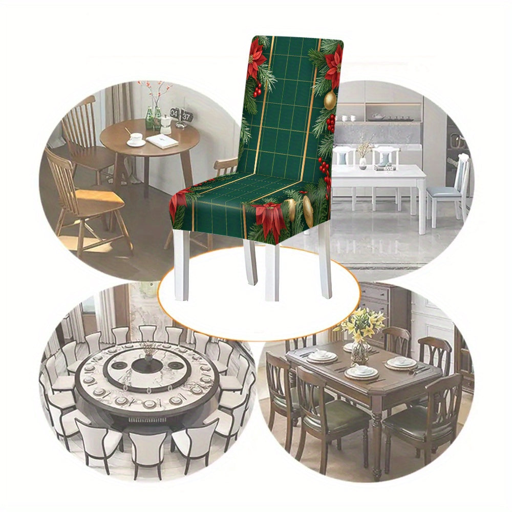 5pcs/7pcs Christmas Emerald Golden And Red Printed Tablecloth And Chair Cover Set, 5pcs (1 Tablecloth 4 Chair Covers), 7pcs (1 Tablecloth 6 Chair Covers), Fashionable And High-End, Easy to Wash And Reusable, Suitable for Daily Use in Home Restaurants