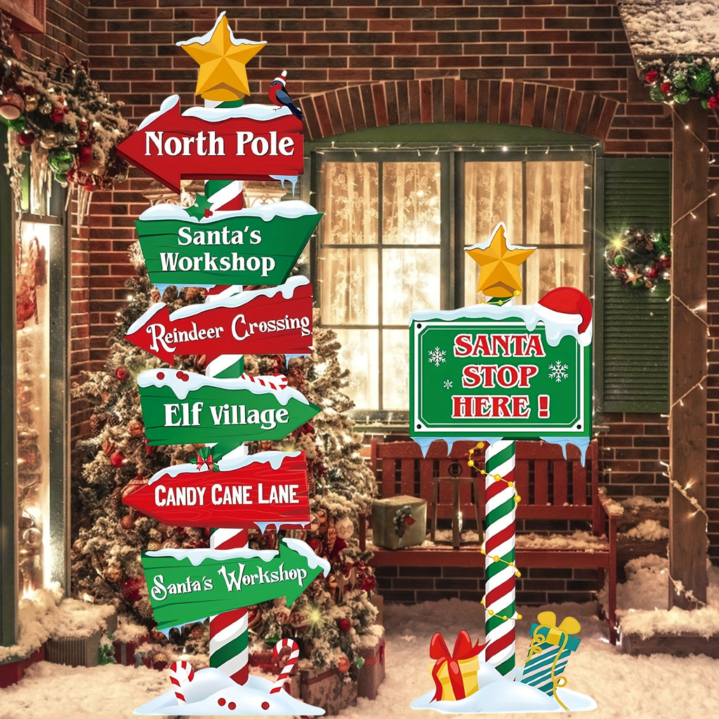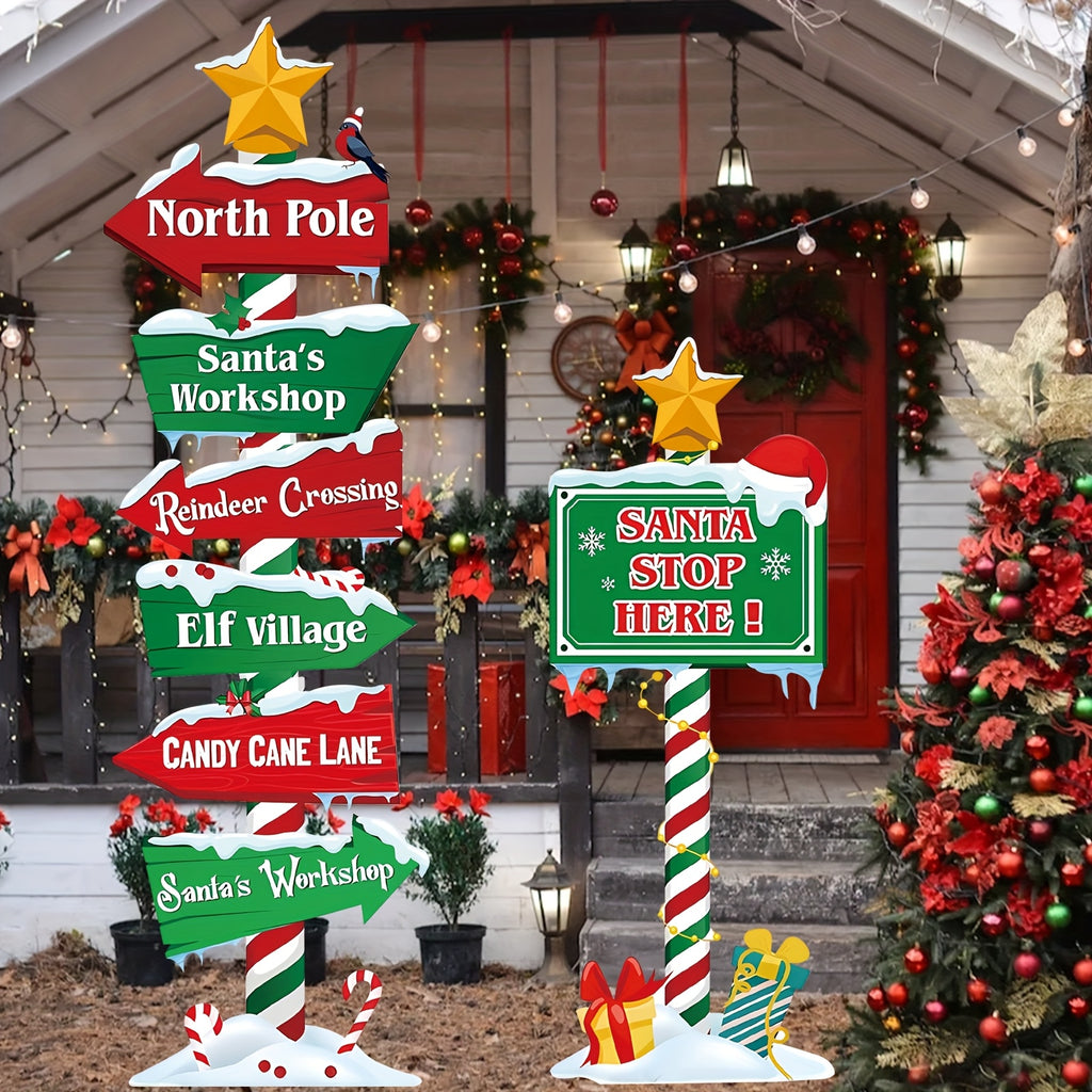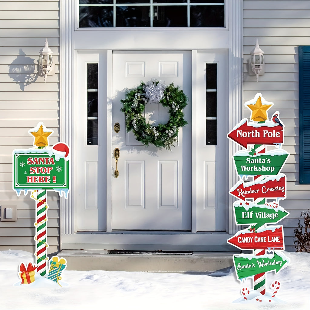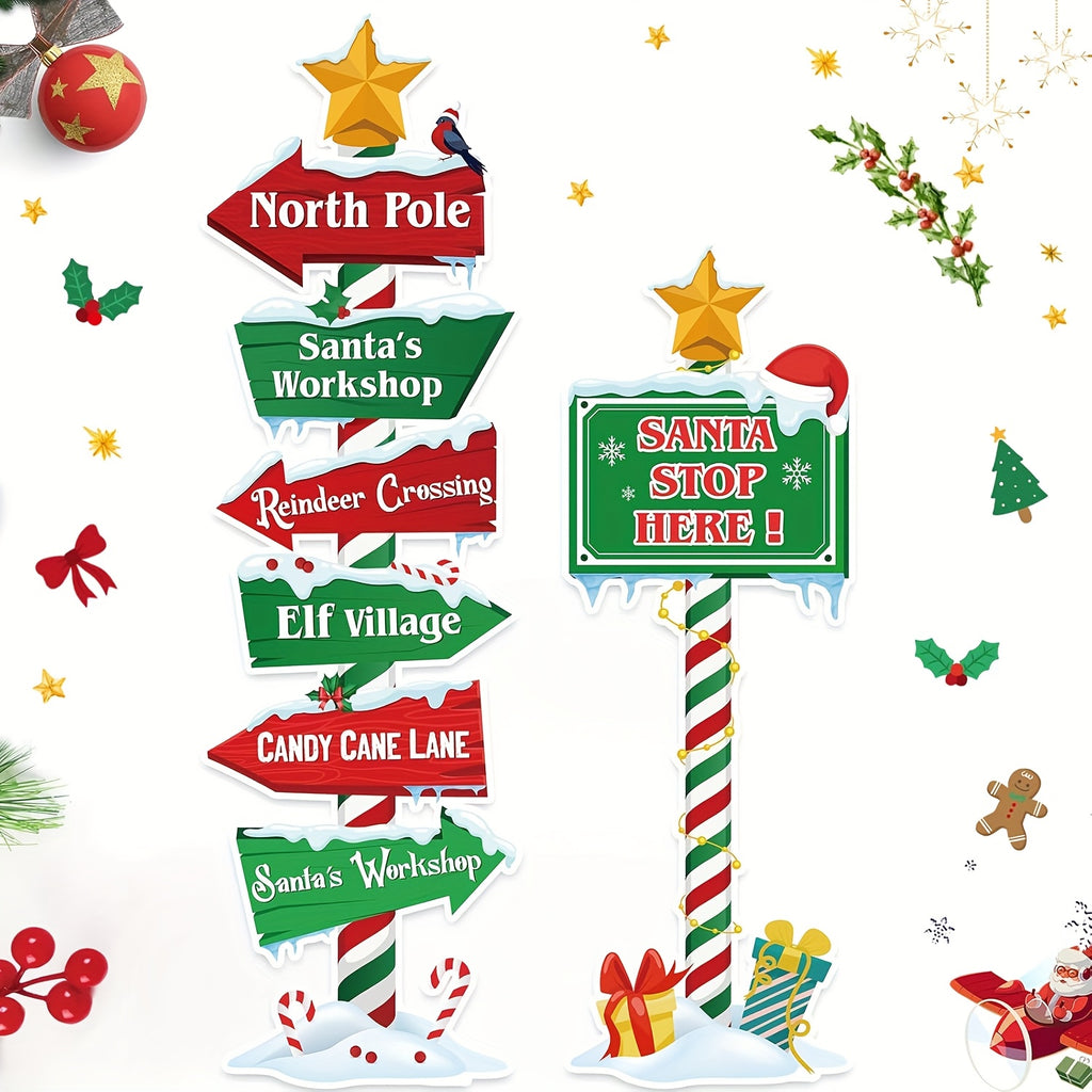 5pcs Christmas North Pole Yard Signs Christmas Party Welcome Sign
