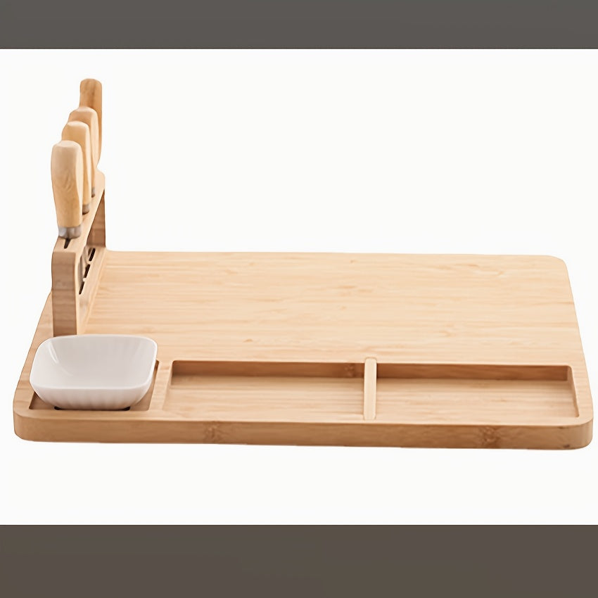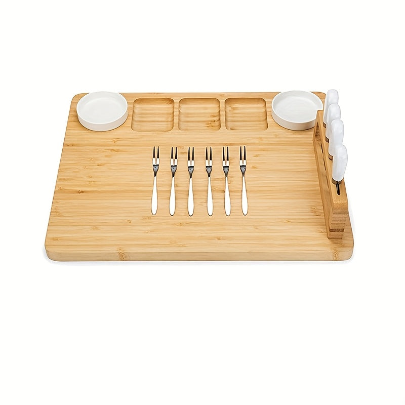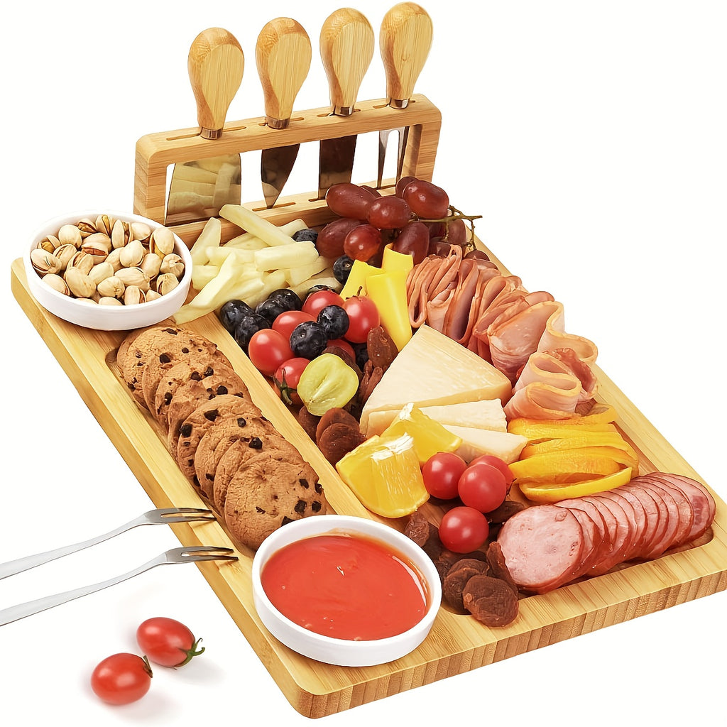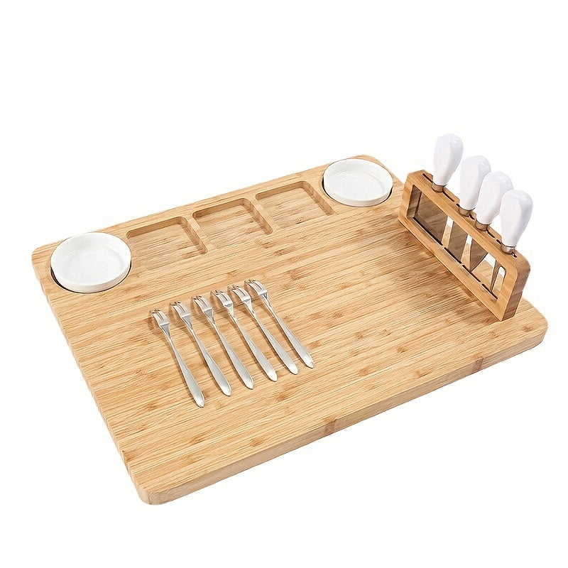 Bamboo Cheese Board Set, Bamboo Charcuterie Board Meat Platter and Knife Set with 2 Ceramic Bowls Mother'S Day Gift Easter Thanksgiving Christmas Housewarming Wedding Anniversary, Charcuterie/cheese And Cold Meat/board, Kitchen Chopping Board, Wooden Boa