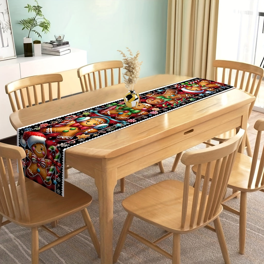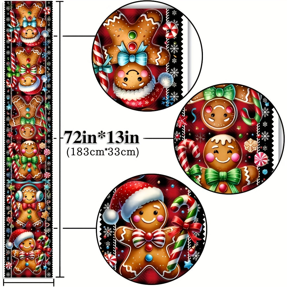 Christmas Cheer Table Runner - Gingerbread For Man & Festive Hat Design, Polyester, Perfect for Holiday Dining & Kitchen Decor