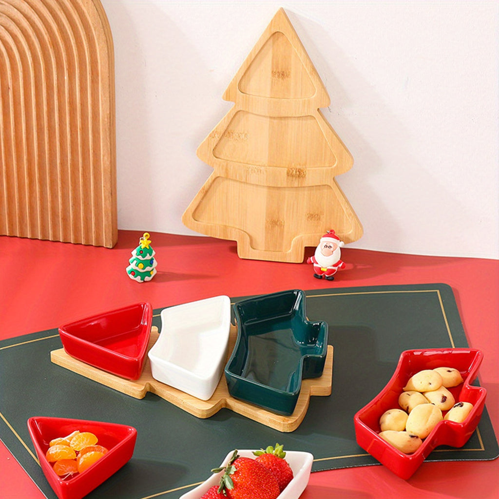 Removable Christmas tree shaped ceramic platter set with base for snacks, treats, appetizers, candy, desserts, festive tableware decoration platter for Christmas parties, festive wedding decorations, restaurant kitchen essentials