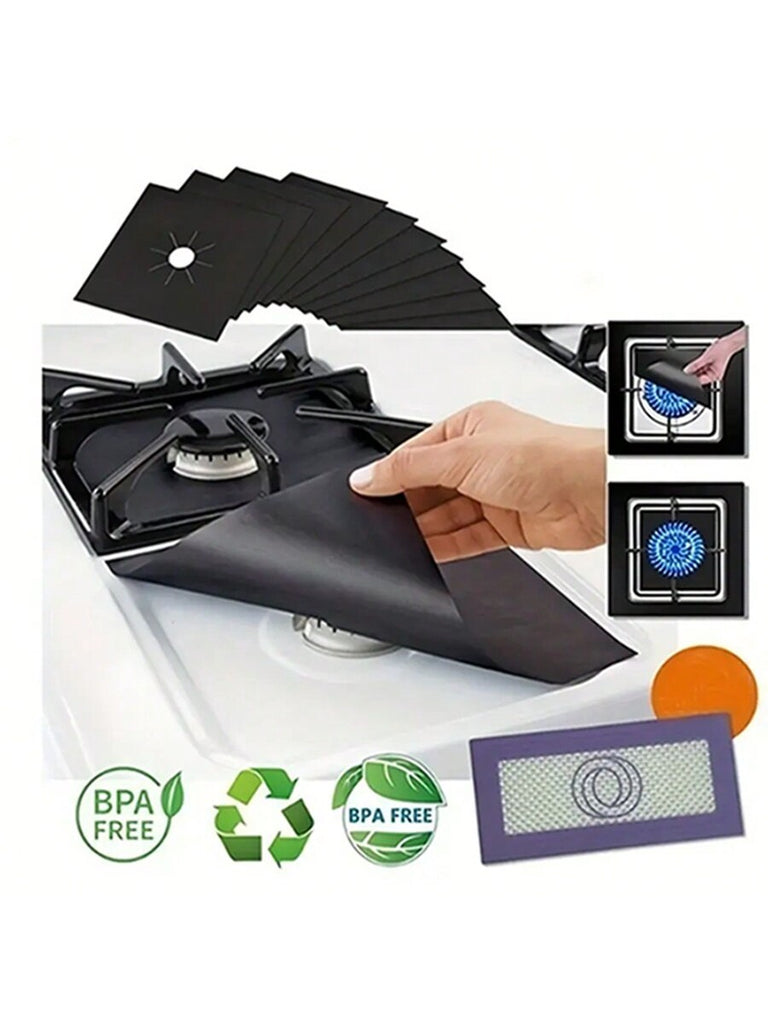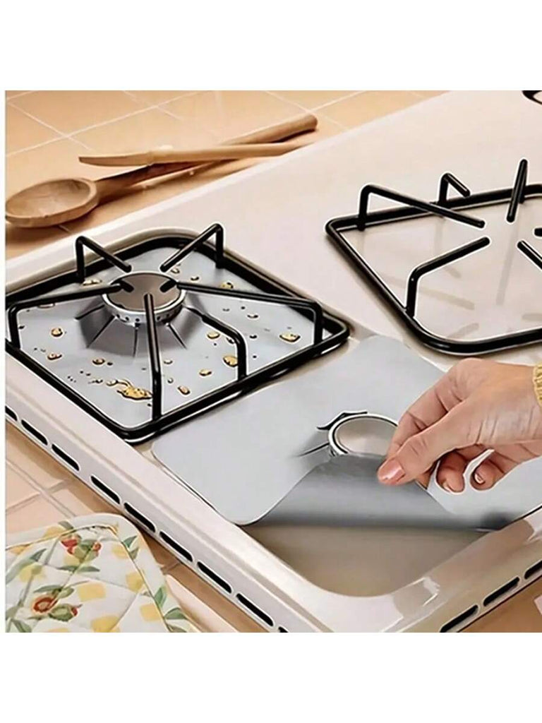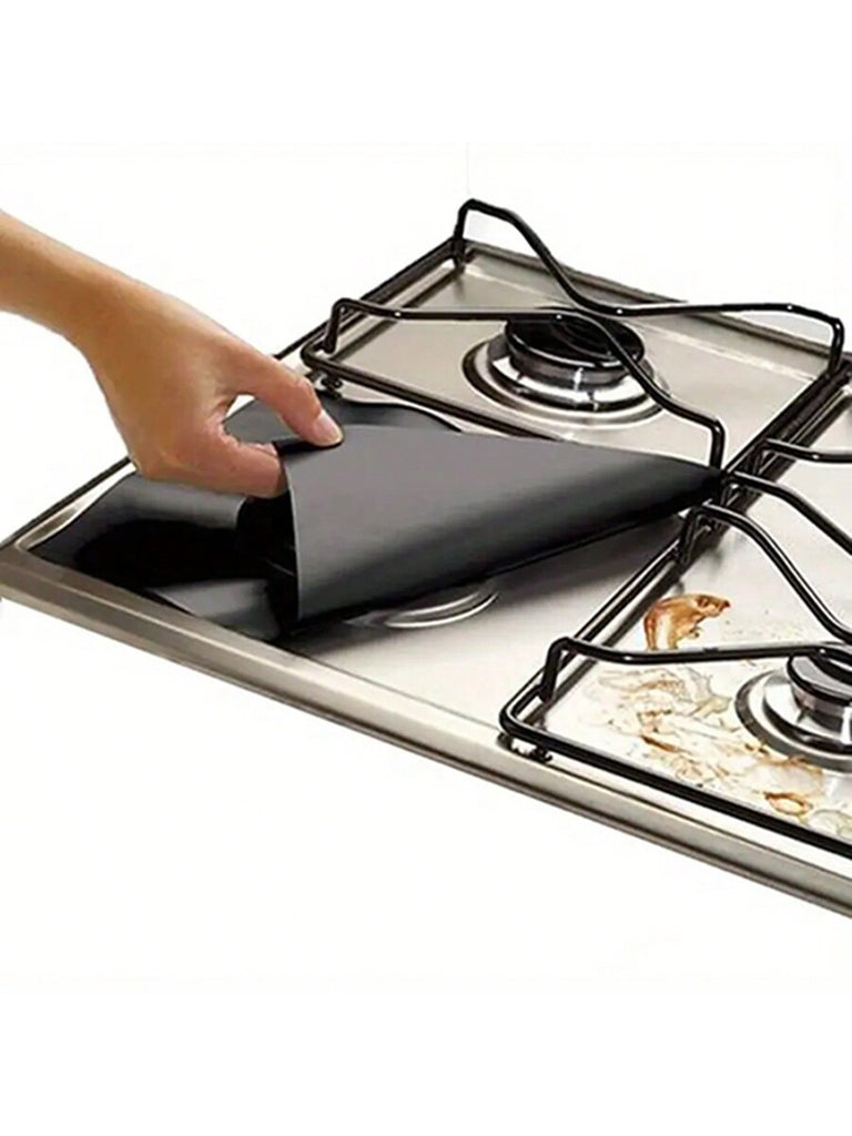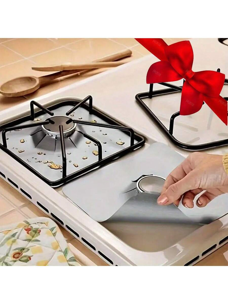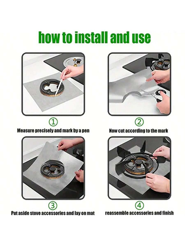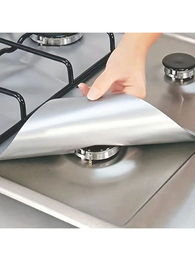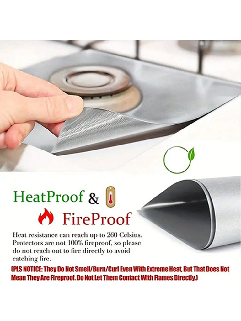Stove Oil-Proof Mat, Gas Stove Mat Oil-Proof Mat, Reuse High Temperature Resistant Convenient To Wash, Cuttable, Stove Protection Mat, Gas Stove Cleaning Liner, Silvery/Black,Father's Day, Mother's Day, Christmas, Thanksgiving, Halloween, Valentine's Day