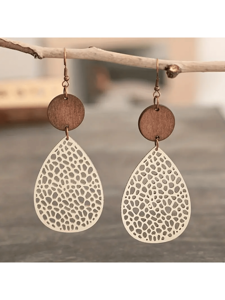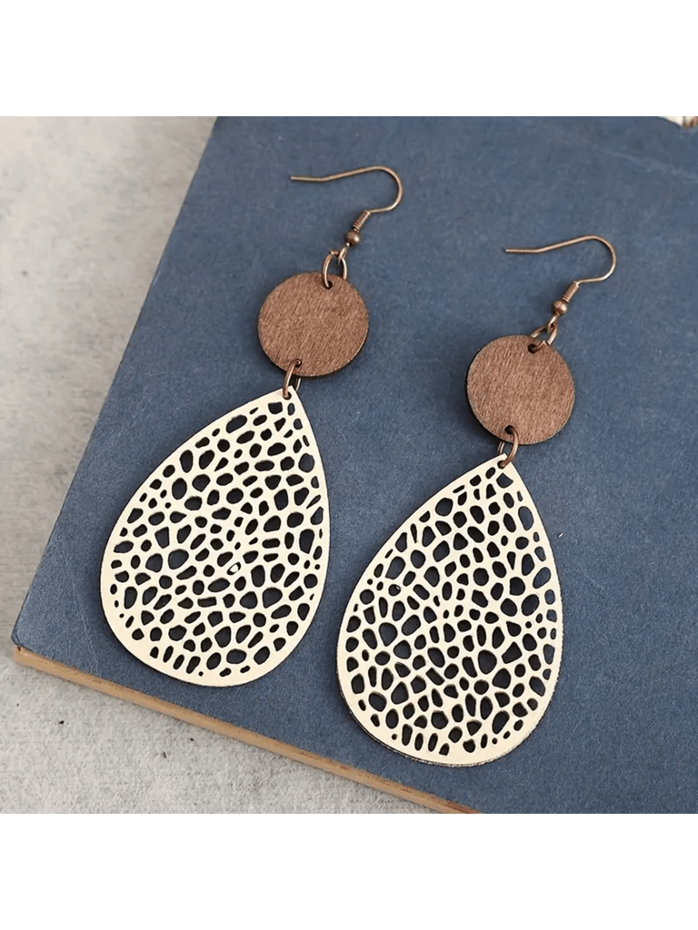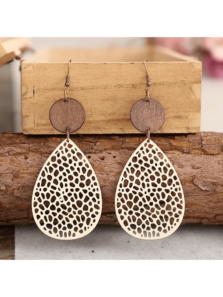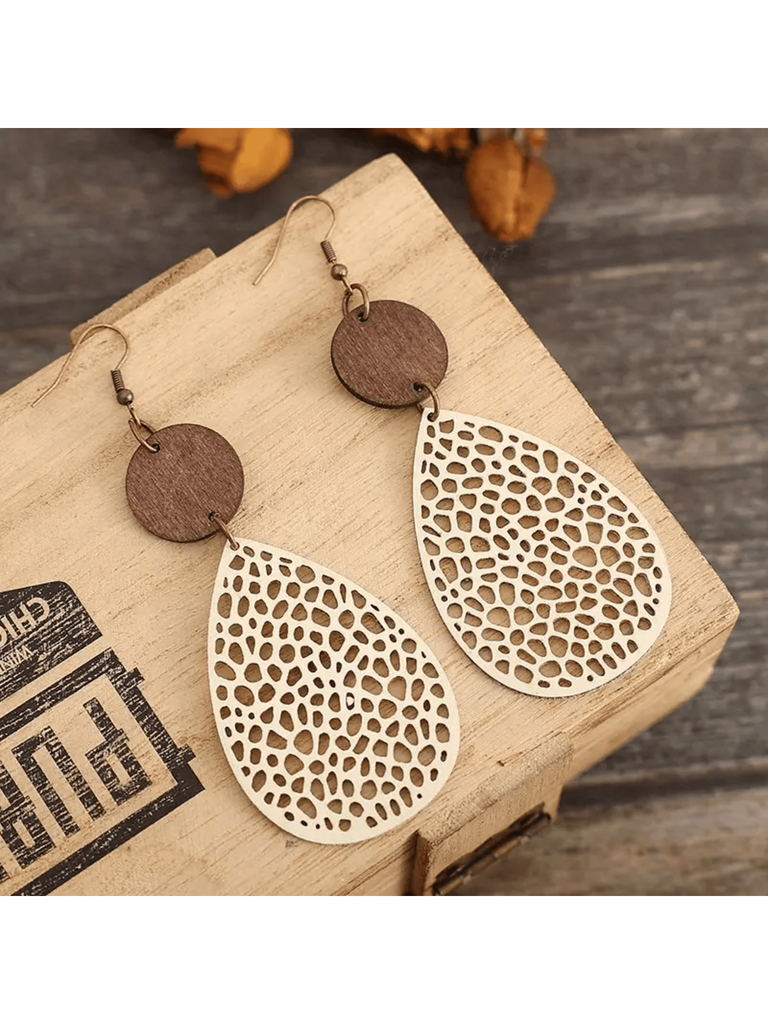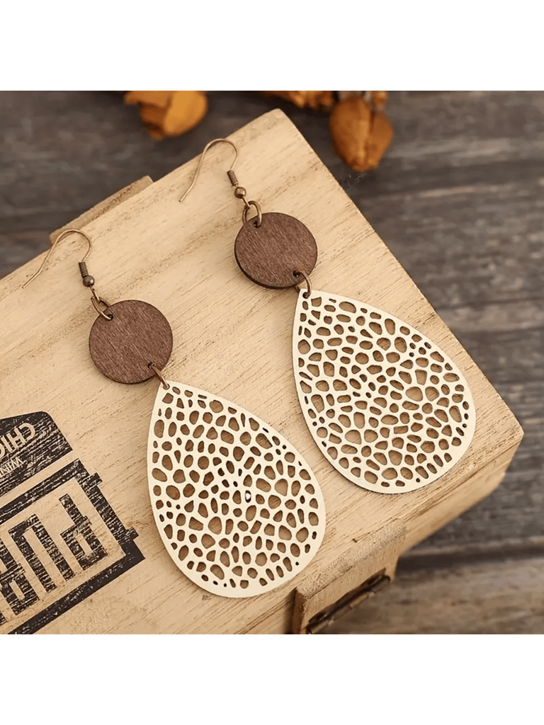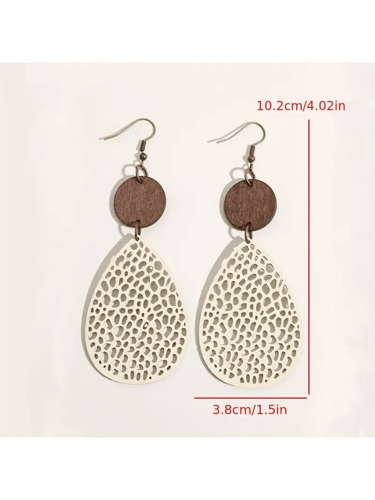 Fashionable Teardrop Hollow Wooden Boho Earrings