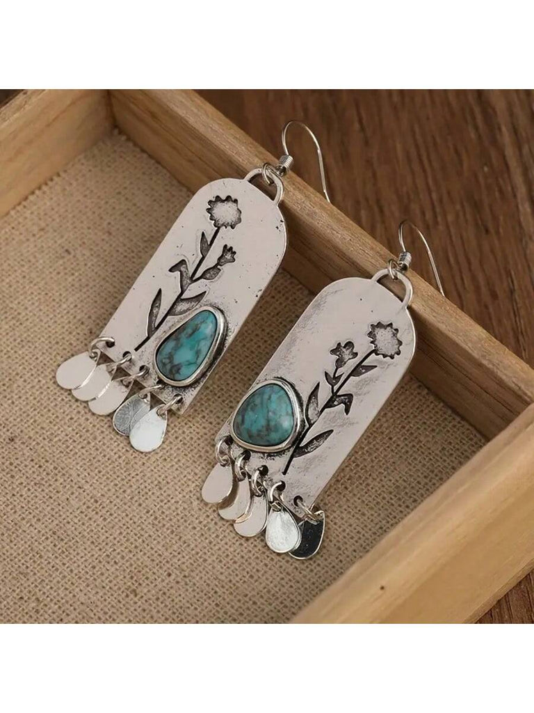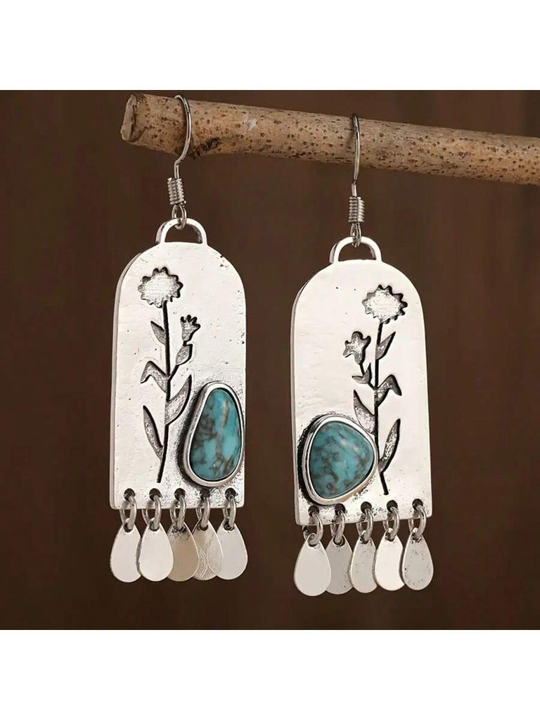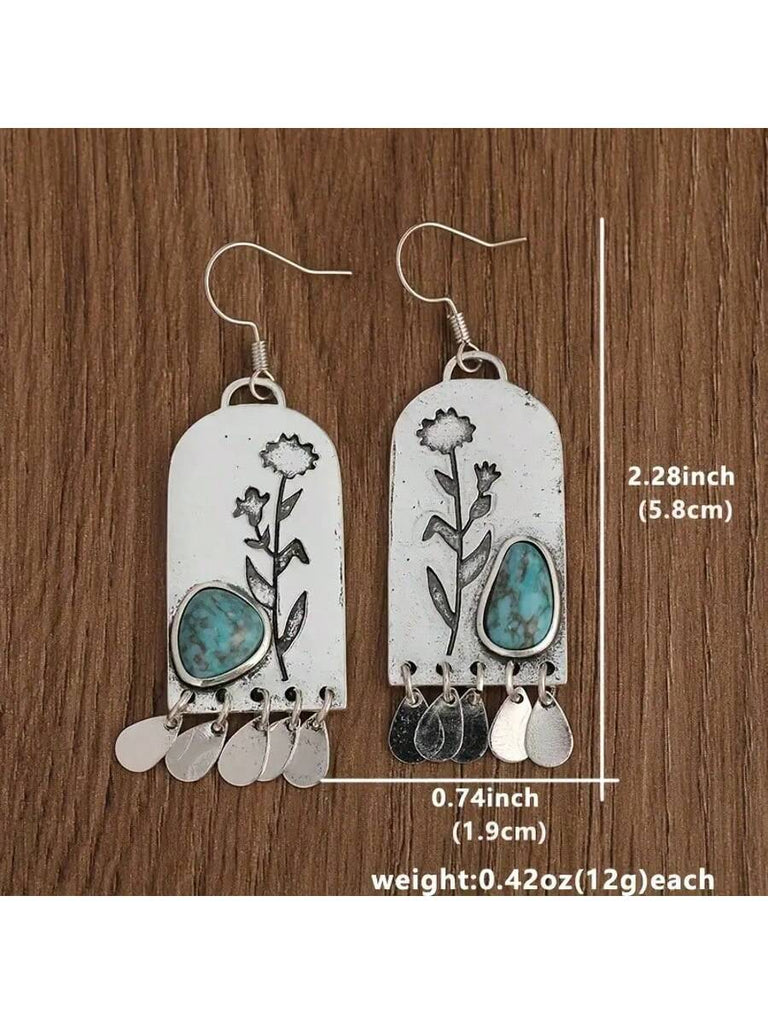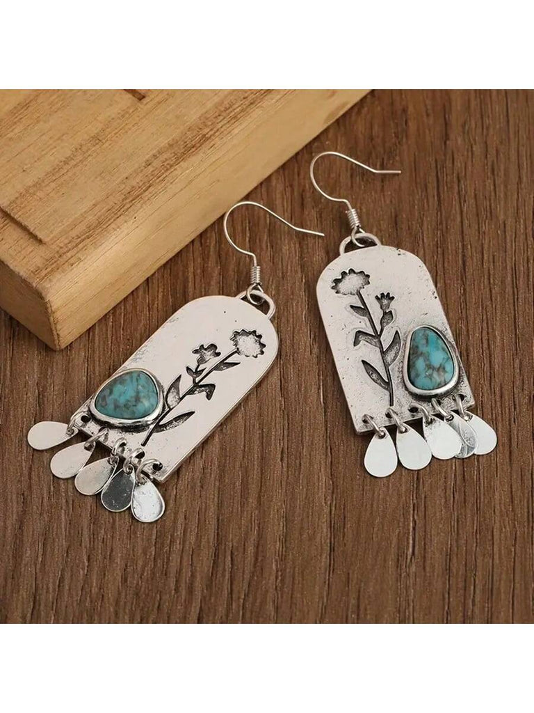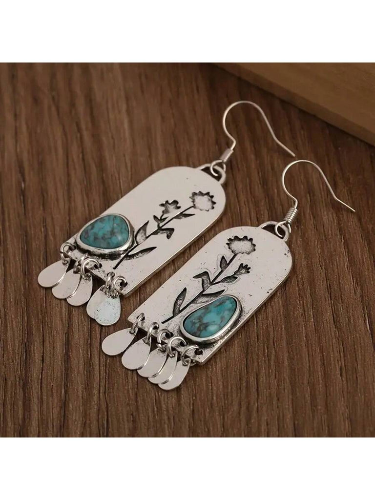 1 Pair Retro Turquoise Women Earrings, Minimalist & Fashionable
