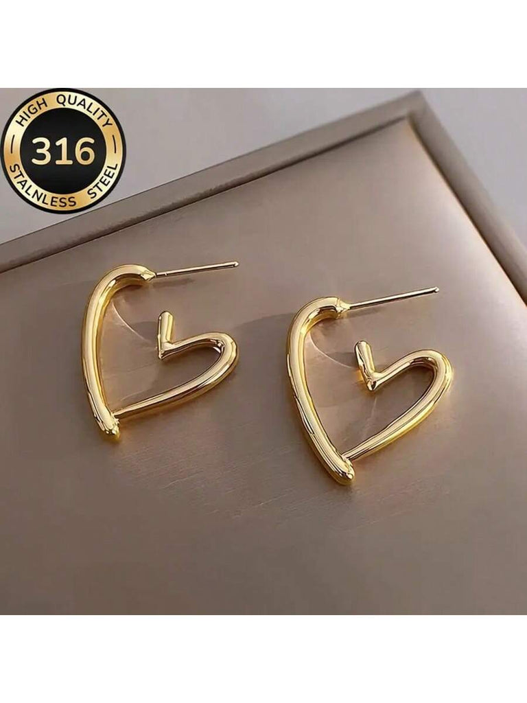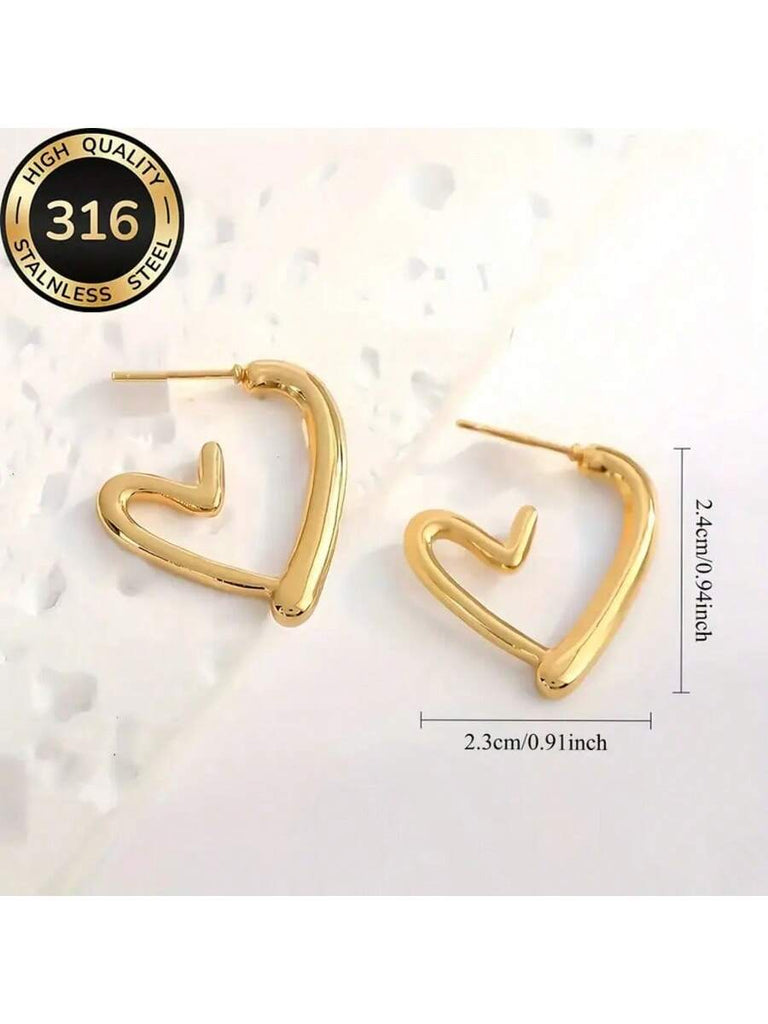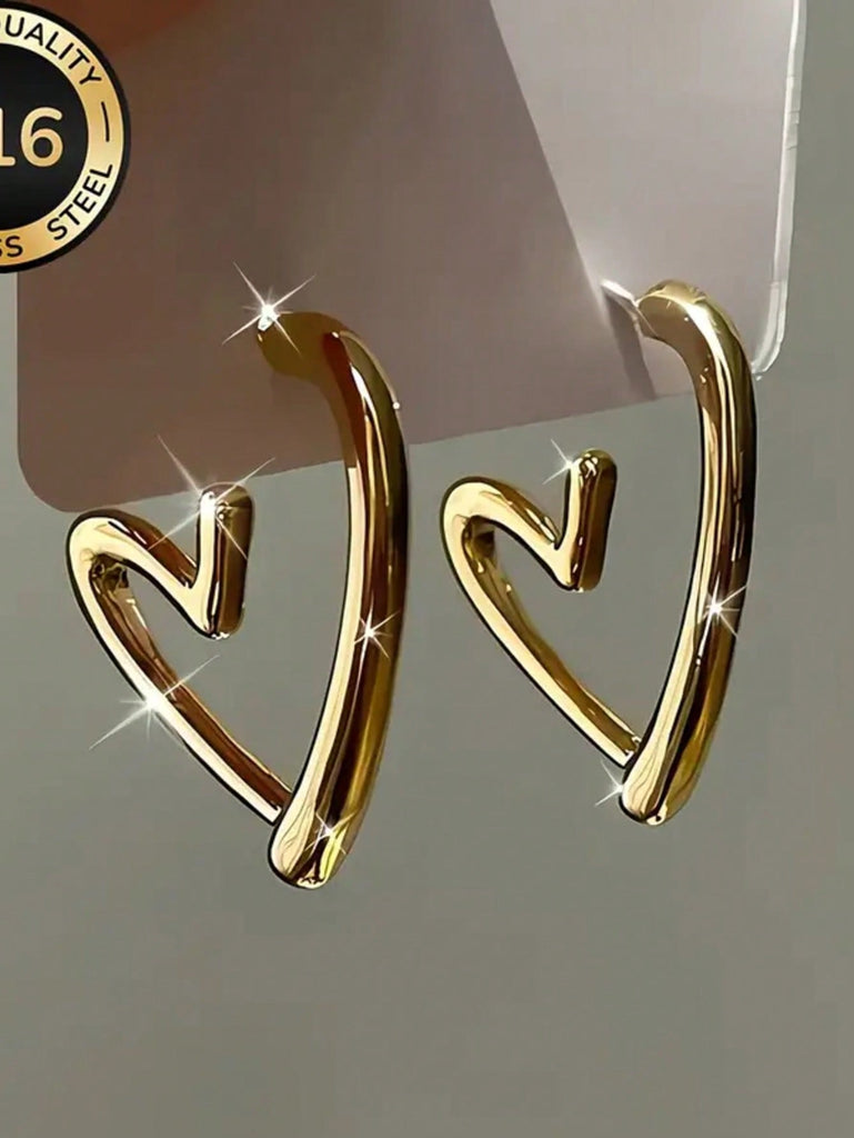 Gold Plated Stainless Steel Heart Shaped Earrings