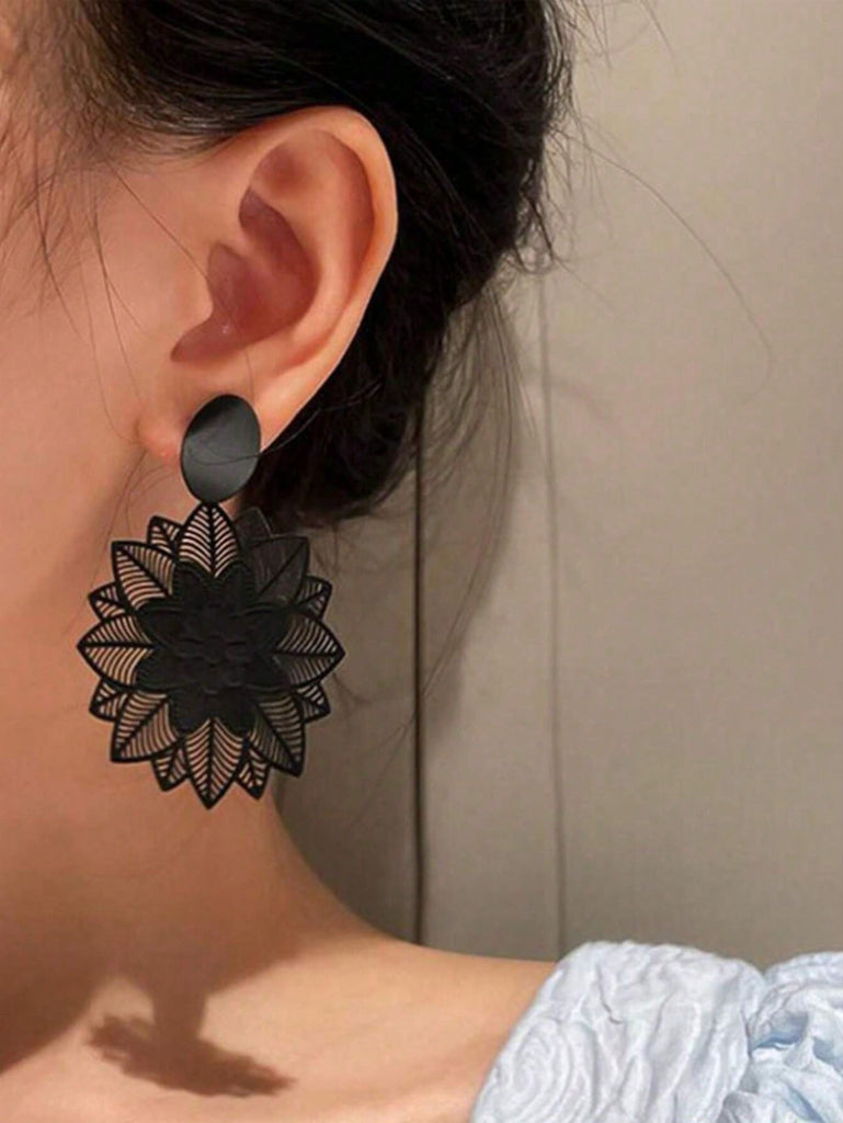 Fashionable Ultra-Thin Computer-Etched Floral Earrings