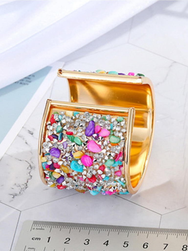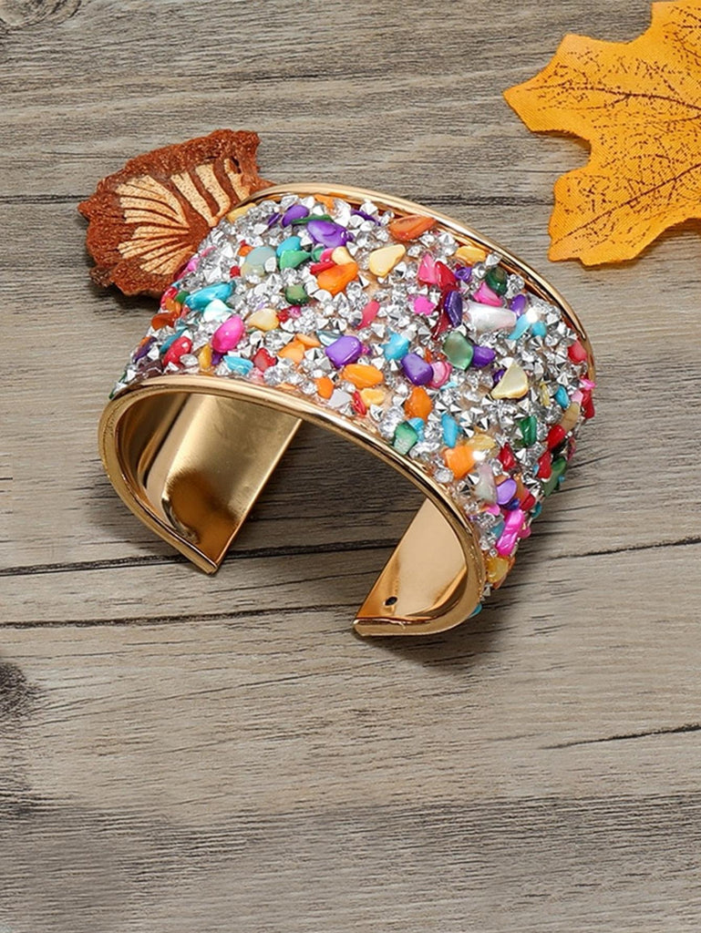 1pc Metal Bangle Bracelet With Embedded Stones And Rhinestones