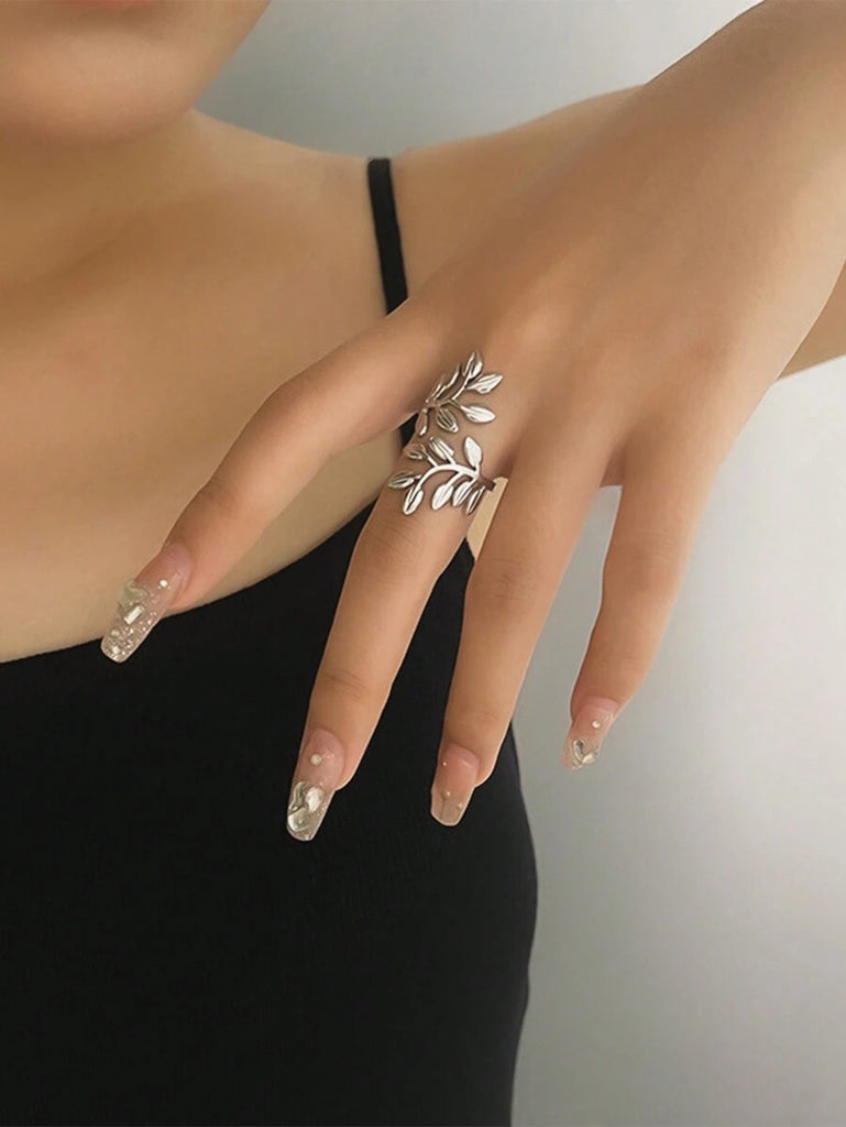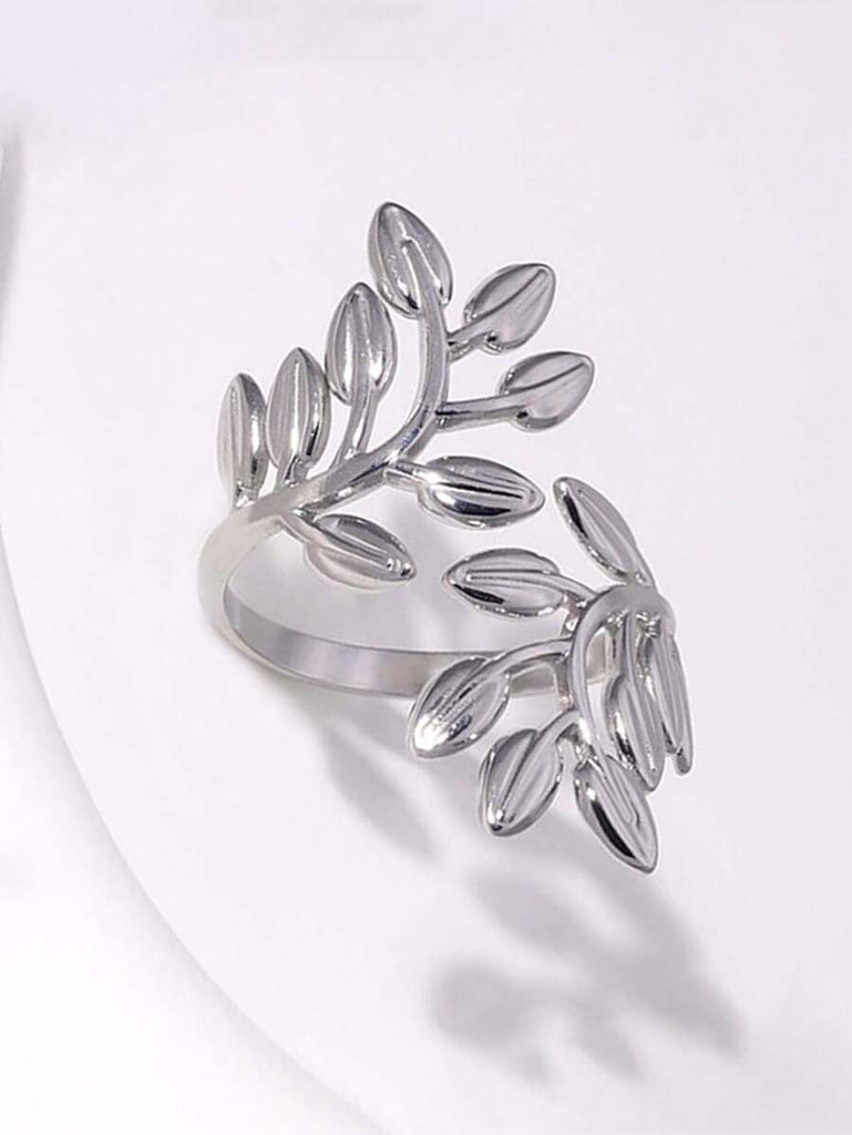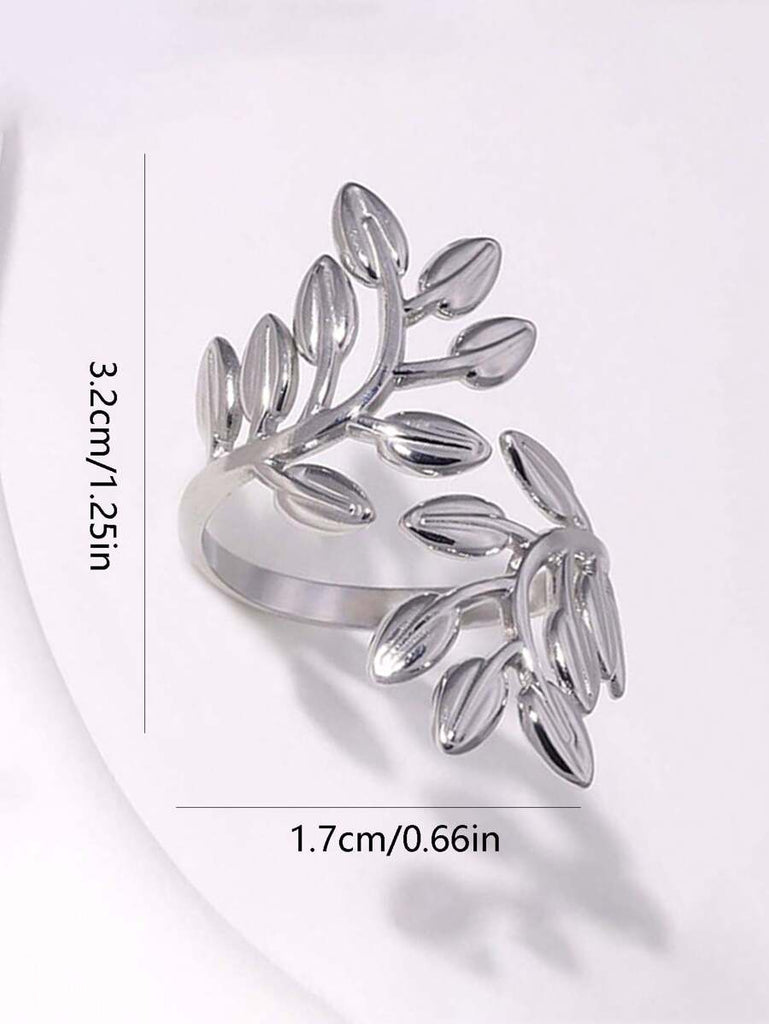 1pc Stainless Steel Leaf Wrapped Open Ring
